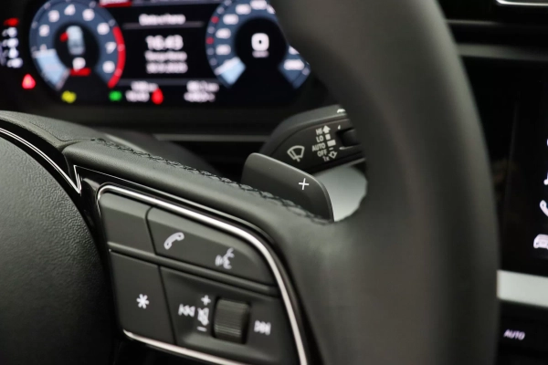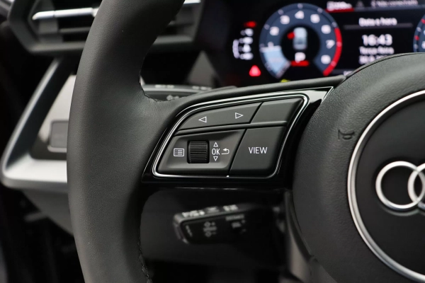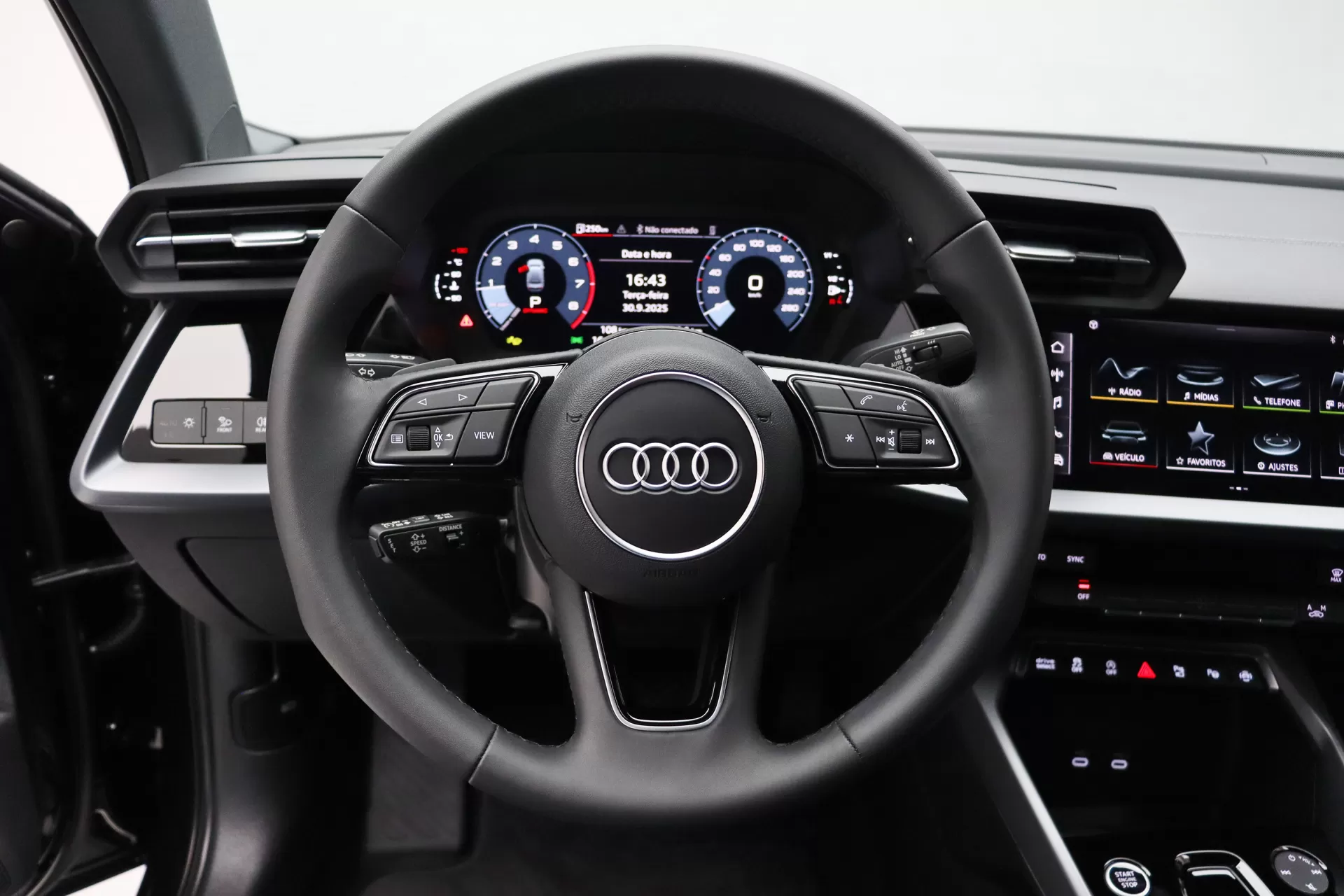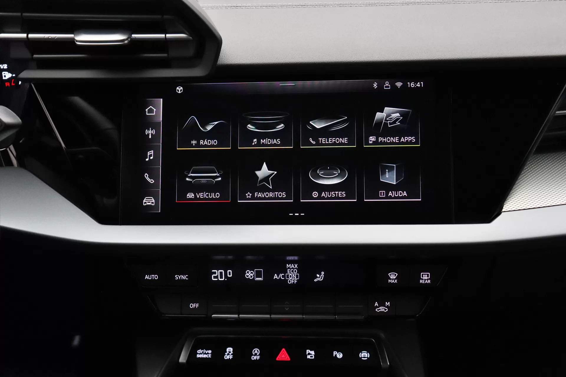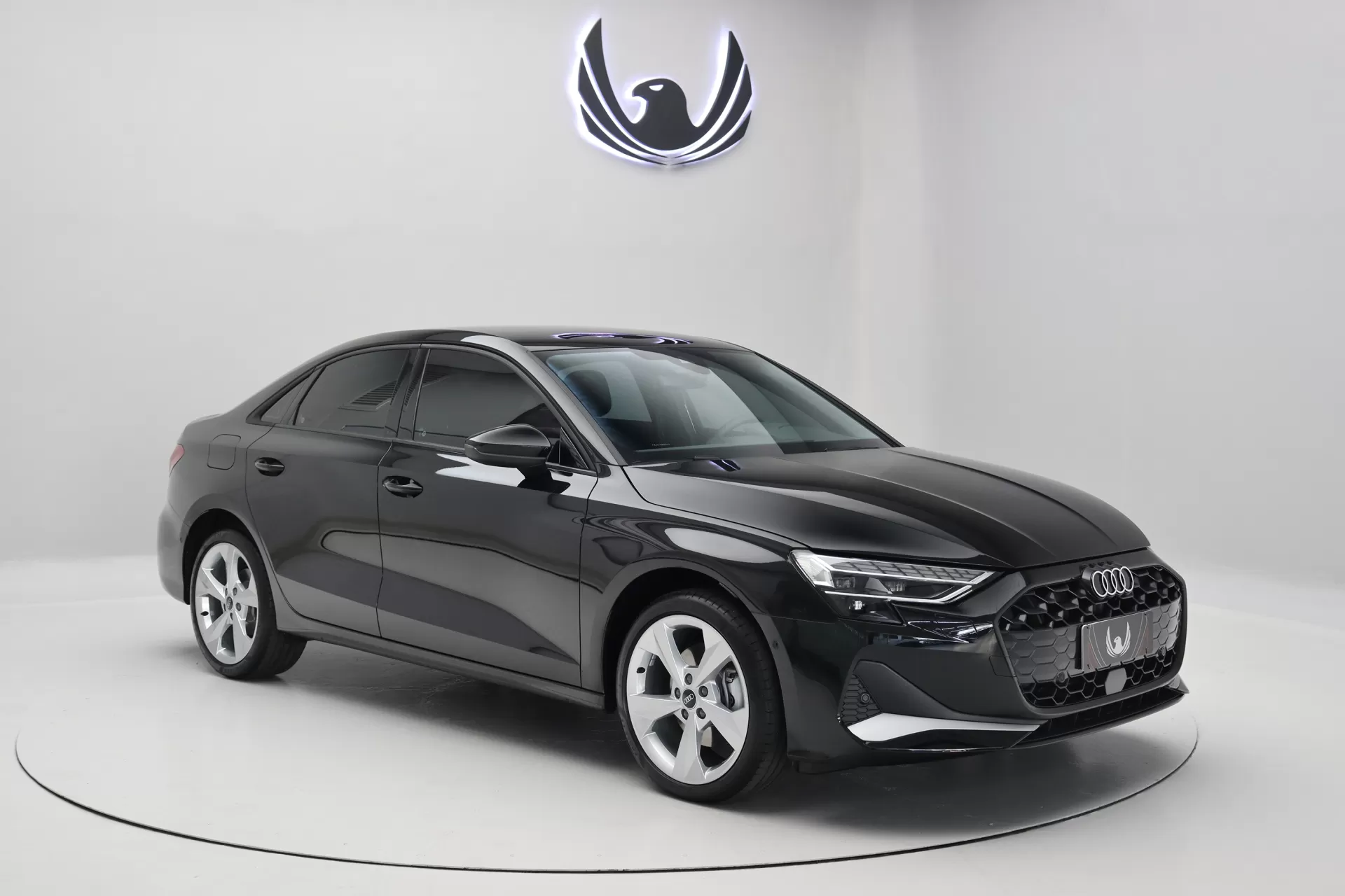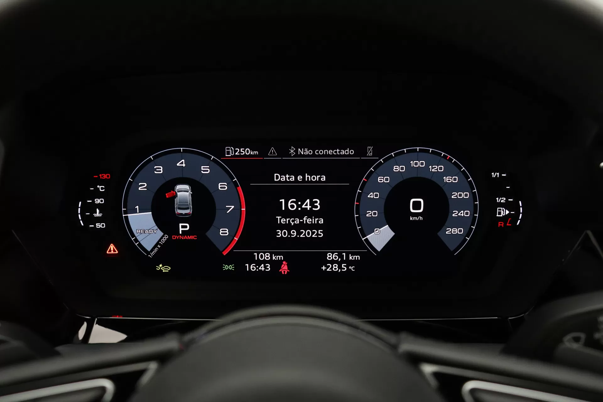 Apenas 108km, película antivandalismo, configurado na cor Preto com interior em Couro Preto, volante multifuncional com paddle shifts, Android Auto e Apple CarPlay, Audi Drive Select, advertência de velocidade, Audi Pre Sense, aviso de troca de faixa, assistente de direção adaptativo, aviso de cansaço, ar condicionado digital, partida por botão, freio de mão eletrônico, rodas aro 18’ em Prata, em exposição no nosso showroom.