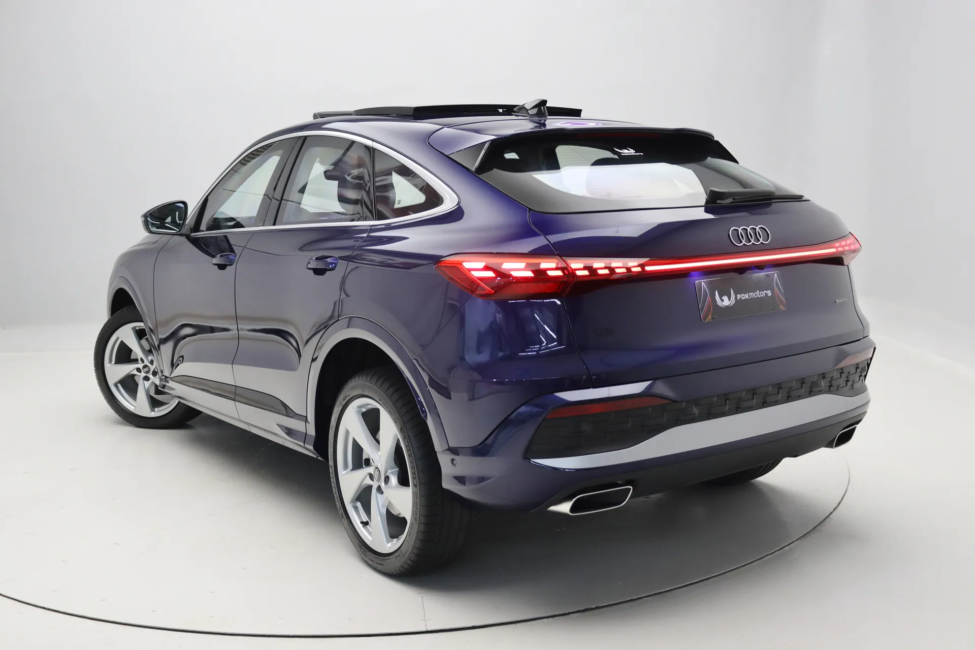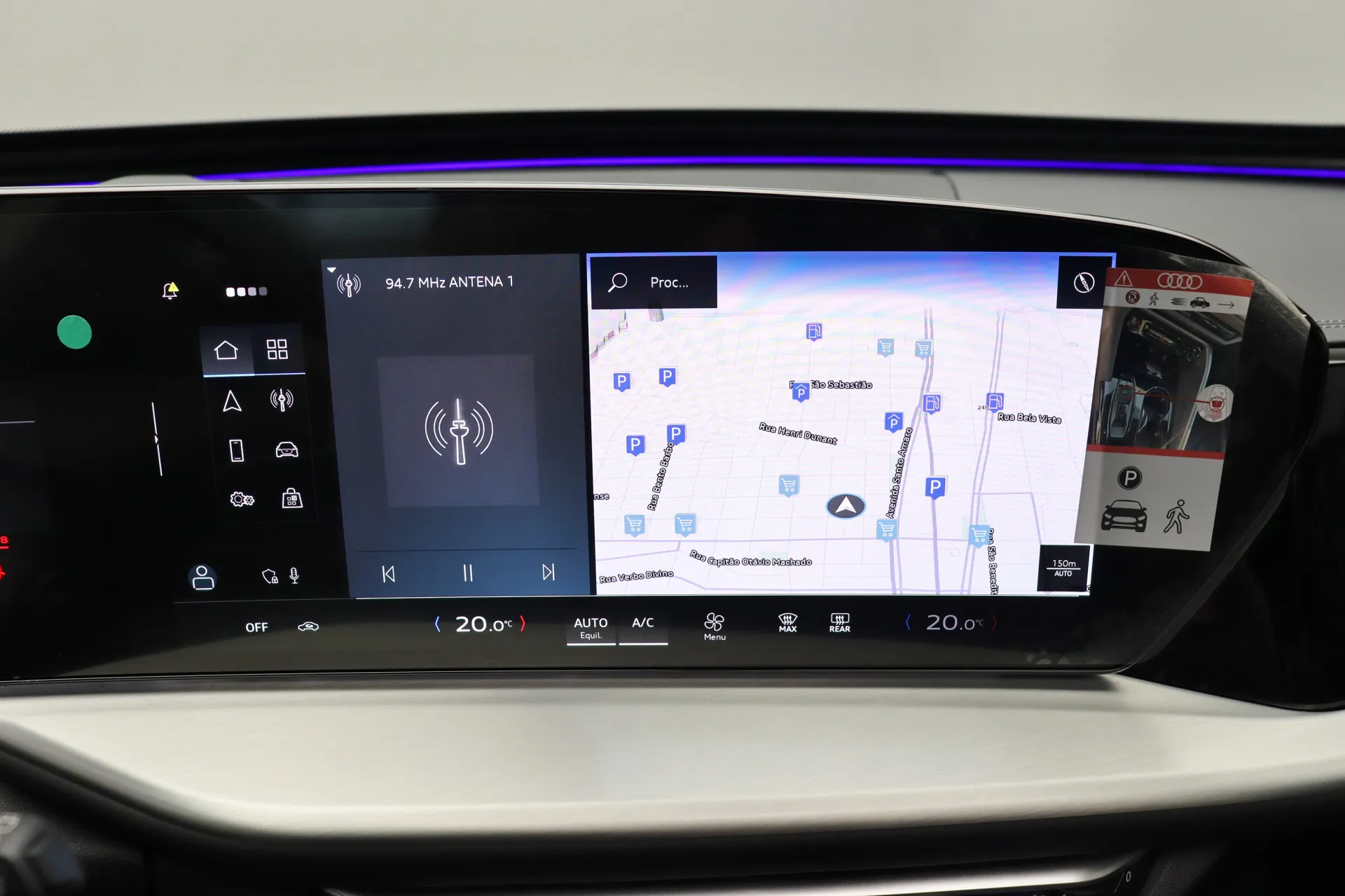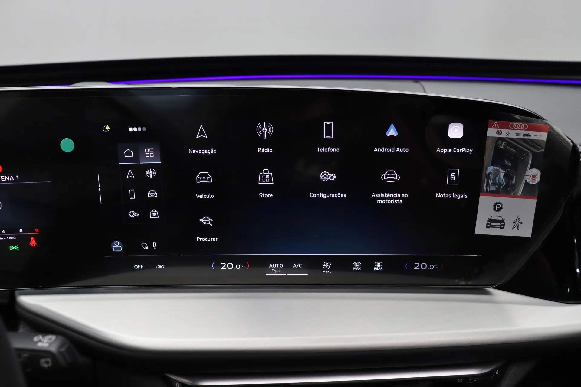 Blindado zero km à pronta entrega, blindagem nível III-A Stark com Vidros PG Super Slim, teto solar panorâmico transparente e funcional, configurado na cor Azul Navarra Metálico com interior em Couro Cinza, volante multifuncional com paddle shifts, bancos dianteiros de ajuste elétrico, Android Auto e Apple CarPlay, aviso de troca de faixa, Advertência de Distância, alerta de fadiga, alerta de colisão frontal, assistente de eficiência, iluminação ambiente, Audi Drive Select, rodas Aro 20’ em Prata, em exposição no nosso showroom.
