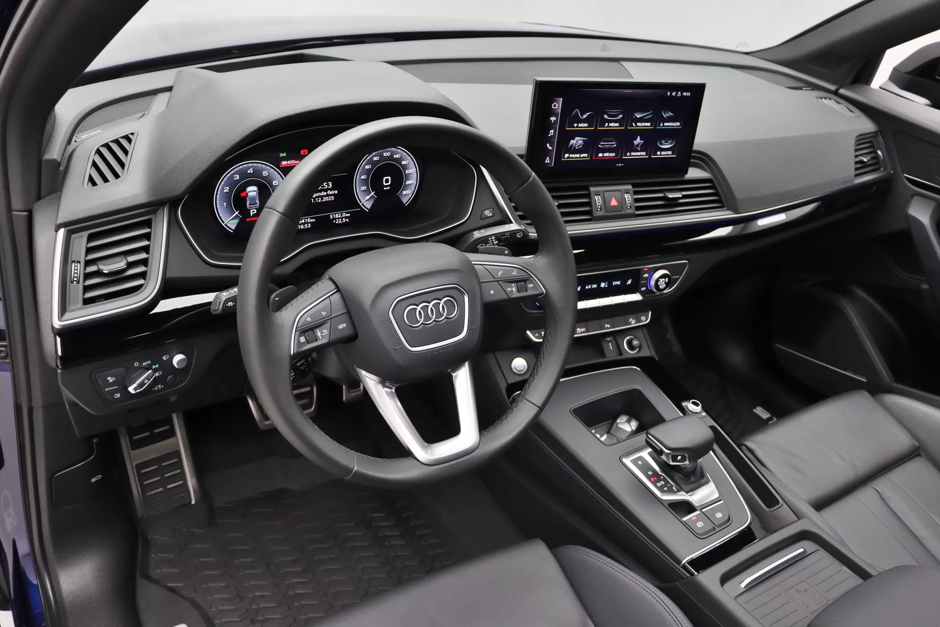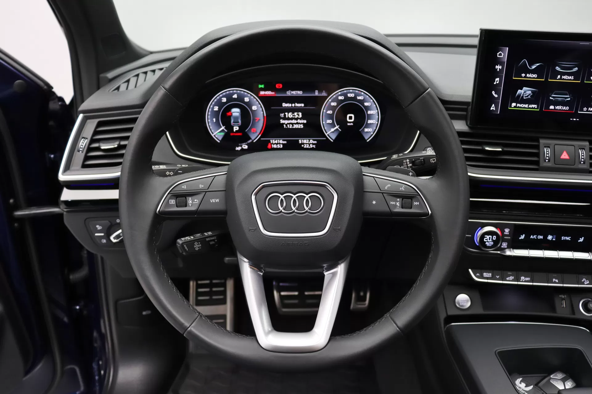 Full PPF, última revisão feito na Audi em Outubro de 2025, garantia até 2027, configurado na cor Azul com interior em Couro Preto, volante multifuncional com paddle shifts, bancos de ajuste elétrico com memória, teto solar panorâmico, carregador de smartphone por indução, Audi Drive Select, EV Mode, head-up display, tapetes de borracha, ar condicionado digital de 3 zonas, Android Auto e Apple CarPlay, sistema de som Bang & Olufsen, projeção de logo Audi nas portas, camera 360º, controle de cruzeiro adaptativo, advertência de distância, Audi Active Lane Assist, Audi Pre Sense, aviso de troca de faixa, detecção de fadiga, rodas aro 19’ diamantadas, em exposição no nosso showroom.