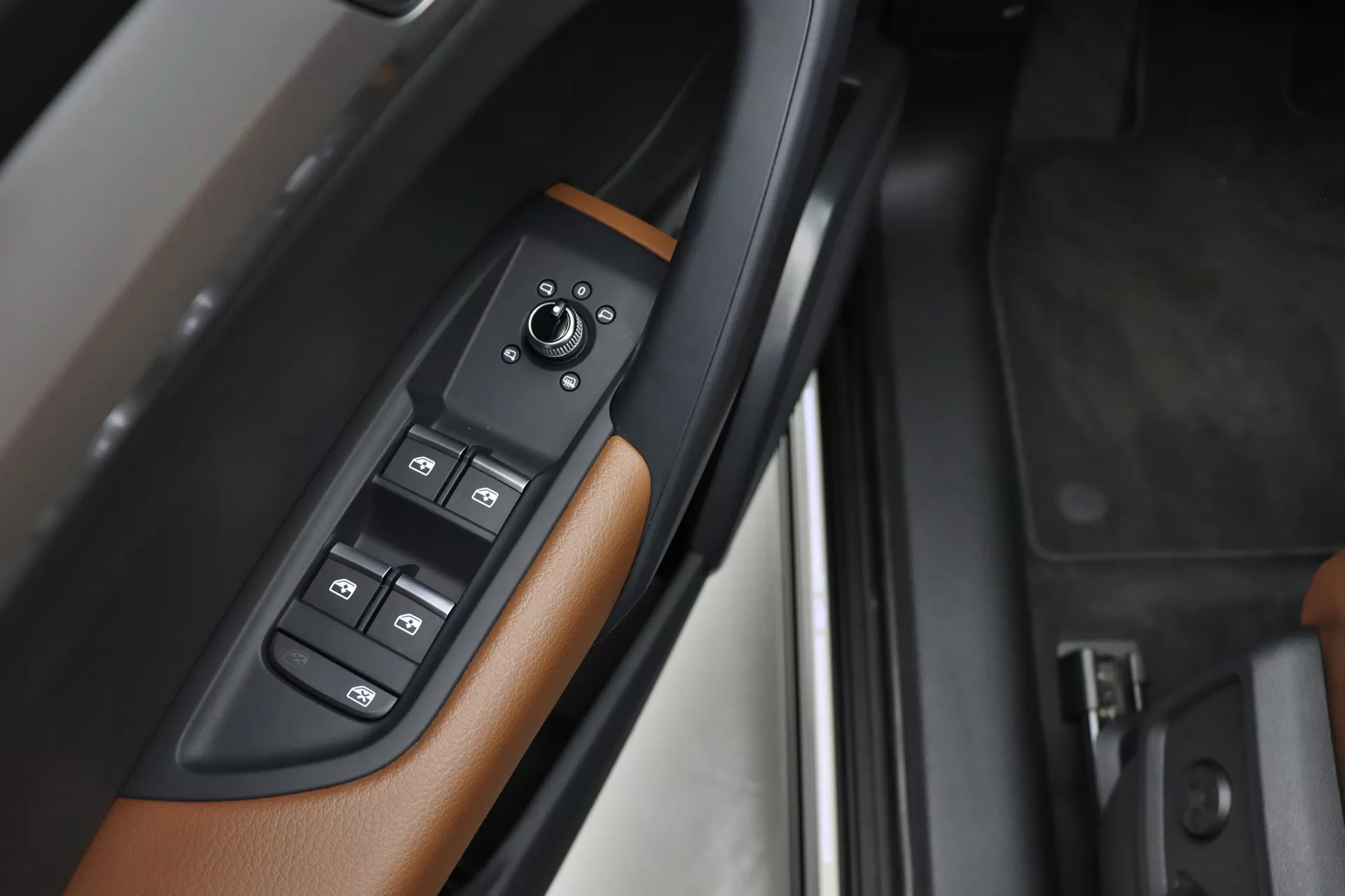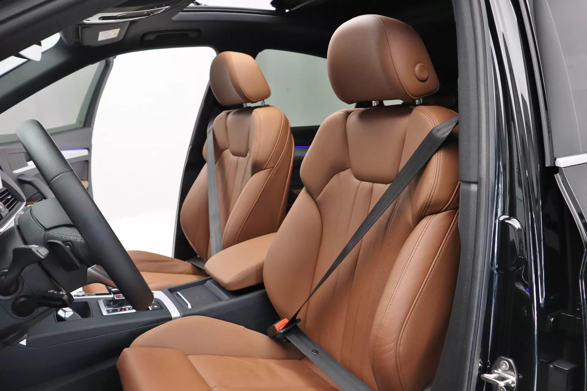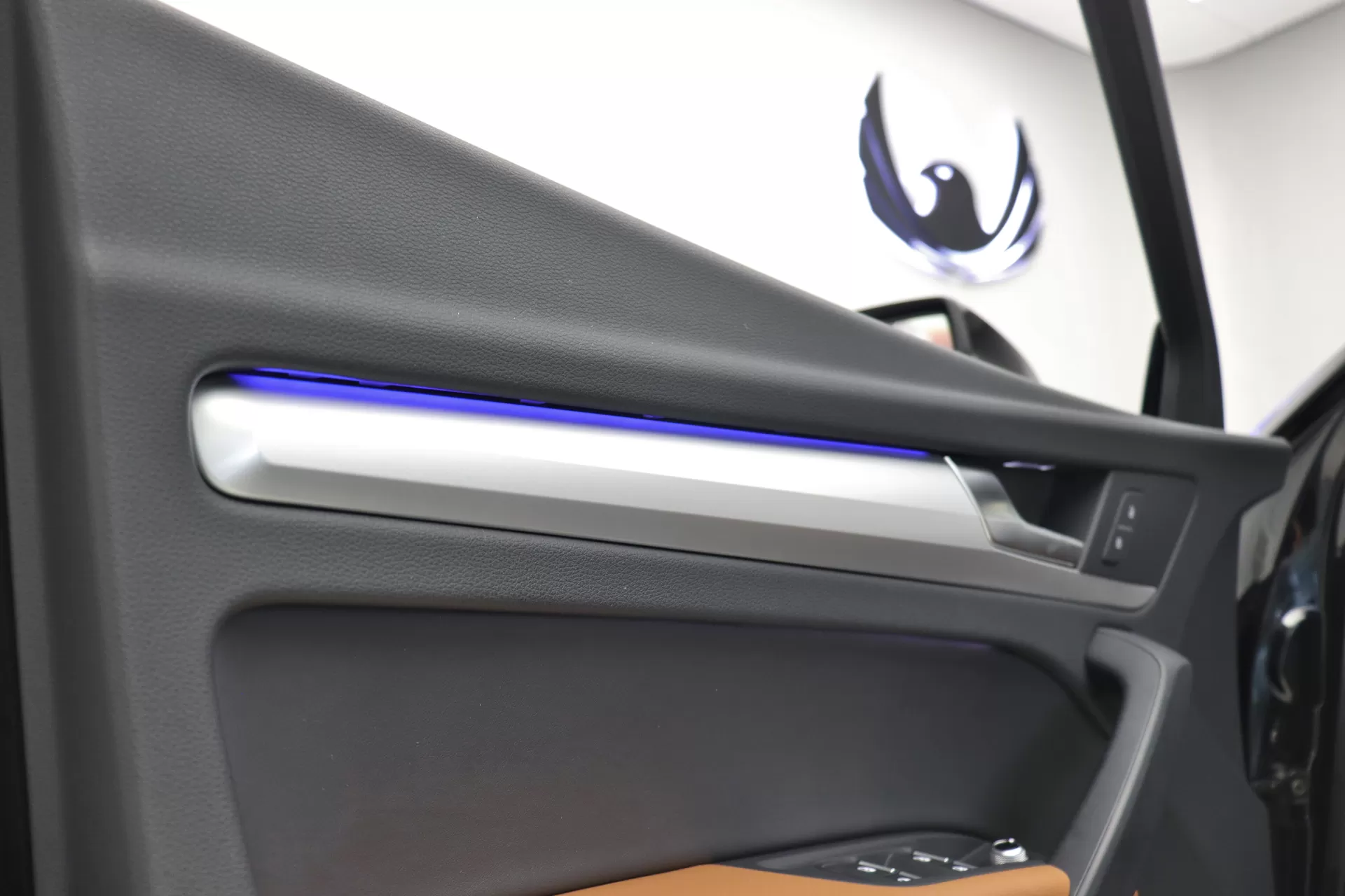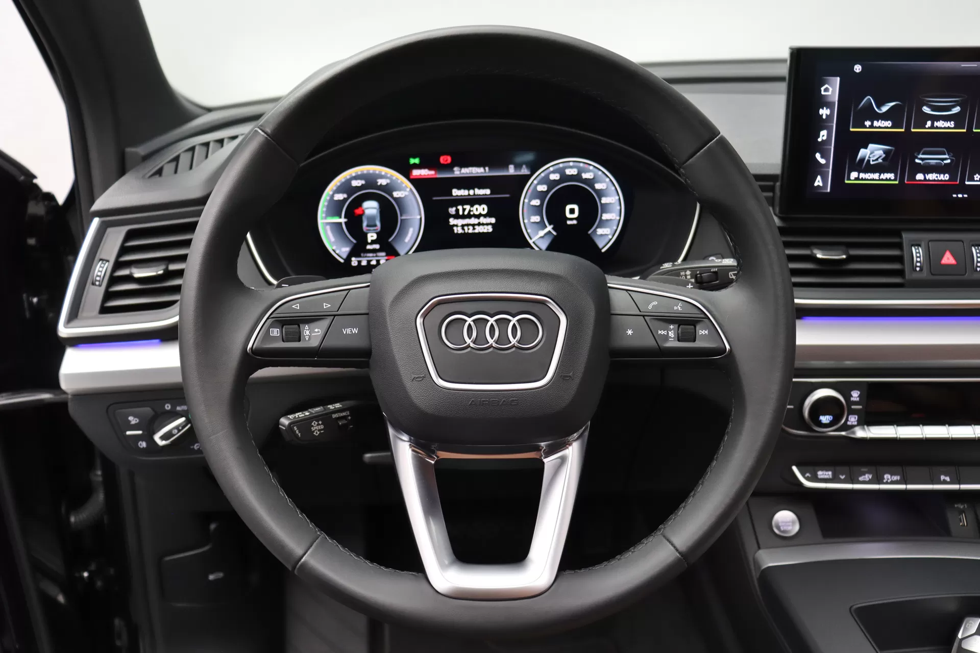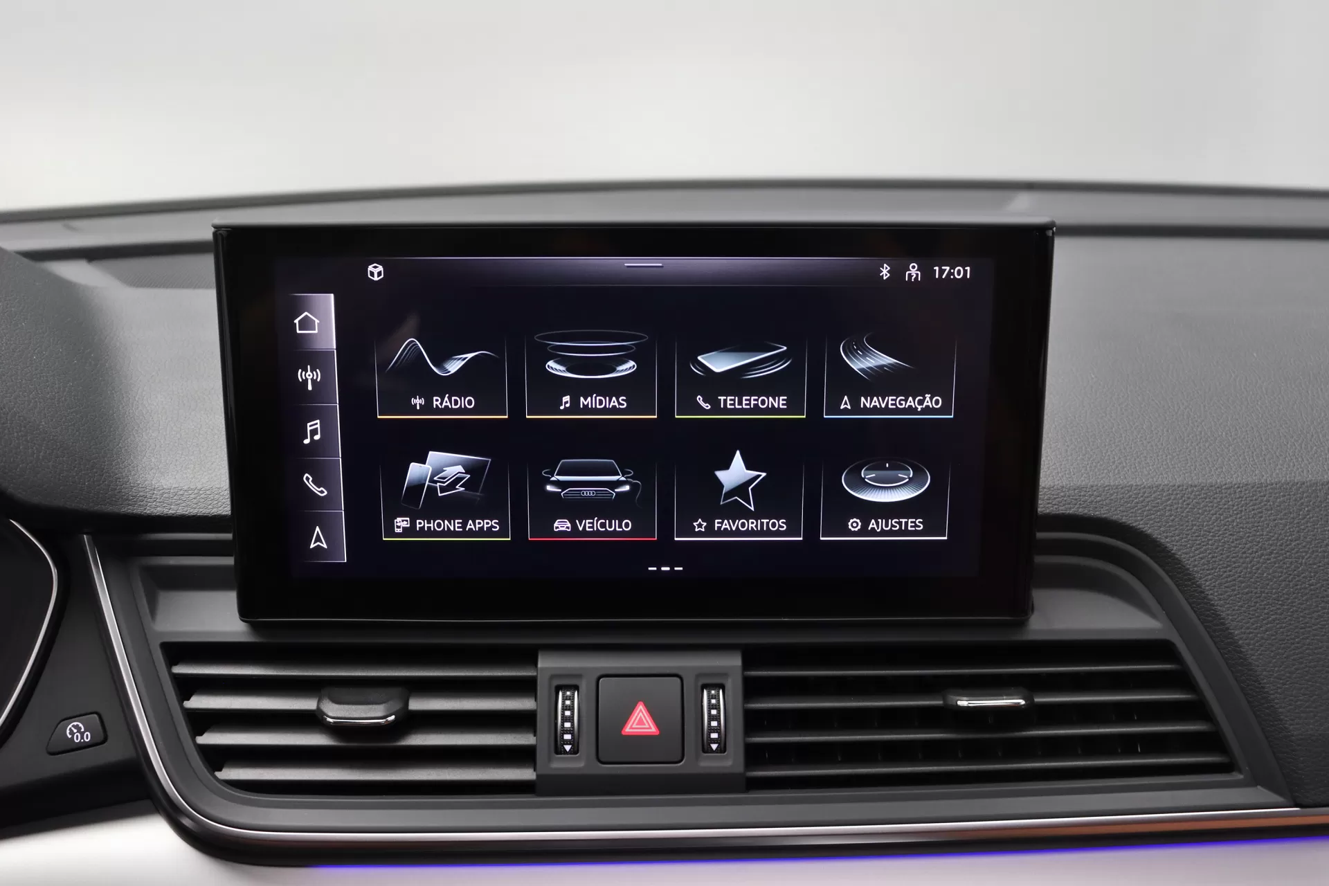 Proteção Cerâmica de Pintura, configurado na cor Preto com interior em Couro Marrom, teto solar panorâmico, volante multifuncional com paddle shifts, bancos dianteiros de ajuste elétrico, Android Auto e Apple CarPlay, carregador de smartphone por indução, Audi Drive Select, advertência de velocidade, controle de cruzeiro adaptativo, advertência de distância, Audi Active Lane Assist, Audi Pre Sense, detecção de fadiga, iluminação ambiente, EV Mode, ar condicionado digital de 3 zonas, rodas Audi Sport Aro 19’ diamantadas, em exposição no nosso showroom.