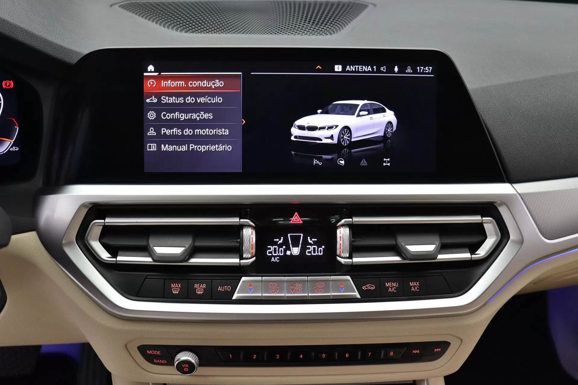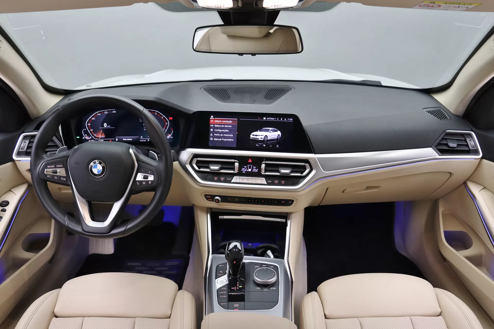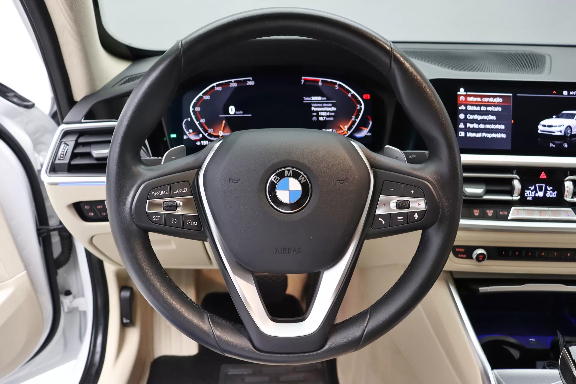 Blindagem nível III-A NewTech com vidros Infinity, última revisão feito em Agosto de 2025, configurado na cor Branco Alpino com interior em Couro Sensatec Bege Canberra, cintos em Bege, volante multifuncional com paddle shifts, bancos de ajuste elétrico com memória, Android Auto e Apple CarPlay, Park Distance Control com câmera de ré, iluminação ambiente, Auto Hold, modos Sport, Comfort e Eco Pro, chamada de emergência inteligente, Serviços ConnectedDrive, controle de cruzeiro, rodas aro 18’ diamantadas, em exposição no nosso showroom.