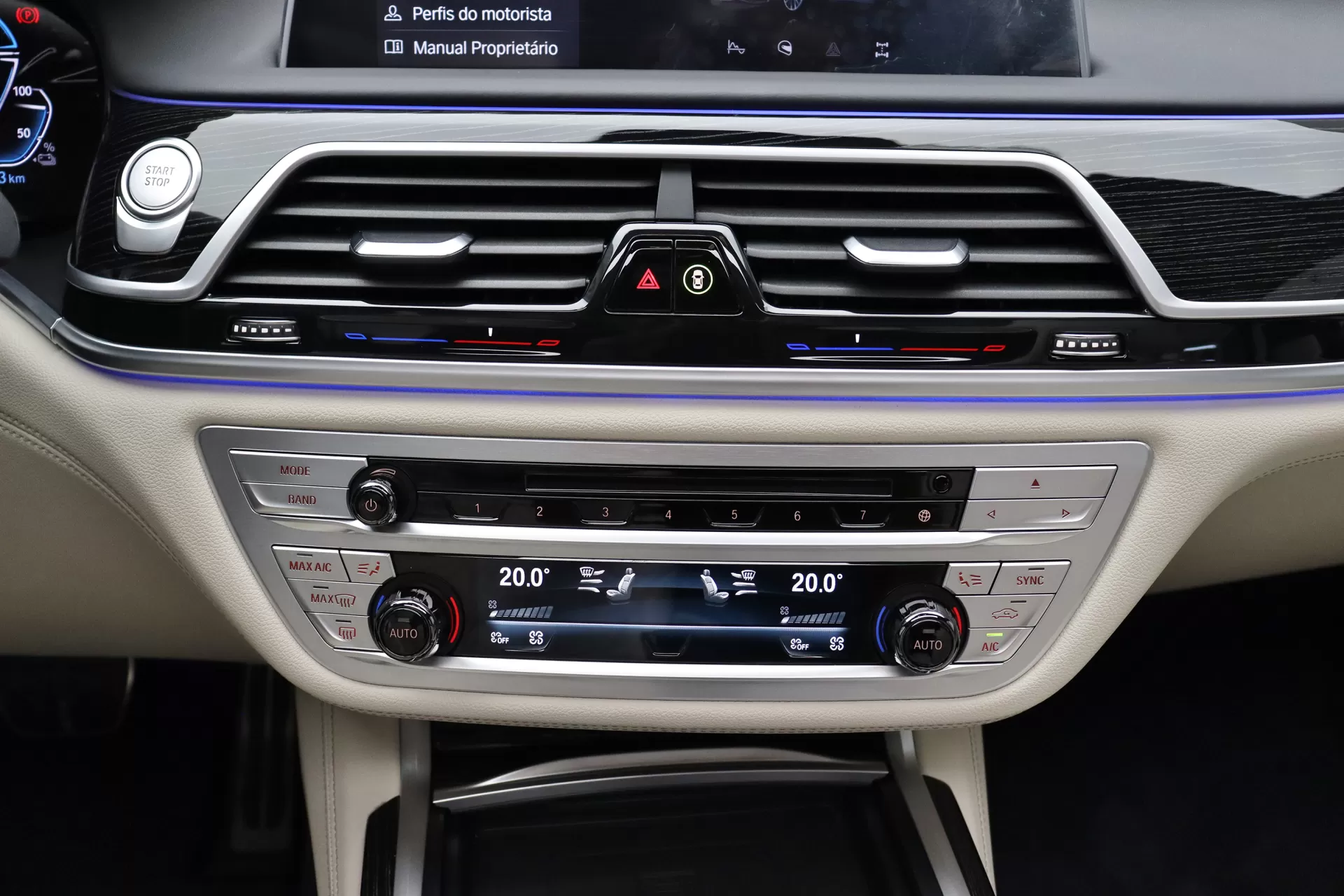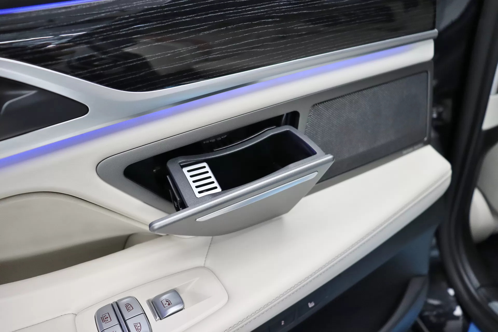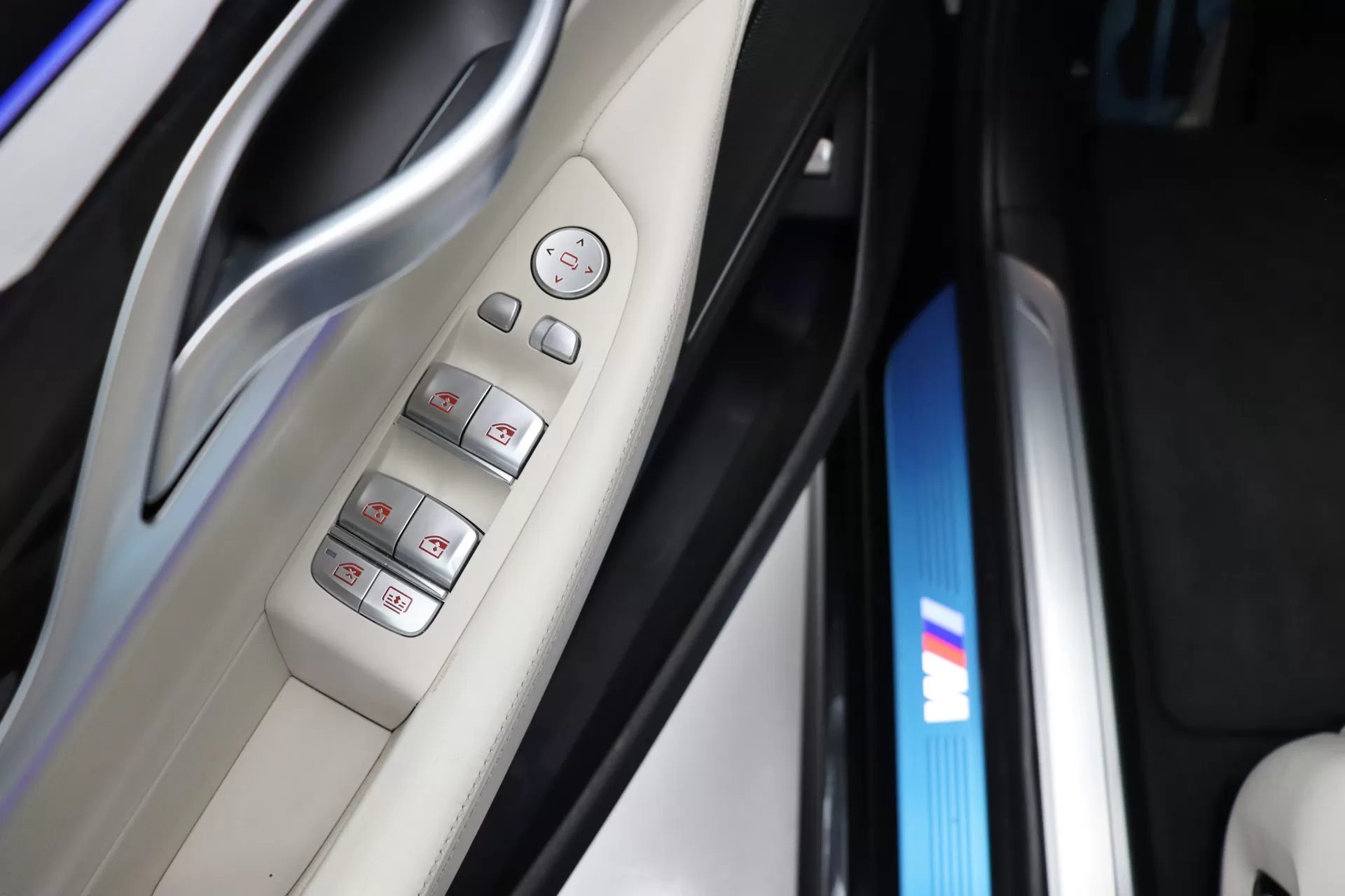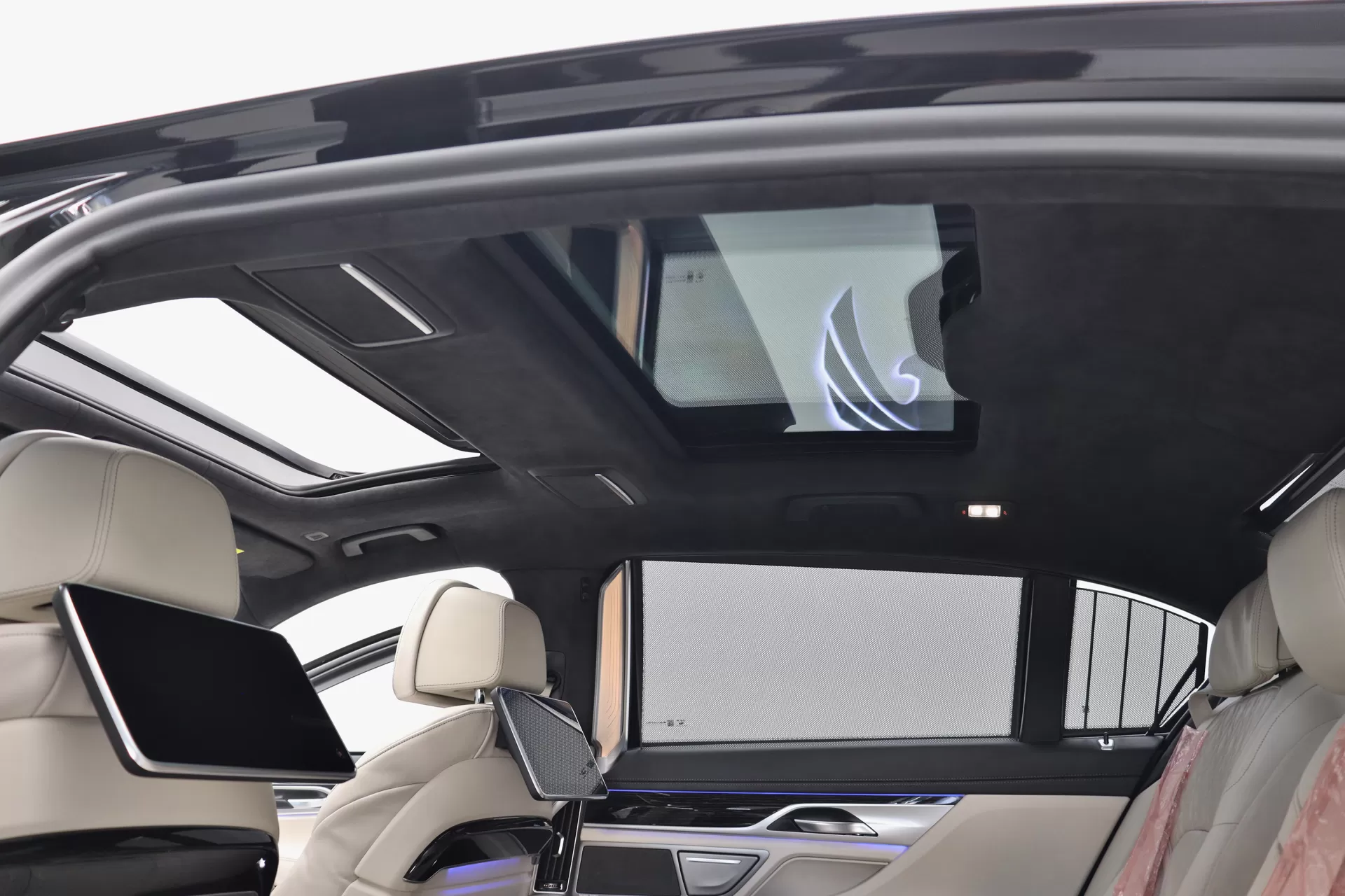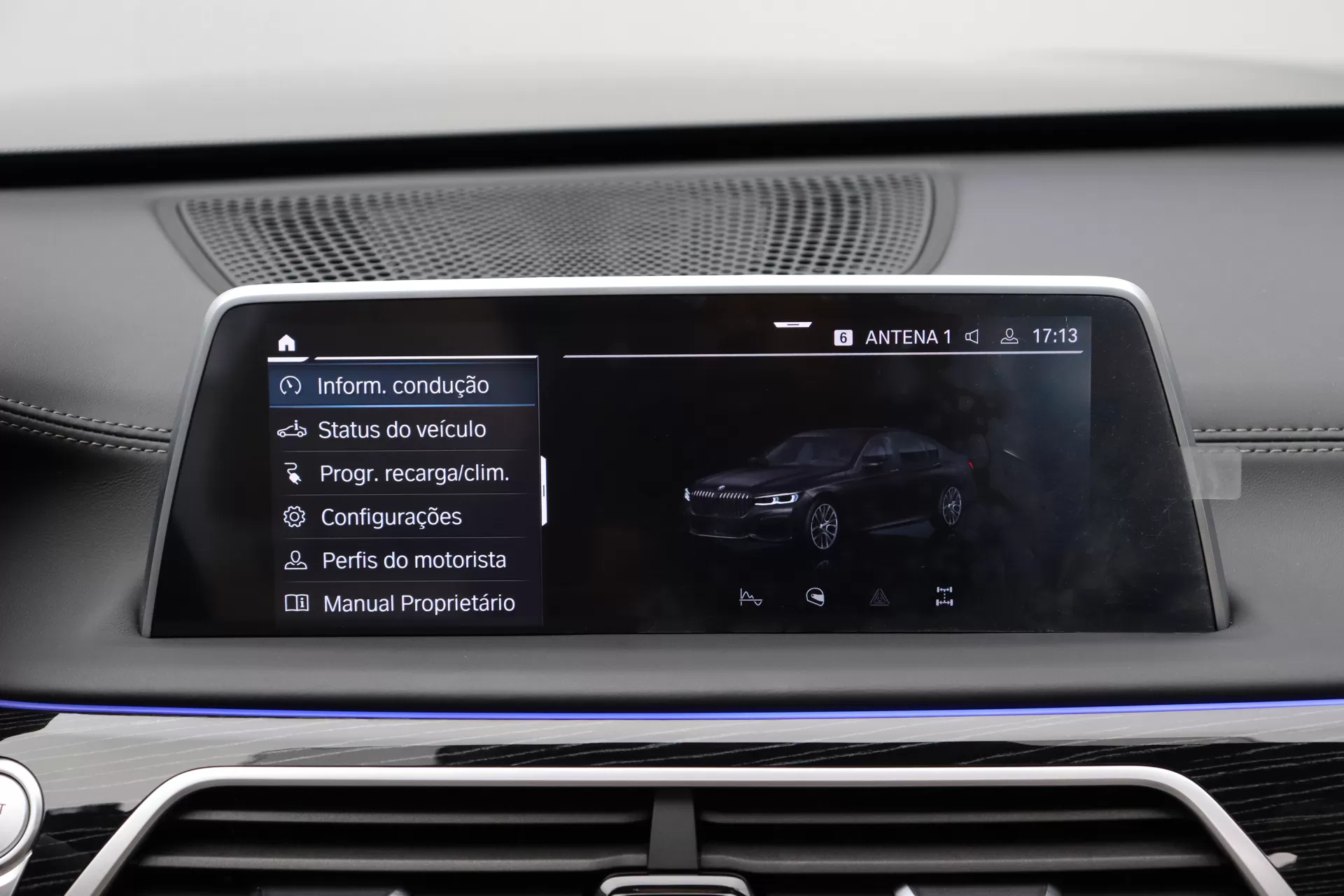 Blindagem nível III-A Leandrini com vidros AGP B33, teto solar panorâmico transparente e funcional, vidros dianteiros e traseiros funcionais, configurado na cor Preto Safira Metálico com interior em Couro Nappa Branco Marfim, volante M Sport com paddle shifts, bancos de ajuste elétrico com memória e massagem, Android Auto e Apple CarPlay, sistema de som Harman/Kardon, carregador de smartphone por indução, câmera 360º, Night Vision, iluminação ambiente, acabamento interno em madeira, cortinas e display de entretenimento para o banco traseiro com tablet, banco traseiro com massagem, head-up display, ajuste de altura do chassi, sucção de portas, rodas aro 20’ diamantadas, em exposição no nosso showroom.