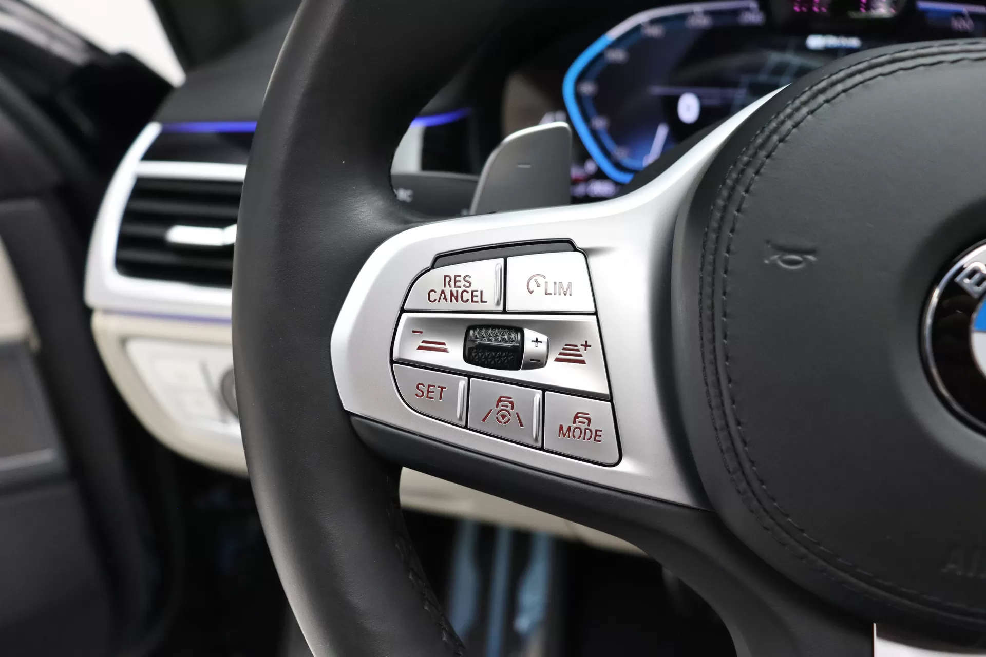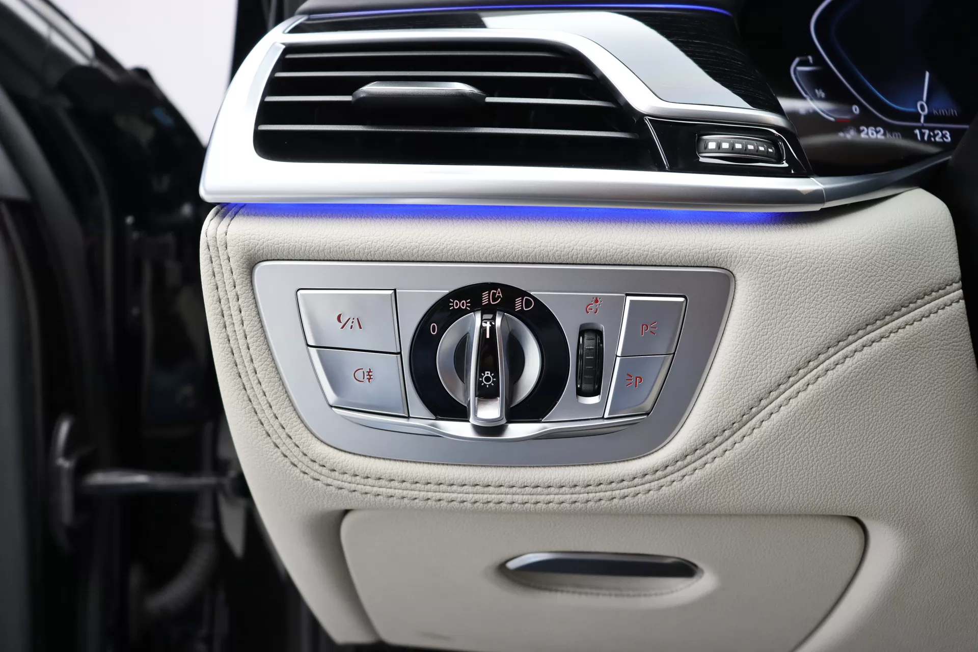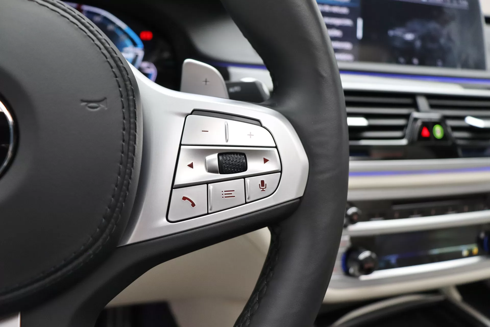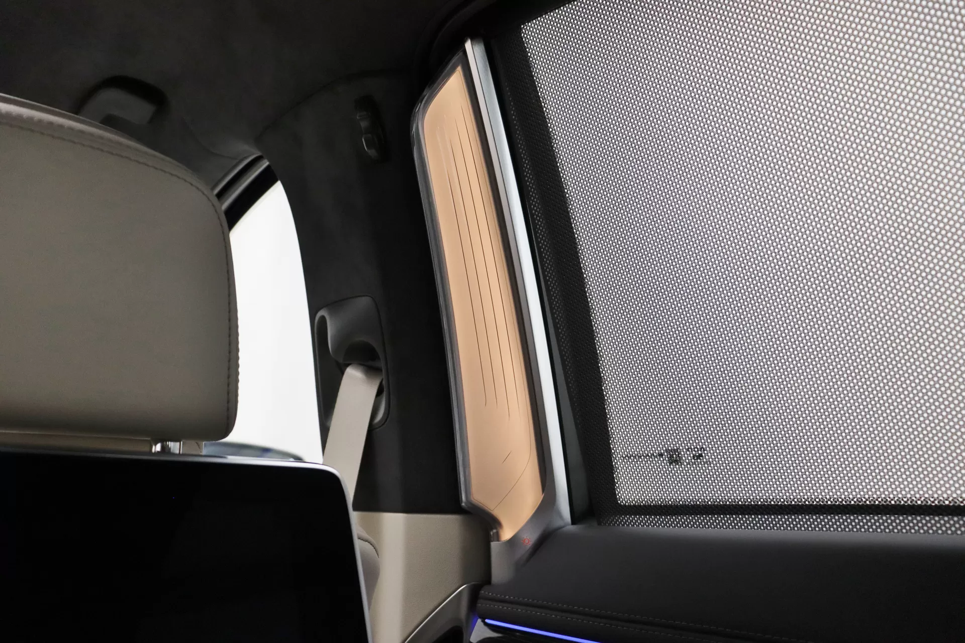 Blindagem nível III-A Leandrini com vidros AGP B33, teto solar panorâmico transparente e funcional, vidros dianteiros e traseiros funcionais, configurado na cor Preto Safira Metálico com interior em Couro Nappa Branco Marfim, volante M Sport com paddle shifts, bancos de ajuste elétrico com memória e massagem, Android Auto e Apple CarPlay, sistema de som Harman/Kardon, carregador de smartphone por indução, câmera 360º, Night Vision, iluminação ambiente, acabamento interno em madeira, cortinas e display de entretenimento para o banco traseiro com tablet, banco traseiro com massagem, head-up display, ajuste de altura do chassi, sucção de portas, rodas aro 20’ diamantadas, em exposição no nosso showroom.