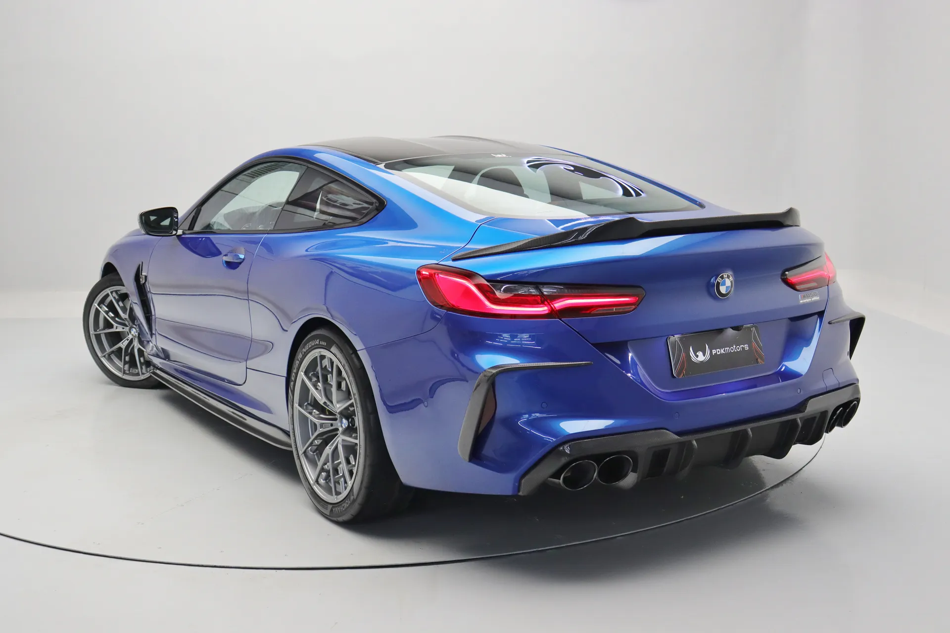Projeto de customização Unique Edition montado pela Easy Parts by Perroni Motorsport; Body Kit BMW M8 com troca de para-choques dianteiros e traseiros, para-barro frontal, kit de para-lamas laterais e ponteiras de escapamento; apliques externos em fibra de carbono que inclui o front lip, side lip, aerofólio e difusor traseiro; remap do motor com downpipes originais, filtros esportivos; rodas aro 20' forjadas BMW 863 M, pneus de alta performance Advan Neova ADO9; pinças em dourado; full PPF.