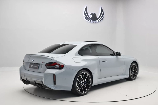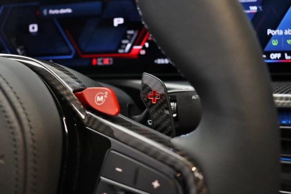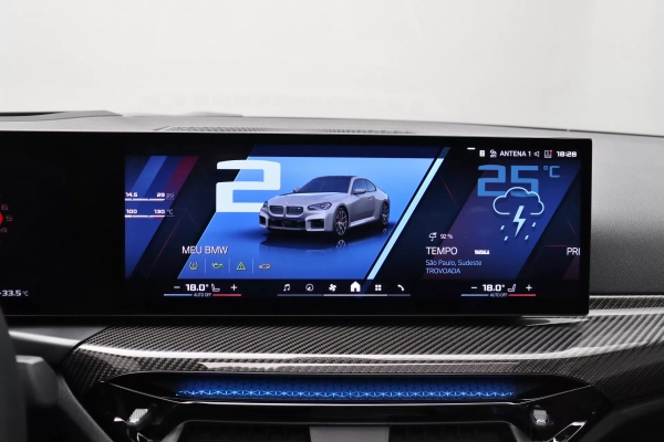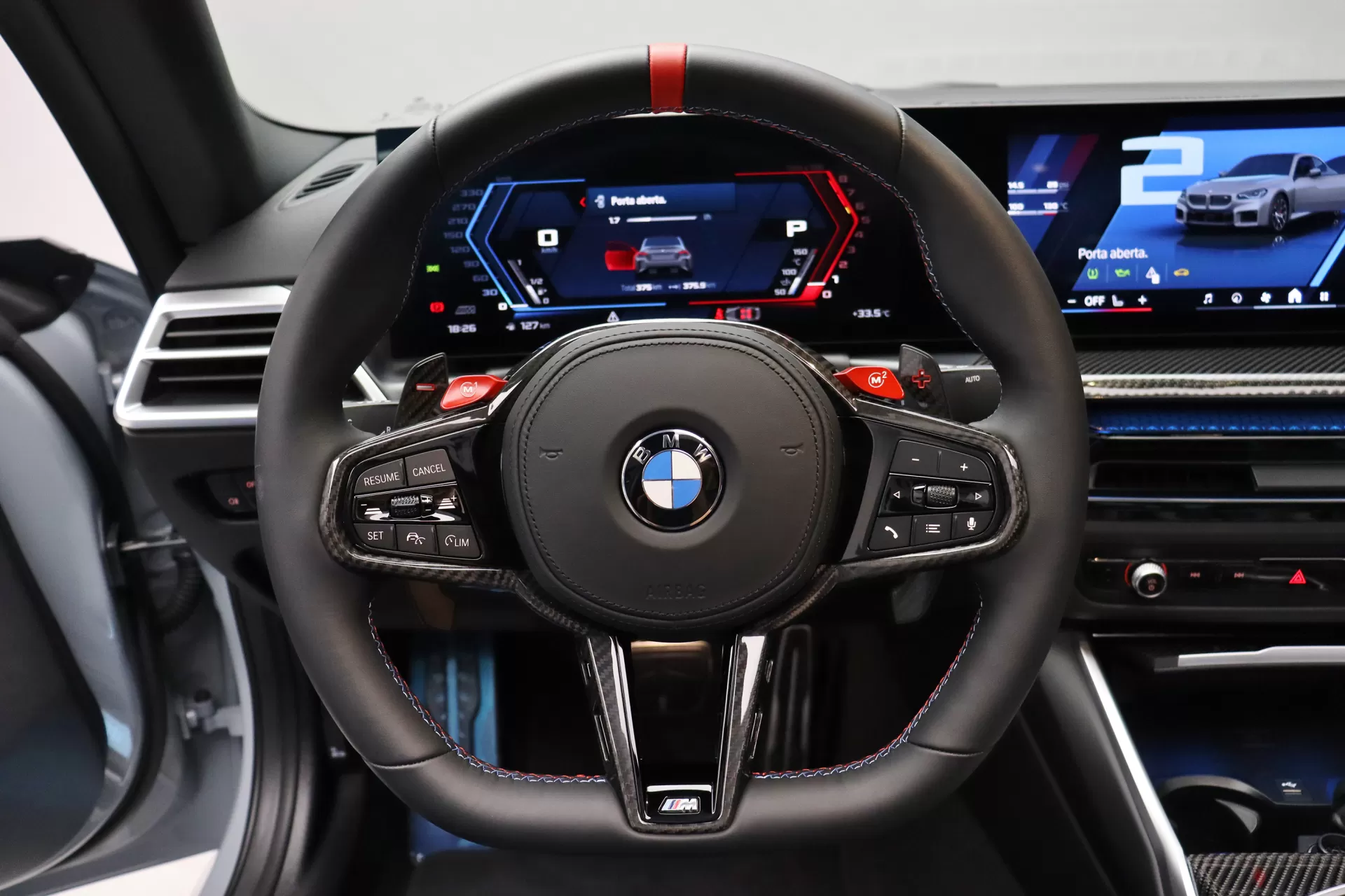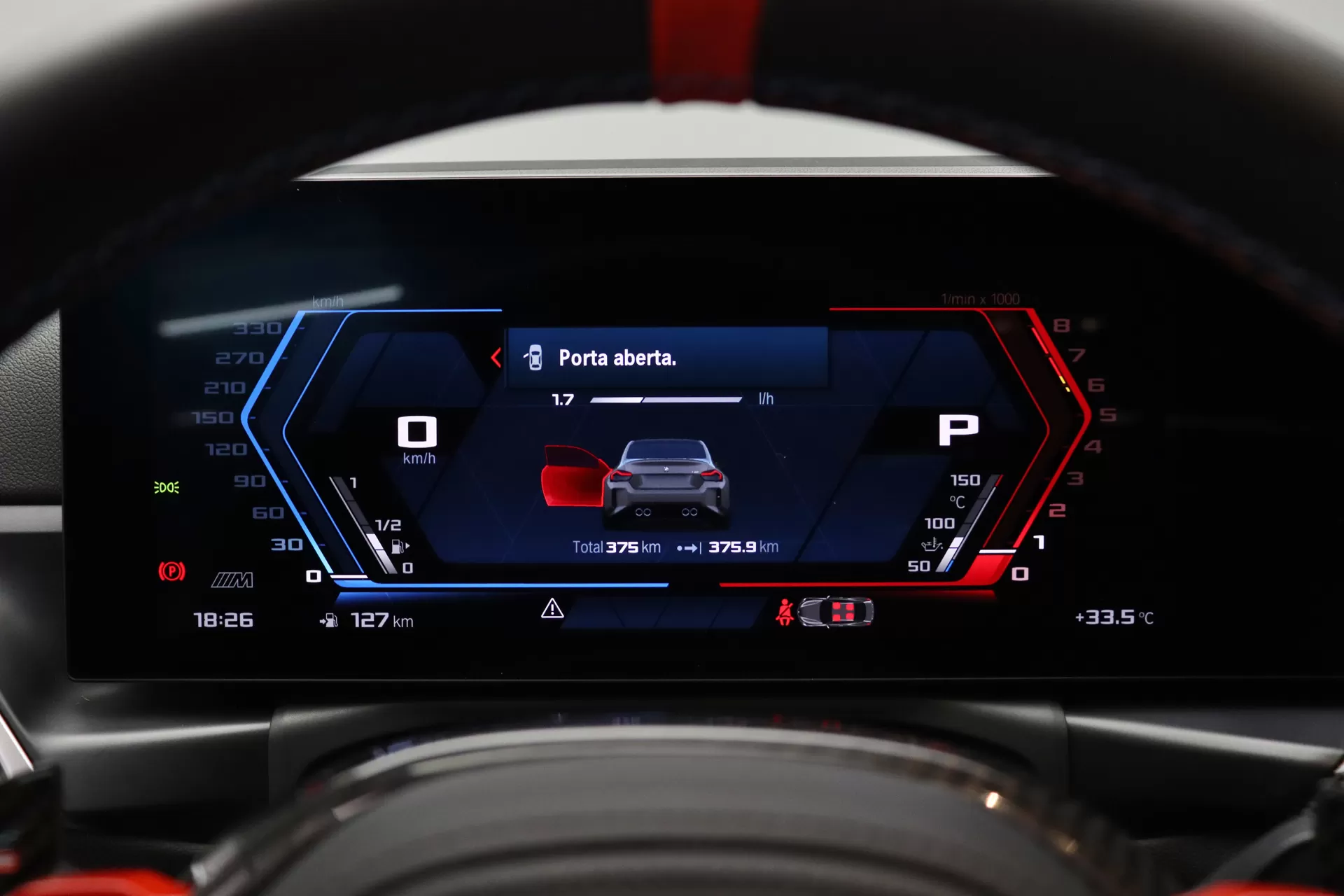 Apenas 375km configurado na cor Cinza Brooklyn com interior em couro Vernasca Preto, teto solar em vidro, volante M Sport em couro e carbono com sinal de 12 horas em Vermelho, bancos de ajuste elétrico com memória e aquecimento, BMW Curved Display, Android Auto, Apple CarPlay e assistente pessoal, acabamento interno em carbono, escapamento esportivo com seletor, sistema de som Harman/Kardon, alerta de colisão frontal, alerta de saída de faixa, detecção de ponto cego, alerta de fadiga, faróis full LED, rodas M aro 19’/20’ diamantadas, pinças de freio em Azul, em exposição no nosso showroom.