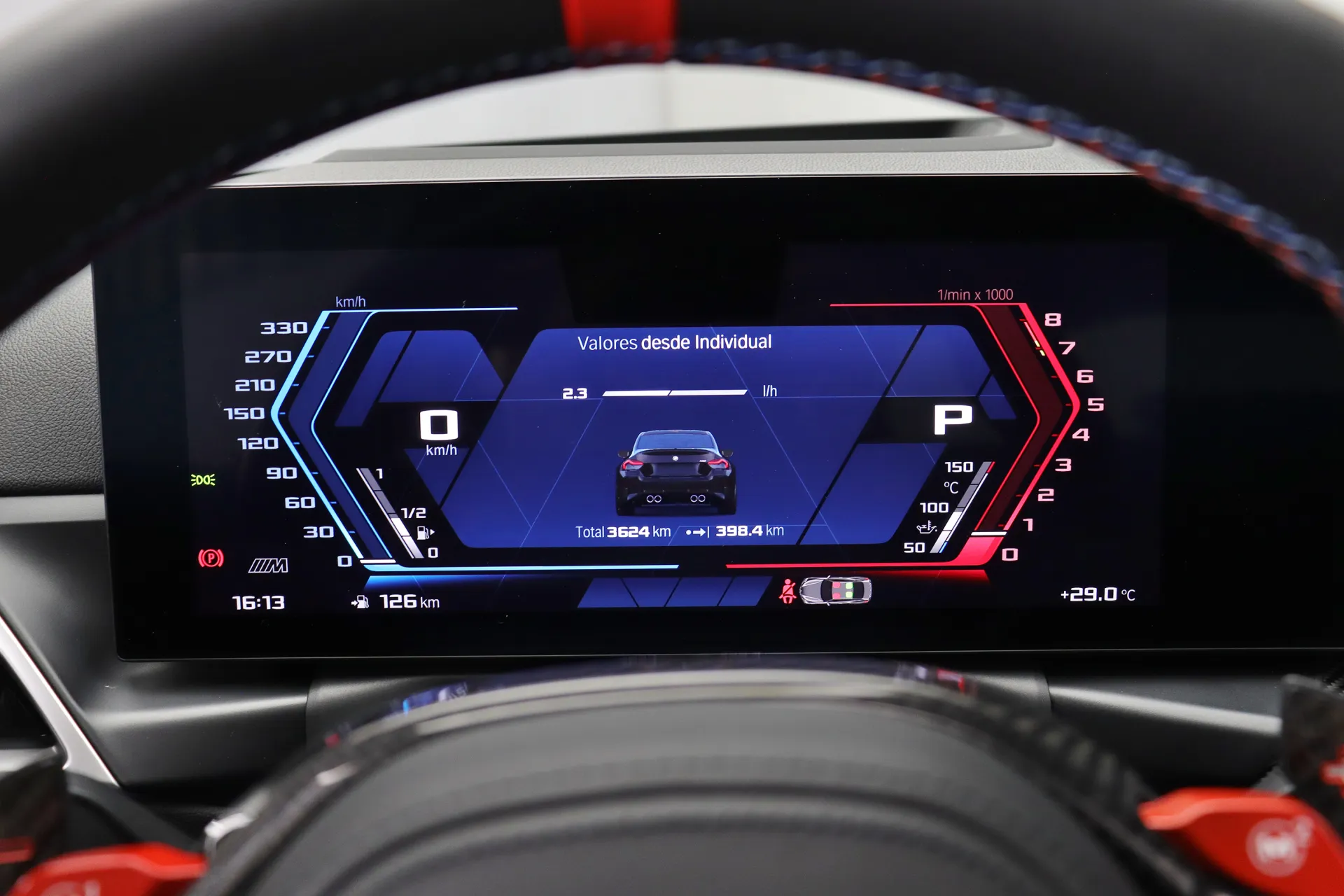Apenas 3.630km, última revisão feito em Dezembro de 2025, PPF Frontal + Clearplex no para-brisa, garantia de fábrica até setembro de 2027, configurado na cor Preto Safira com interior em Couro Vernasca Preto e costuras em Azul, teto solar em vidro, cintos de segurança M, volante M em couro e carbono com sinal de 12 horas em vermelho, bancos de ajuste elétrico com memória e aquecimento, Park Assist com câmera de ré, Android Auto e Apple CarPlay, escapamento esportivo com seletor, M Mode, Drift Mode, sistema de som Harman/Kardon, alerta de colisão frontal, alerta de saída de faixa, alerta de fadiga, rodas aro 19’/20’ em preto brilhante, freios M com pinças em azul, em exposição no nosso showroom.
