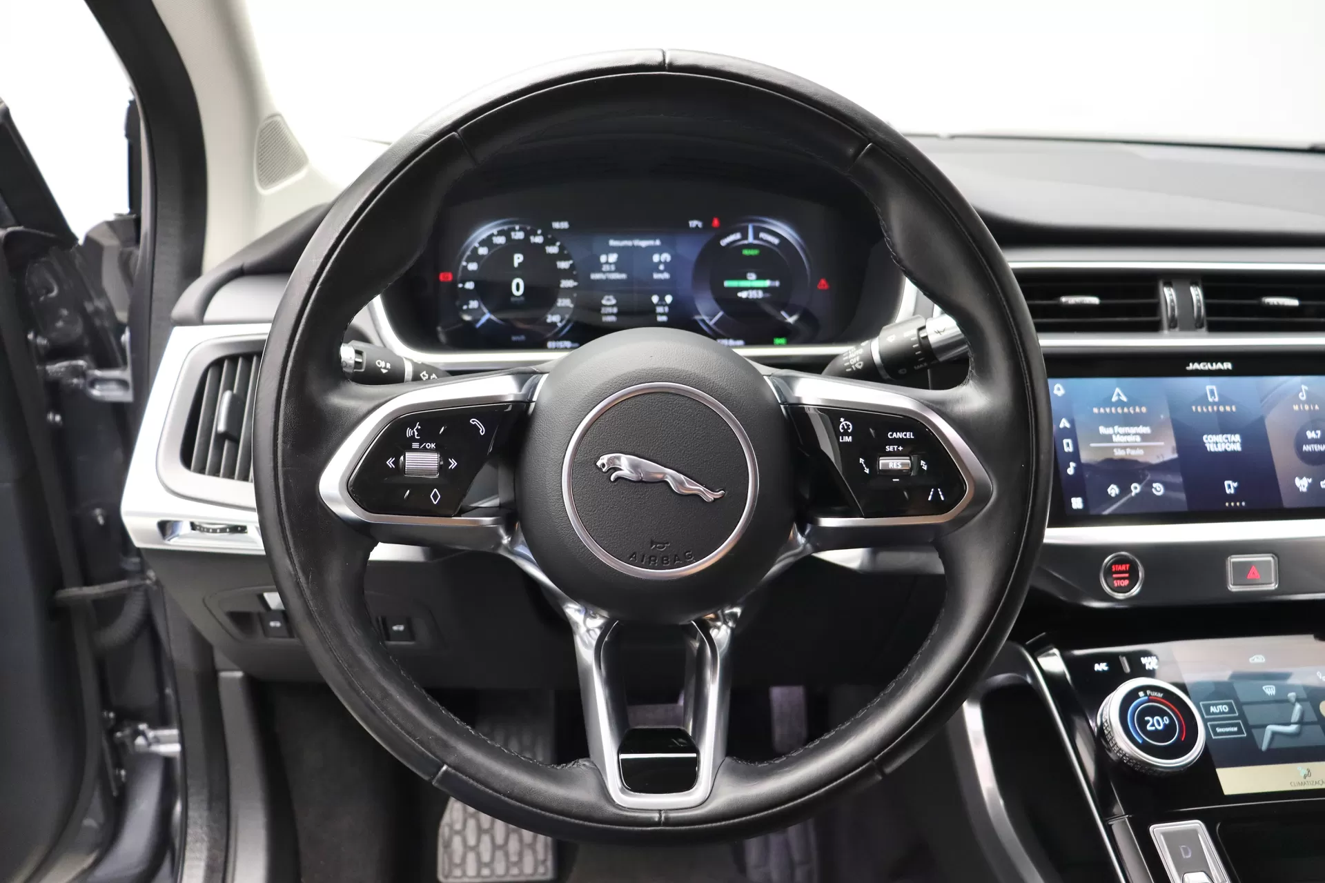 Última revisão feito na Autostar em Agosto de 2025, configurado na cor Eiger Grey com interior em Couro Preto, teto solar panorâmico fixo, volante multifuncional em couro, bancos de ajuste elétrico com memória, logotipo Jaguar nos encostos de cabeça, sistema de som Meridian, câmera 360º, faróis dull LED, Android Auto e Apple CarPlay, carregador de smartphone por indução, tapetes em veludo, ar condicionado digital dual zone, rodas aro 20’ diamantadas, em exposição no nosso showroom.