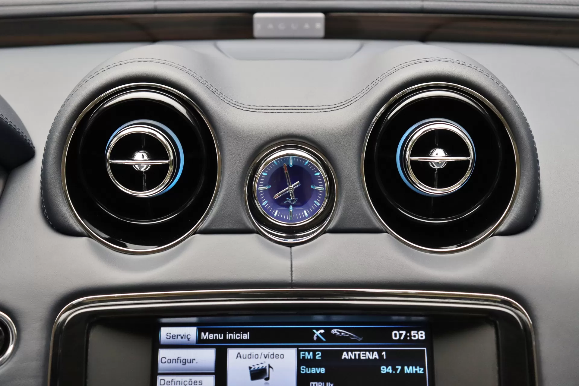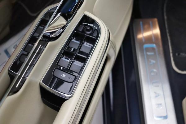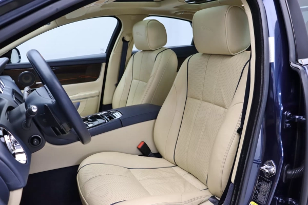 Apenas 24.900km, configurado na cor Azul com interior em Couro Bicolor Bege/Preto, teto solar duplo, cintos de segurança em Preto, volante multifuncional com aquecimento, bancos dianteiros de ajuste elétrico com memória, aquecimento ventilação e massagem, bancos traseiros com aquecimento e ventilação, display de entretenimento traseiro com controle remoto, controle de cruzeiro, relógio analógico no painel, acabamento interno em madeira, sistema de som Bowers & Wilkins, tapete em veludo, manopla do câmbio rotativo retrátil, logotipo Jaguar nos encostos de cabeça, ar condicionado digital de 4 zonas, persiana para o vidro traseiro, rodas aro 19’ em Prata, em exposição no nosso showroom.