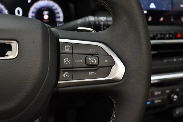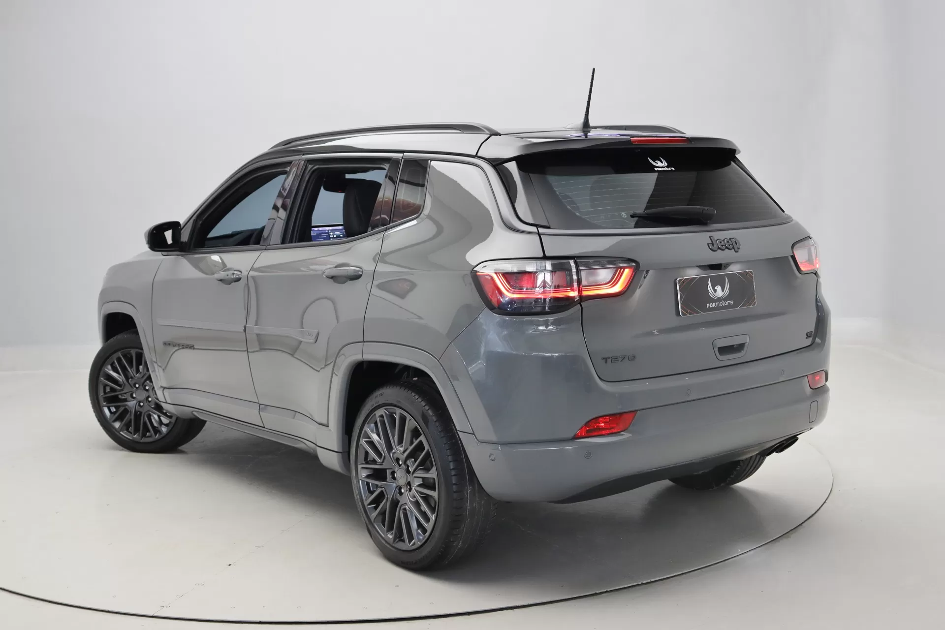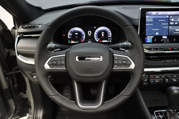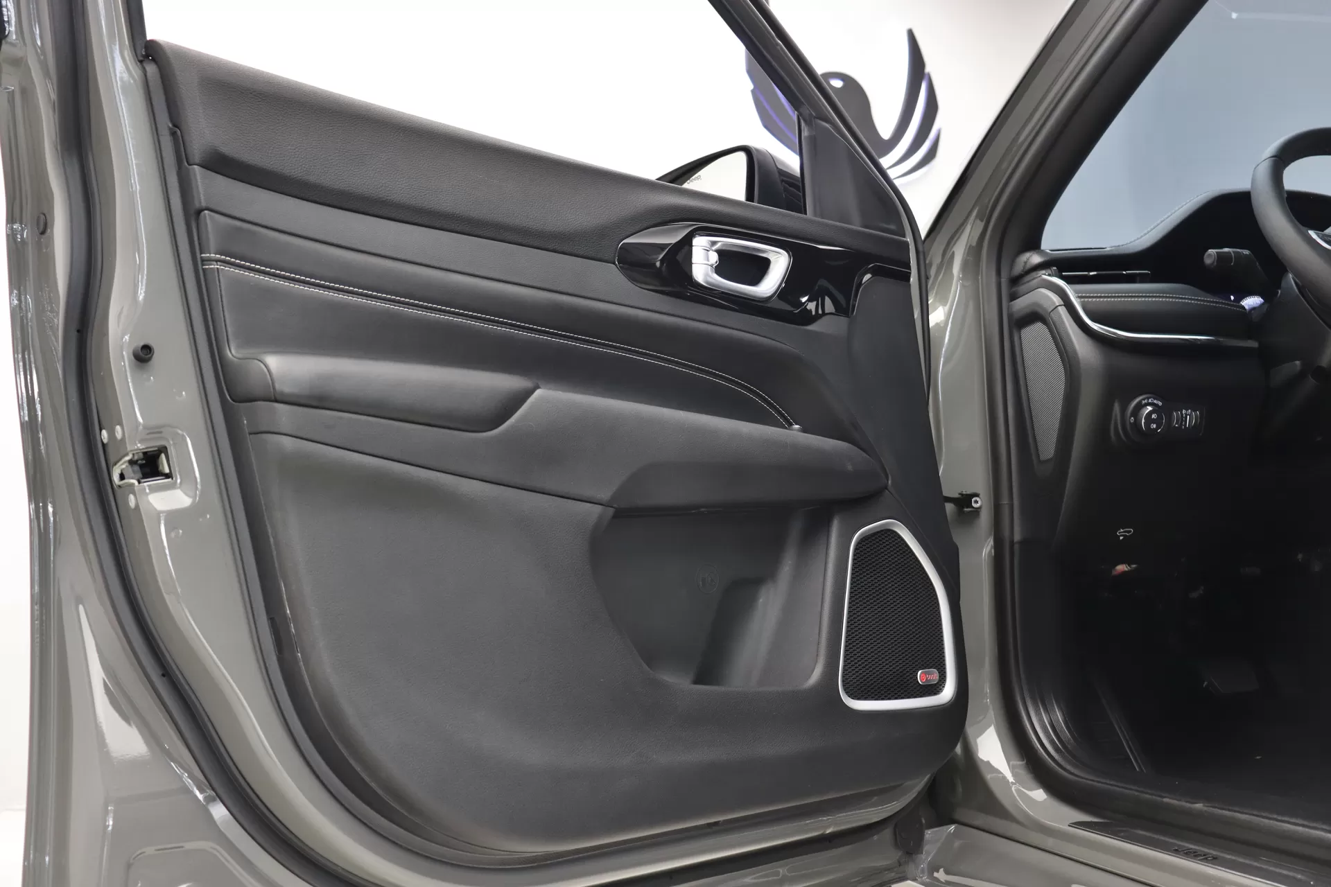 Configurado na cor Cinza com interior em Couro Preto, volante multifuncional com paddle shifts, teto solar panorâmico, bancos dianteiros com ajuste elétrico, sistema de som Beats, sistema Uconnect com Android Auto e Apple CarPlay, Park Assist com câmera de ré, porta malas com abertura elétrica, alerta de ponto cego, controle de cruzeiro adaptativo, assistente de partida em rampas, modo Sport, tomada 127V para o banco traseiro, logotipo Jeep nos bancos dianteiros, rodas Aro 19’ em Cinza Fosco, em exposição no nosso showroom.