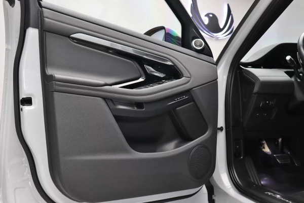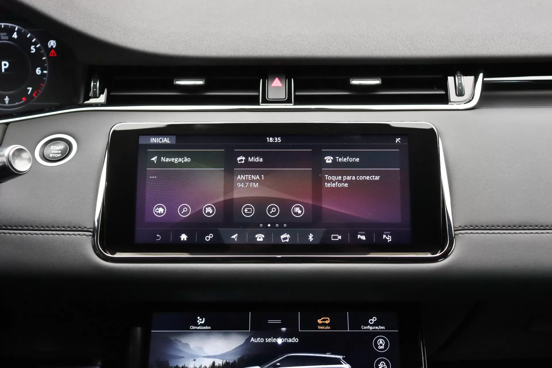 Blindagem nível III-A Carbon Black com vidros AGP B33, teto solar panorâmico transparente, configurado na cor Branco com interior em Couro Preto, volante multifuncional com paddle shifts, bancos de ajuste elétrico com memória, sistema de som Meridian, Android Auto e Apple CarPlay, soleira R-Dynamic em alumínio escovado, projeção de desenho Evoque nas portas, Start & Stop, assistente de direção, rodas aro 20’ em Prata, em exposição no nosso showroom.