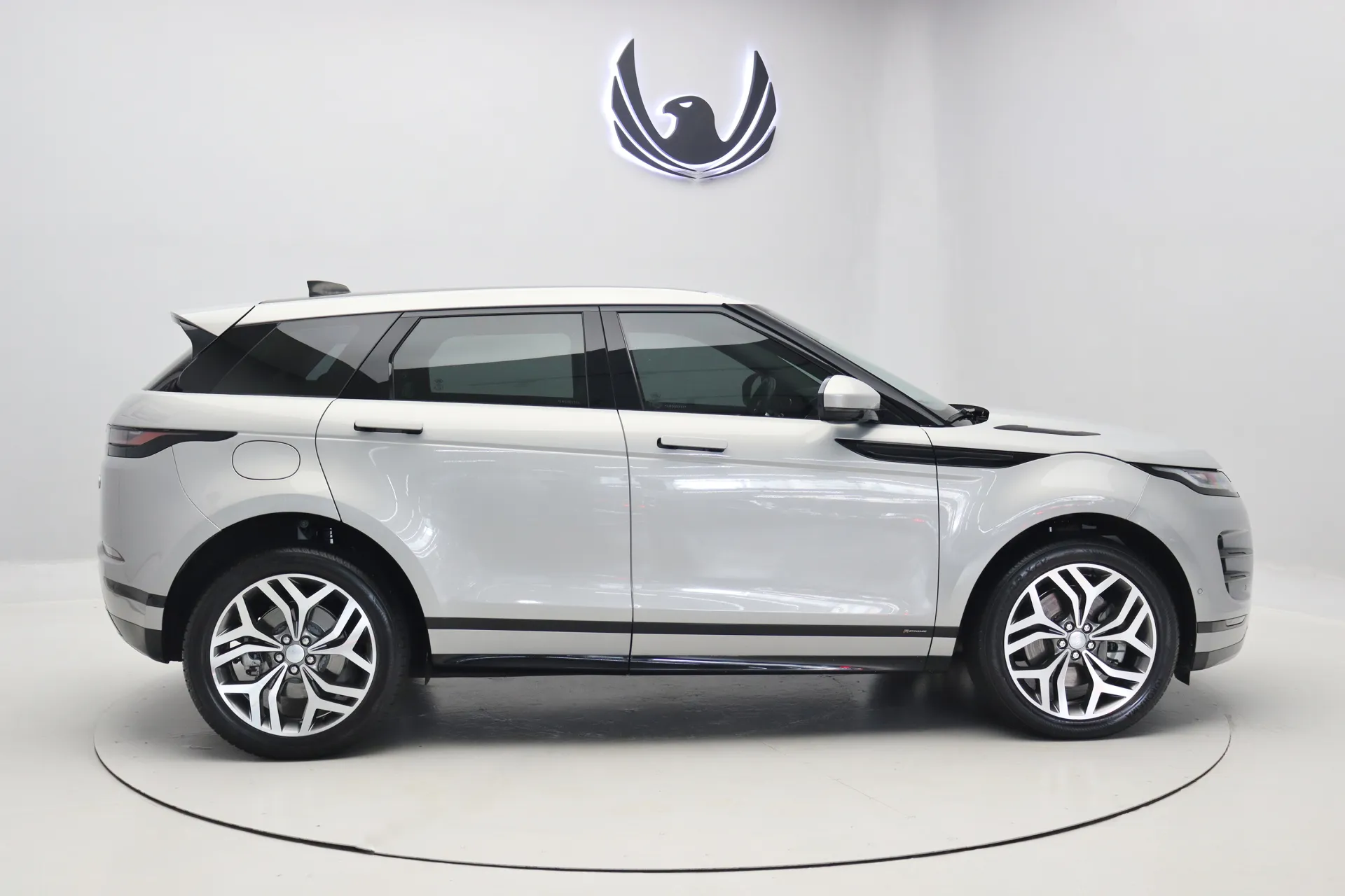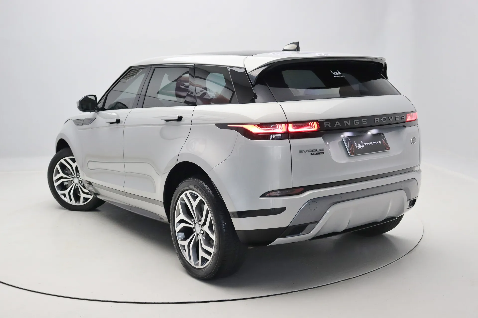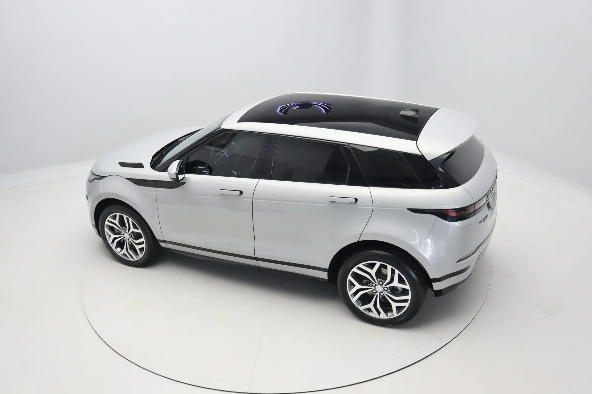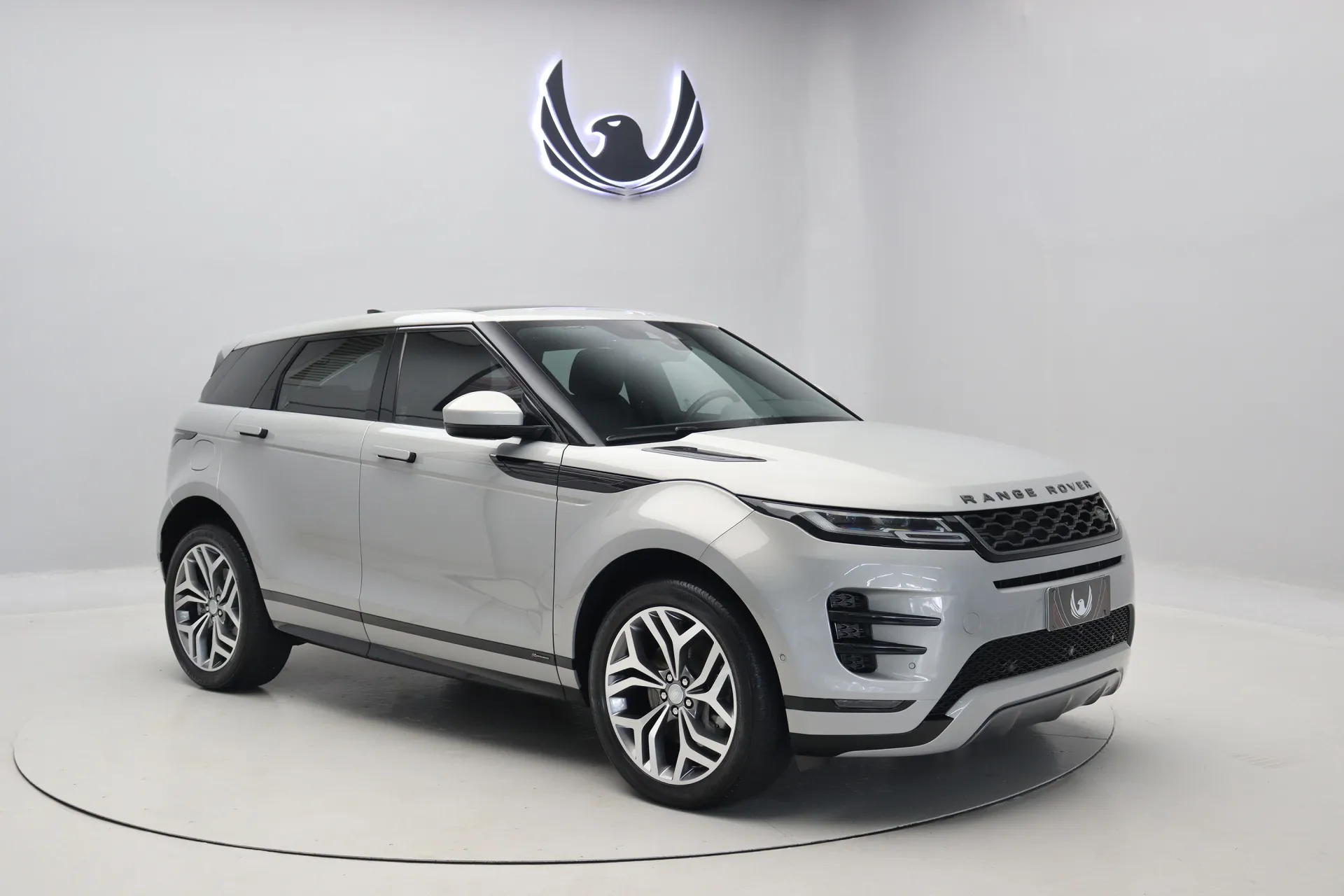 Configurado na cor Prata Seoul Perolado com interior em Couro Preto, volante multifuncional com paddle shifts, teto solar panorâmico fixo, bancos de ajuste elétrico com memória, sistema de som Meridian, Android Auto e Apple CarPlay, controle de cruzeiro Off-Road, assistente de estacionamento com câmera de ré, soleira R-Dynamic em alumínio, projeção de logo “Evoque” nas portas, Start & Stop, pedaleiras em alumínio, rodas aro 20’ diamantadas, em exposição no nosso showroom.