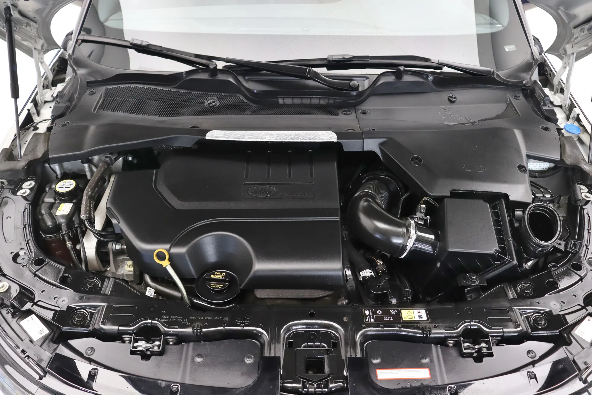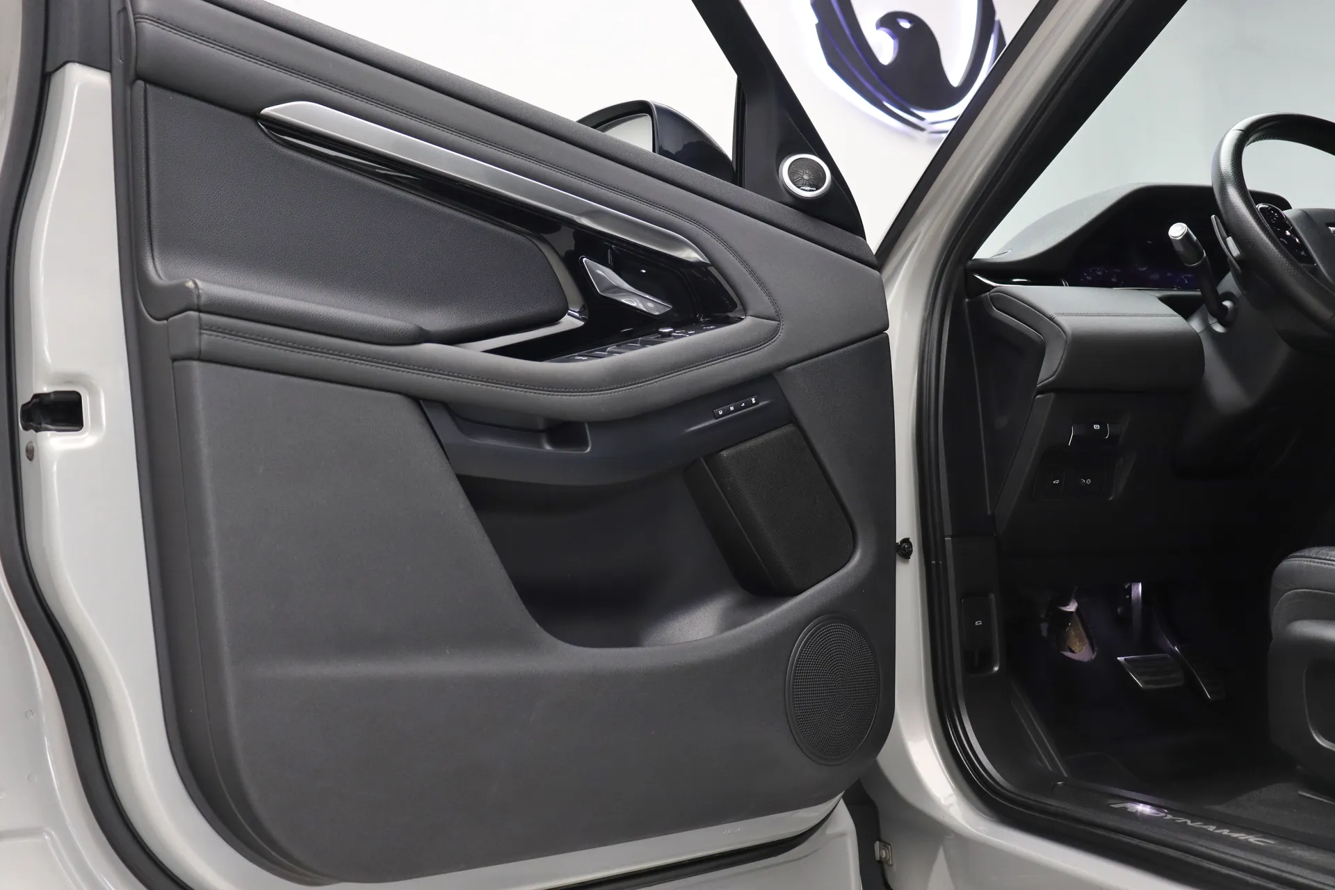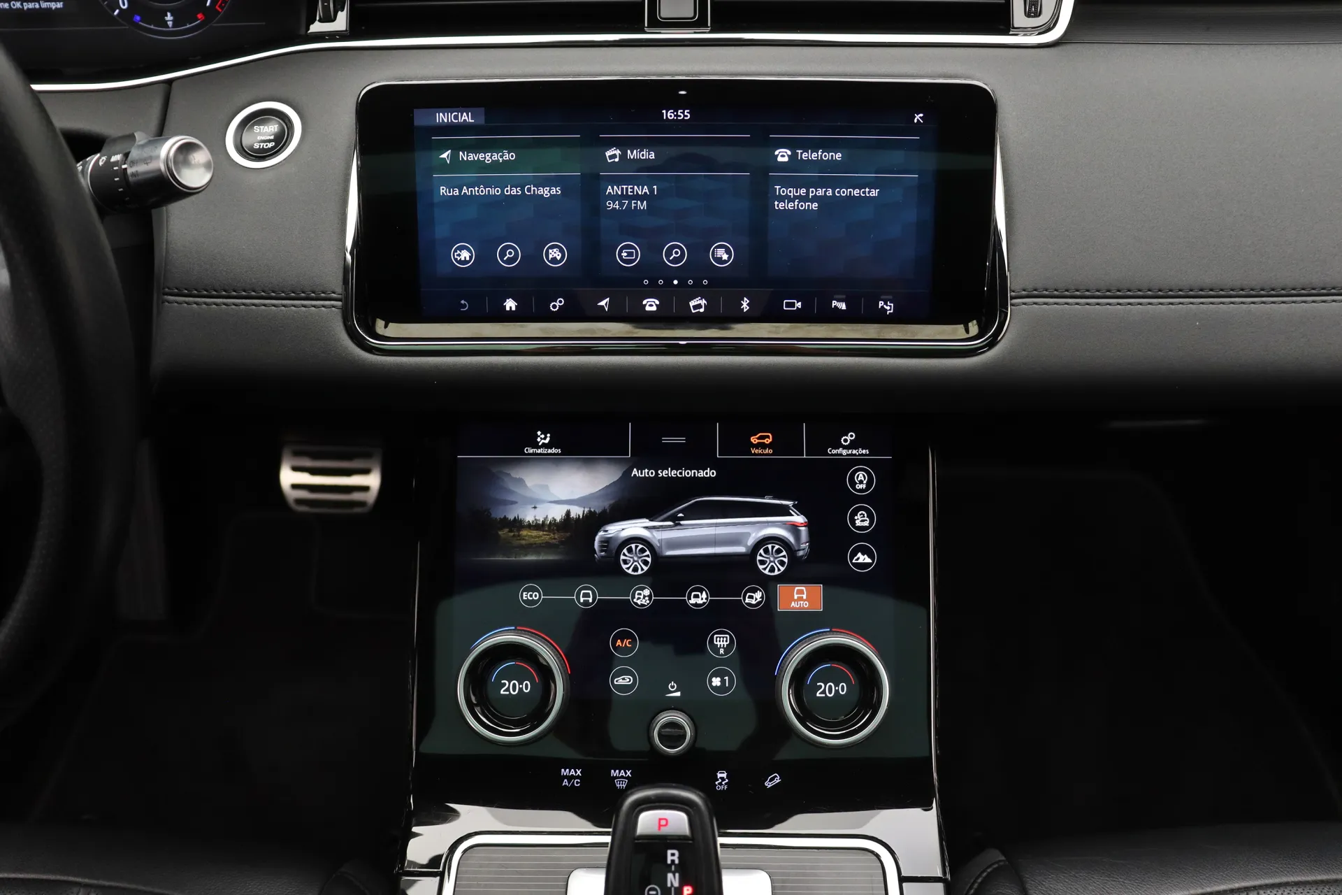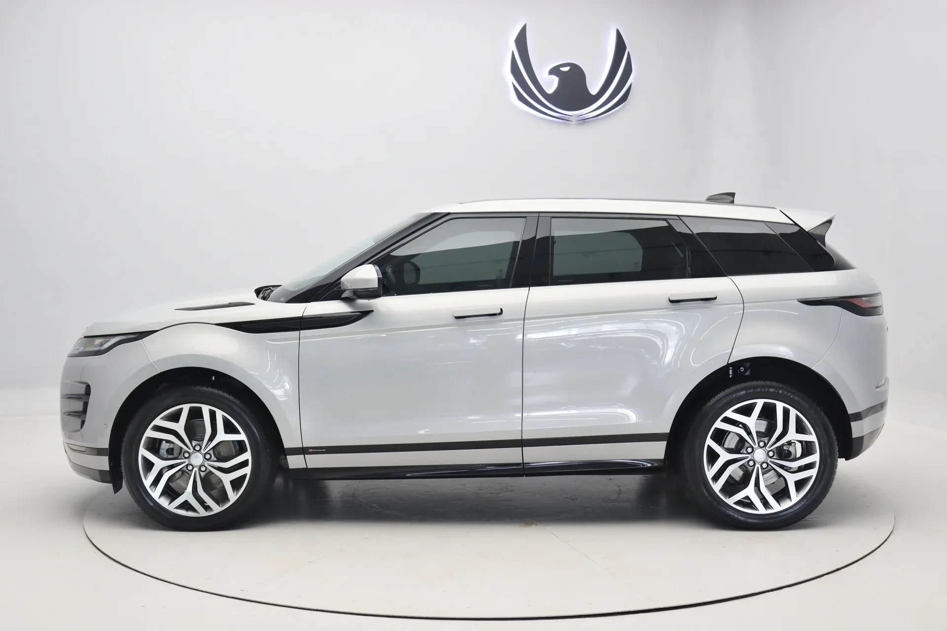 Configurado na cor Prata Seoul Perolado com interior em Couro Preto, volante multifuncional com paddle shifts, teto solar panorâmico fixo, bancos de ajuste elétrico com memória, sistema de som Meridian, Android Auto e Apple CarPlay, controle de cruzeiro Off-Road, assistente de estacionamento com câmera de ré, soleira R-Dynamic em alumínio, projeção de logo “Evoque” nas portas, Start & Stop, pedaleiras em alumínio, rodas aro 20’ diamantadas, em exposição no nosso showroom.