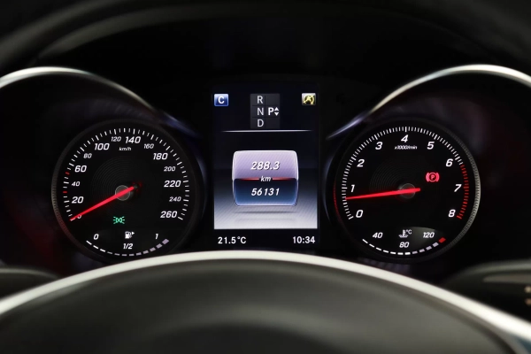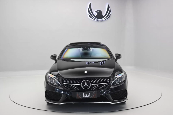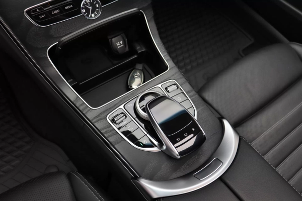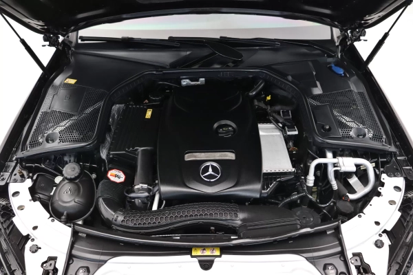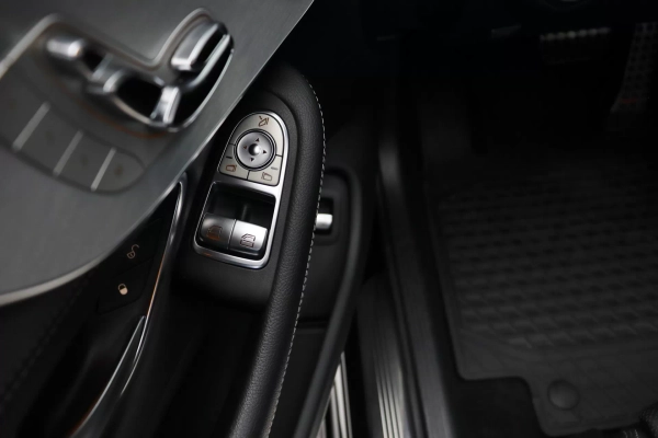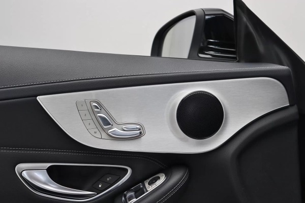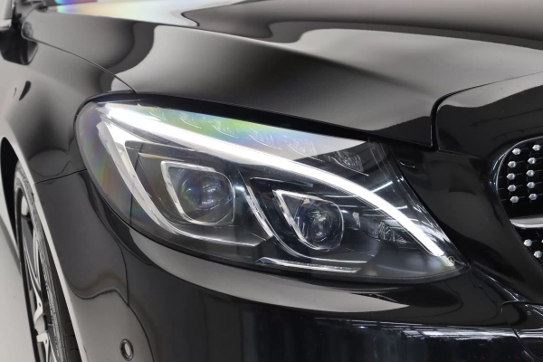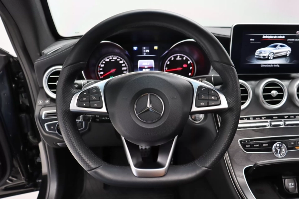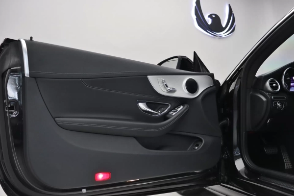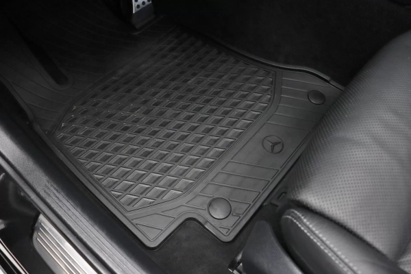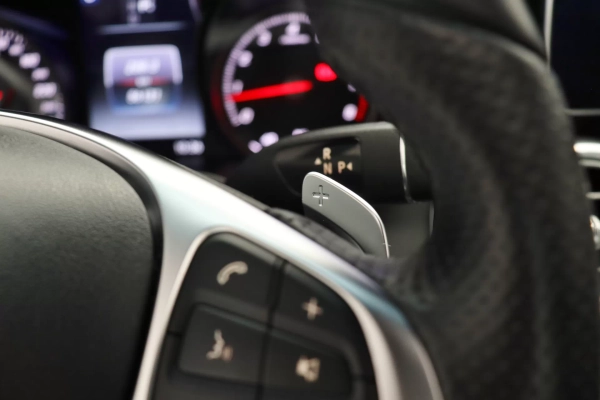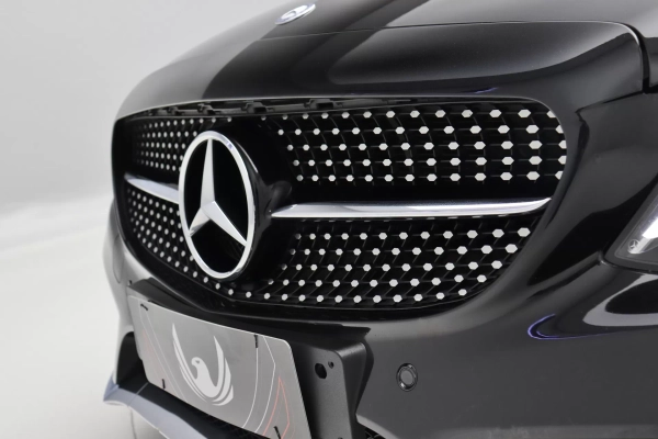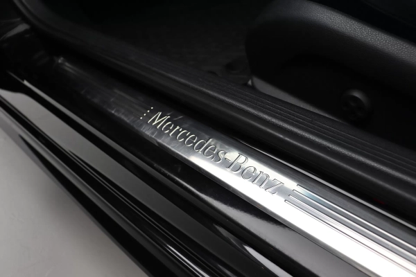 Blindagem Nível III-A Target com vidros Protechtor Evo, teto solar transparente e funcional, configurado na cor Preto Obsidian com Interior em Couro Preto, costuras em Cinza, volante multifuncional com paddle shifts, bancos de ajuste elétrico com memória, relógio analógico no painel, acabamento do painel em madeira, partida por botão, controle de cruzeiro, tapetes em borracha, rodas aro 18’ AMG diamantadas, em exposição no nosso showroom.