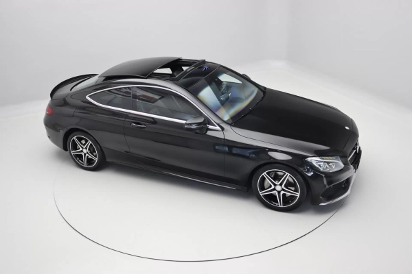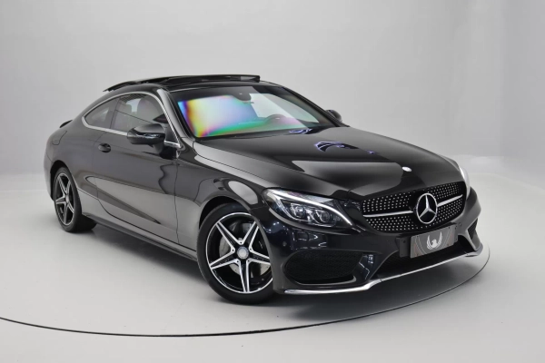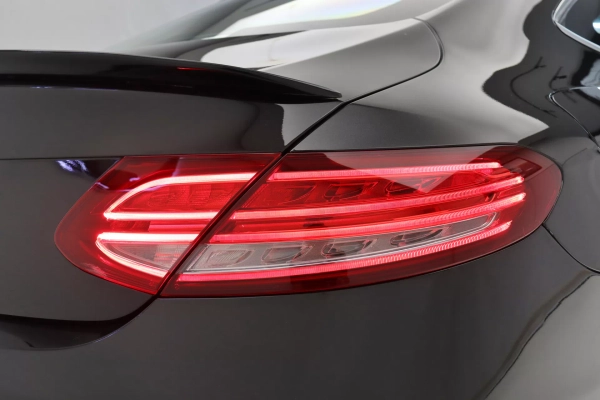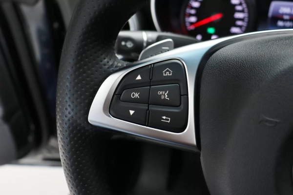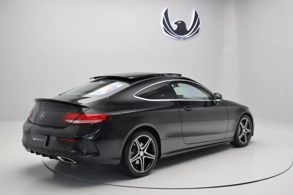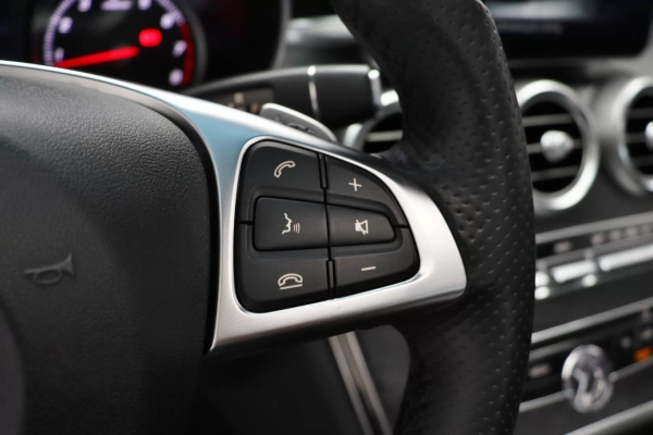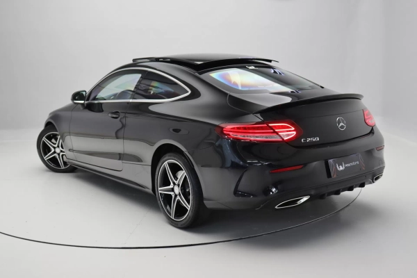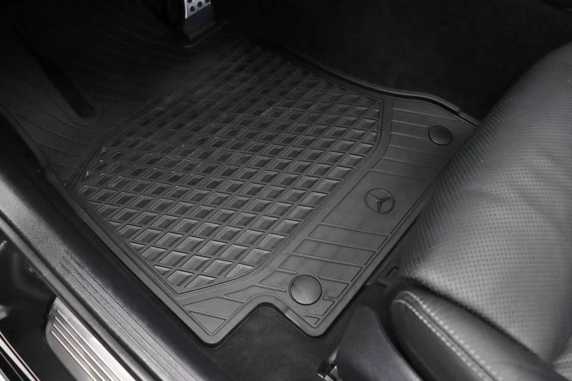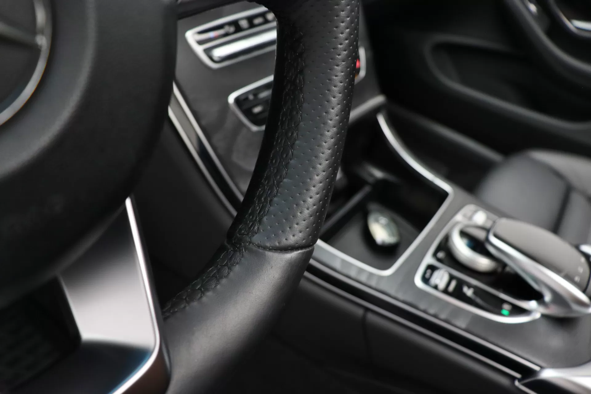 Blindagem Nível III-A Target com vidros Protechtor Evo, teto solar transparente e funcional, configurado na cor Preto Obsidian com Interior em Couro Preto, costuras em Cinza, volante multifuncional com paddle shifts, bancos de ajuste elétrico com memória, relógio analógico no painel, acabamento do painel em madeira, partida por botão, controle de cruzeiro, tapetes em borracha, rodas aro 18’ AMG diamantadas, em exposição no nosso showroom.