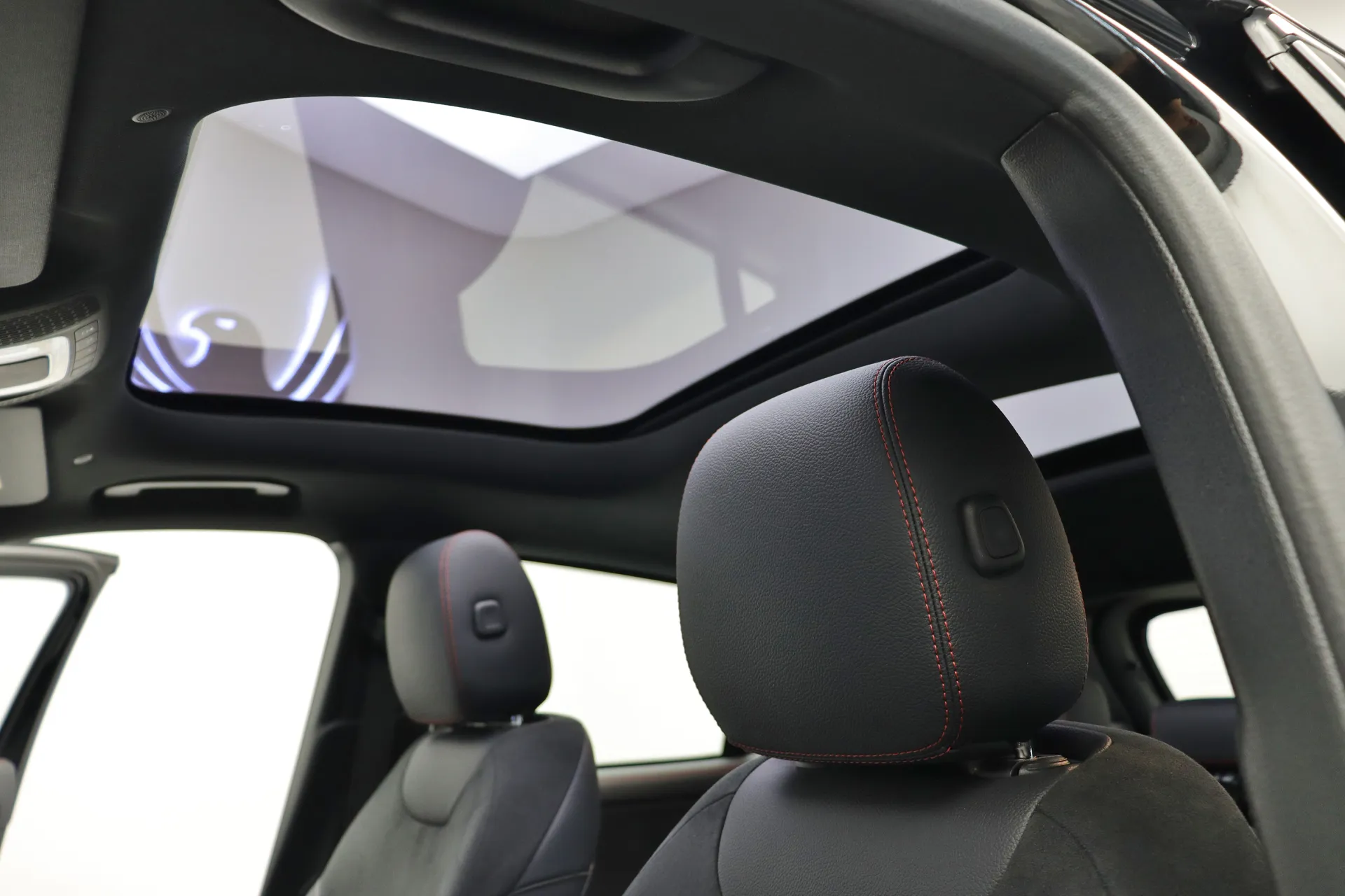 Blindagem nível iii-a dvb com vidros agp b33, teto solar transparente, configurado na cor preto com interior em couro e alcantara preto e costuras em vermelho