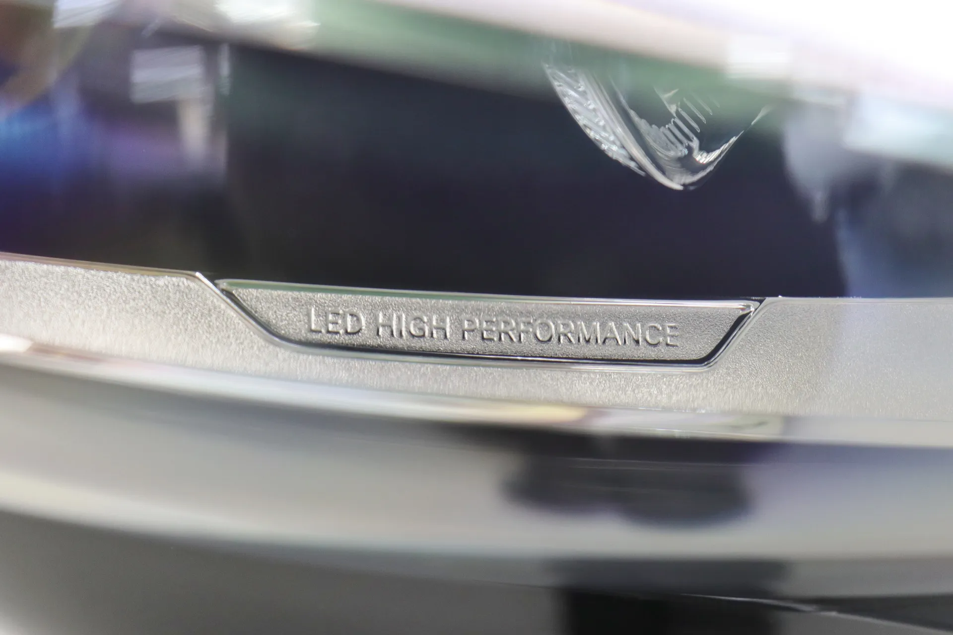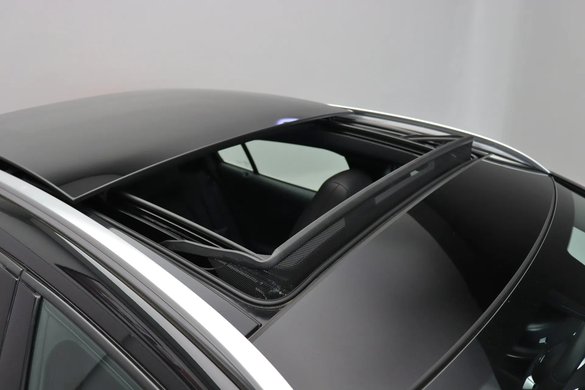 Configurado na cor preto cosmos com interior em couro e alcantara preto e costuras em vermelho, teto solar panorâmico