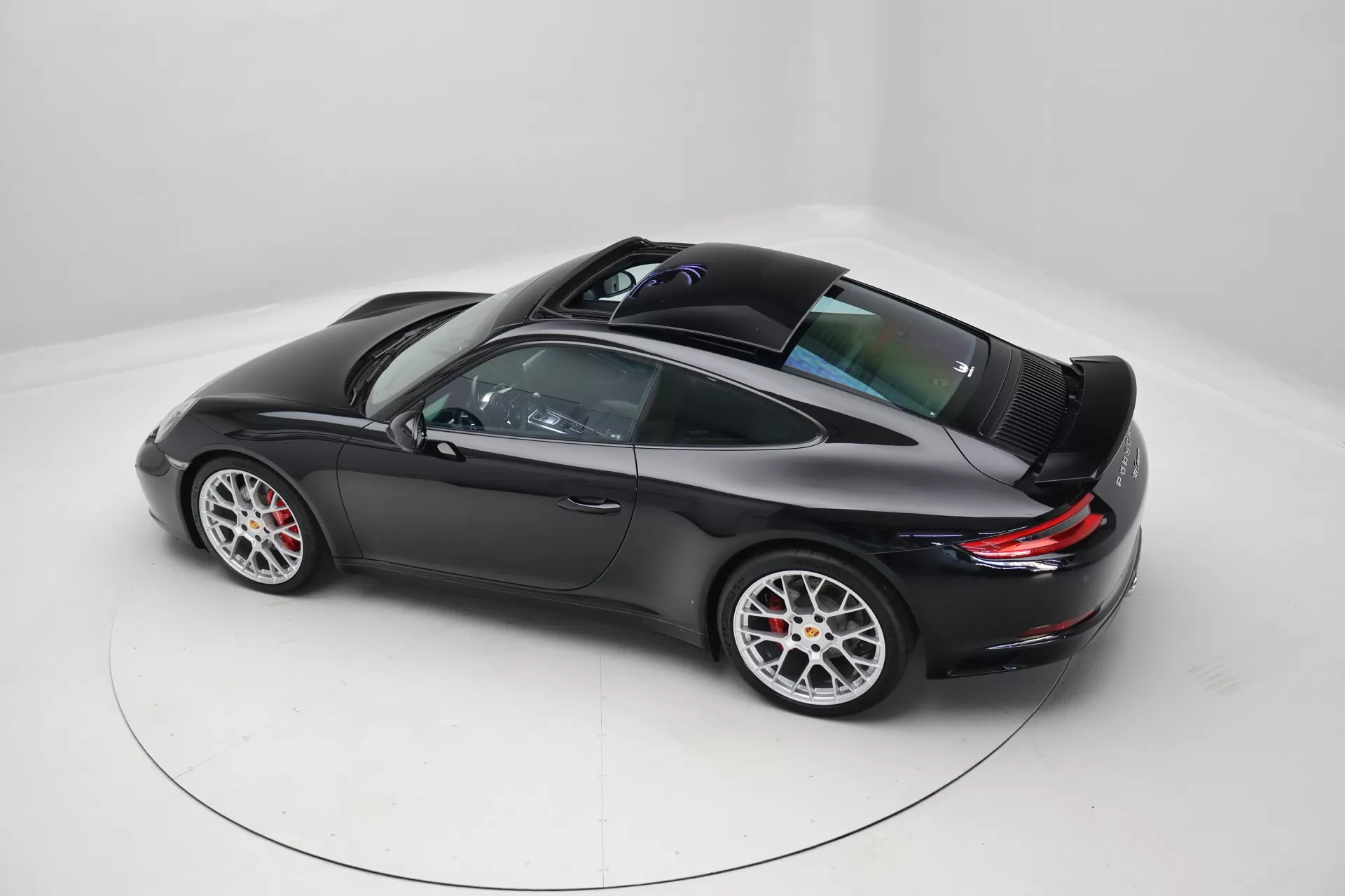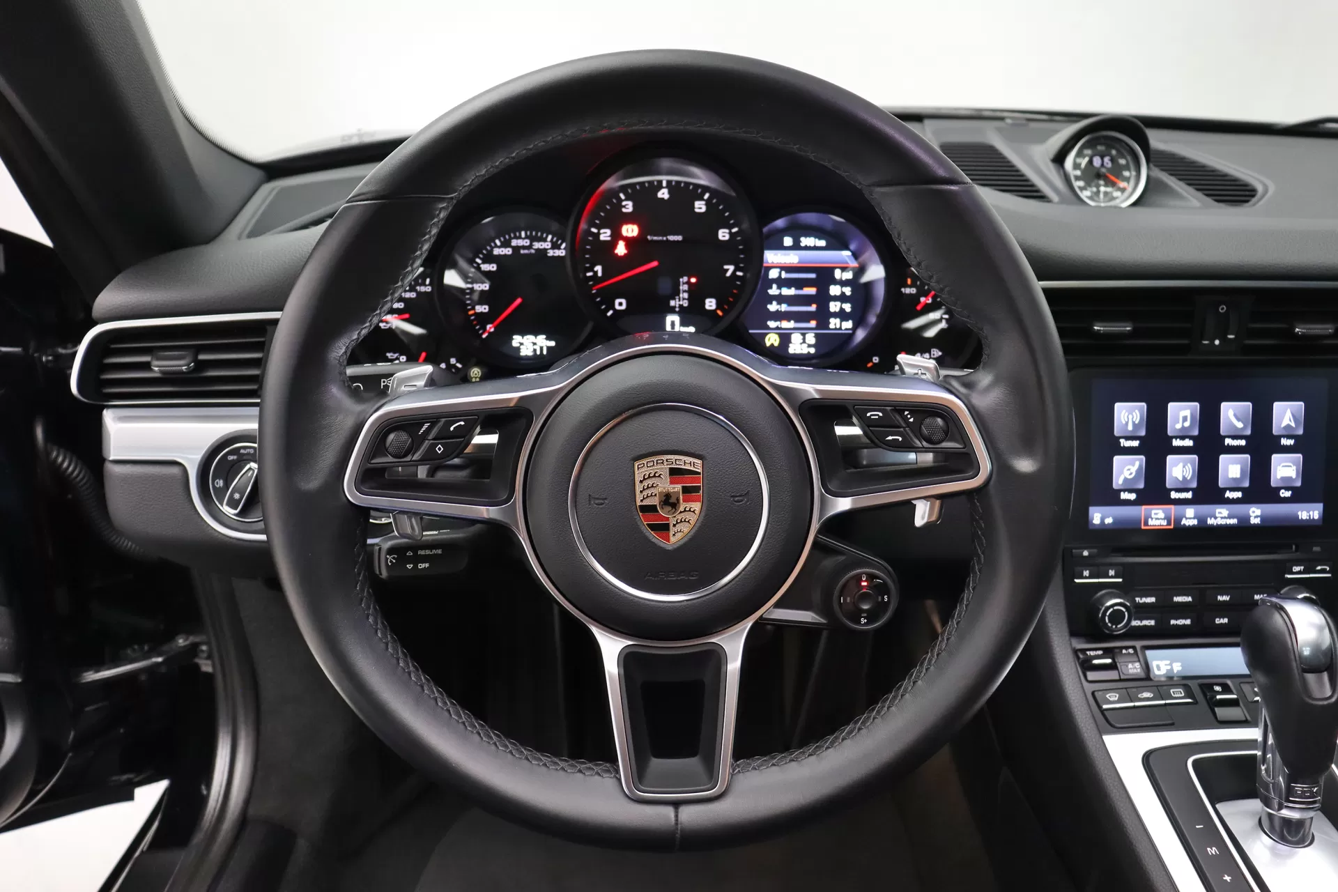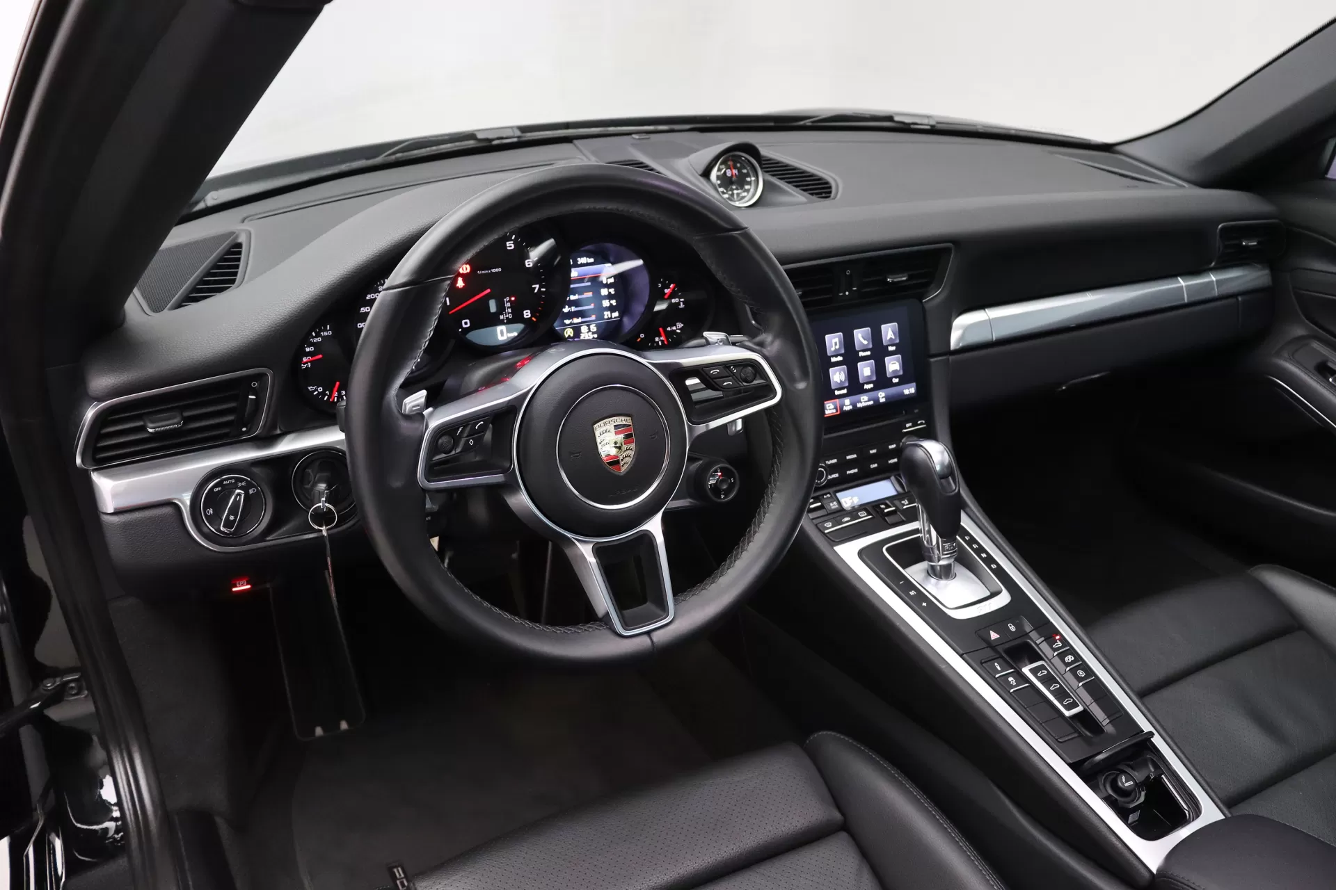 Full PPF, configurado na cor Preto com interior em Couro Preto, volante multifuncional com aquecimento, bancos de 14 vias com memória, cintos de segurança em Vermelho, teto solar opaco funcional, acabamento do teto em Race-Tex, Sport Chrono Package, escudo Porsche nos encostos de cabeça, ar condicionado digital dual zone, acabamento interno em cromado, escapamento esportivo com seletor, aerofólio traseiro retrátil, soleira em alumínio escovado, rodas aro 20’ RS Spyder em prata com pinças de freio em Vermelho, em exposição no nosso showroom.