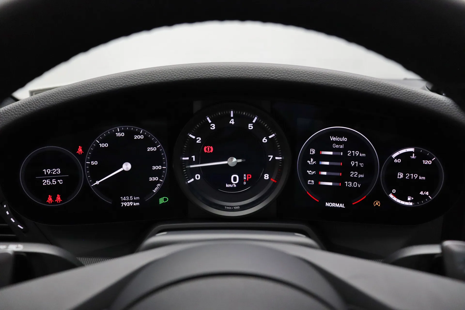 Apenas 7.940km, único dono, PPF frontal, proteção cerâmica do couro, todas as revisões na Stuttgart sendo a última em Outubro de 2025, 1ª parcela do IPVA PAGO, ponteiras esportivas duplas de escapamento, configurado na cor Cinza Ágata com interior em Couro Bicolor Preto/Bege, cintos em Preto, teto solar em vidro, volante multifuncional com paddle shifts, bancos de 14 vias com memória, sistema de som Bose, Android Auto e Apple CarPlay, escudo Porsche nos encostos de cabeça, iluminação ambiente, Sport Chrono Package, rodas aro 20’/21’ Carrera Classic, em exposição no nosso showroom.