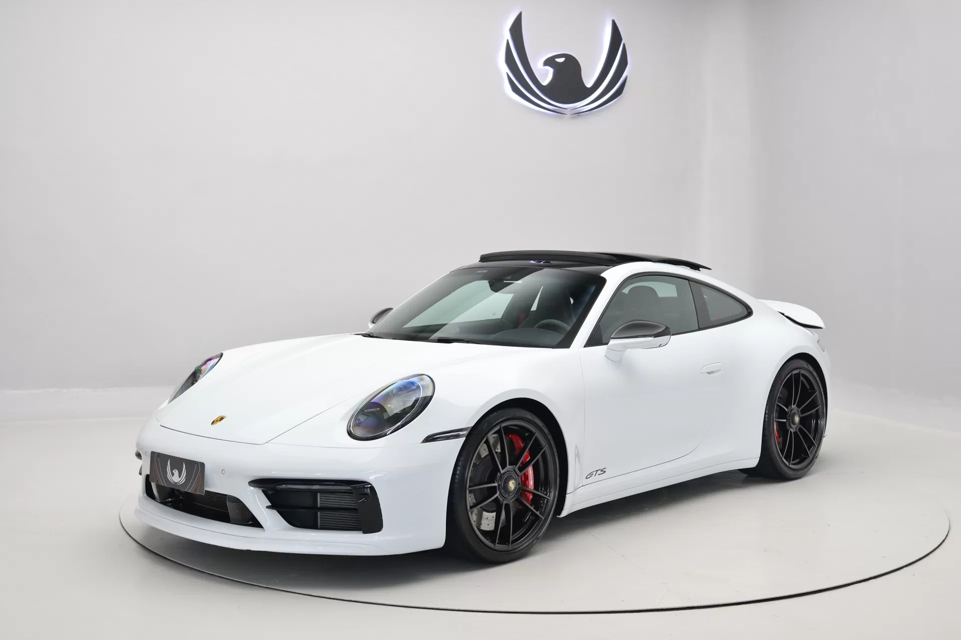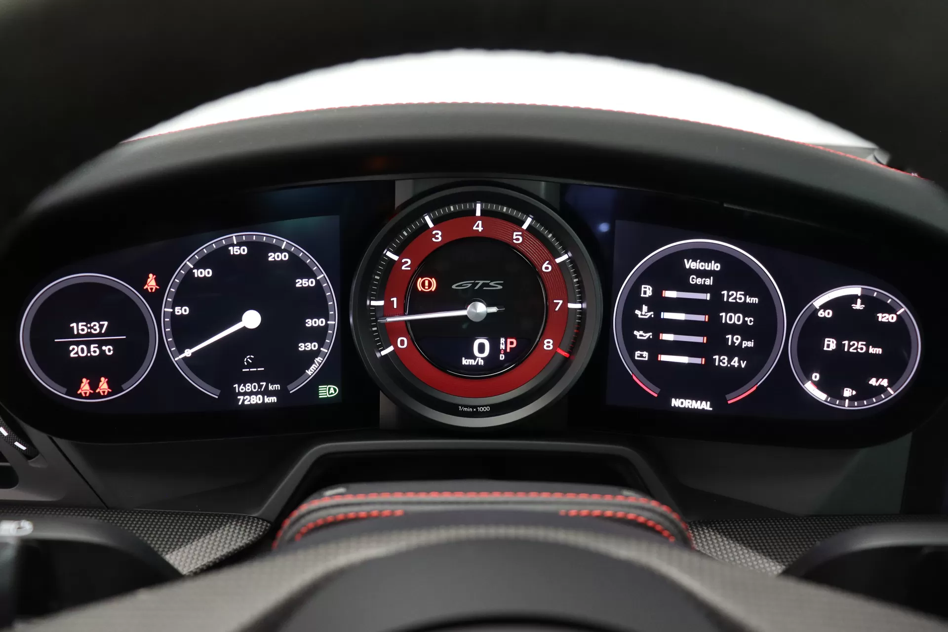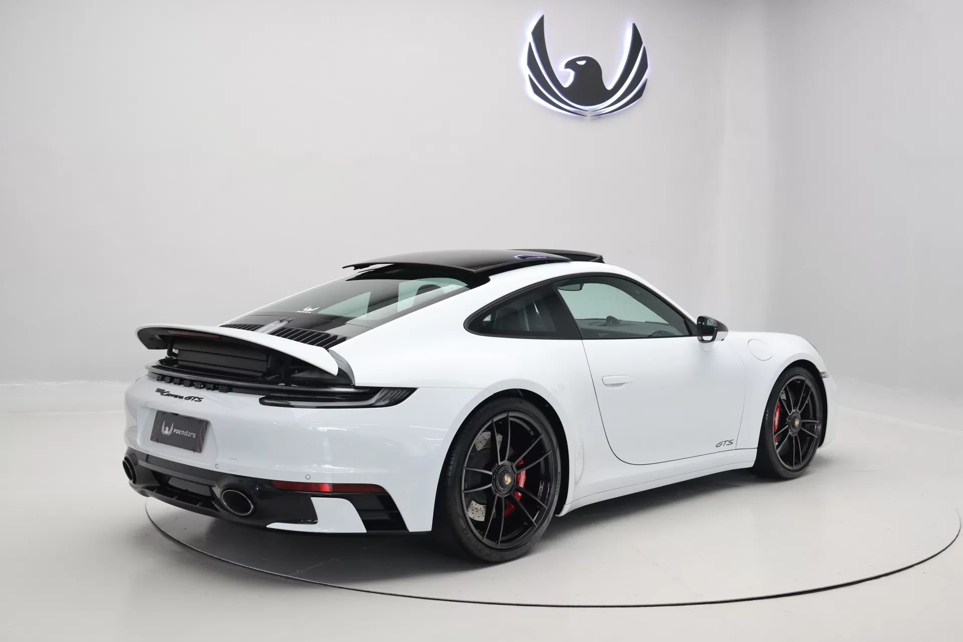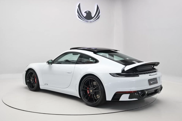 PPF Frontal, última revisão feito na Concessionária em Julho de 2025, configurado na cor Branco com interior em Couro e Race-Tex em Preto, costuras e cintos em Vermelho, bordado GTS nos encostos de cabeça, volante Sport GT em Race-Tex e carbono com função aquecimento, bancos de 18 vias com memória, teto solar em vidro, acabamento interno em carbono, câmera 360º, Sport Chrono Package, cronômetro e conta-giros em vermelho, soleira em carbono iluminado, escapamento esportivo com seletor, chave na cor do carro, sistema de som Bose, retrovisores em carbono, rodas Aro 20’/21’ de Cubo Rápido em Preto Brilhante, pinças de freio em Vermelho, em exposição no nosso showroom.