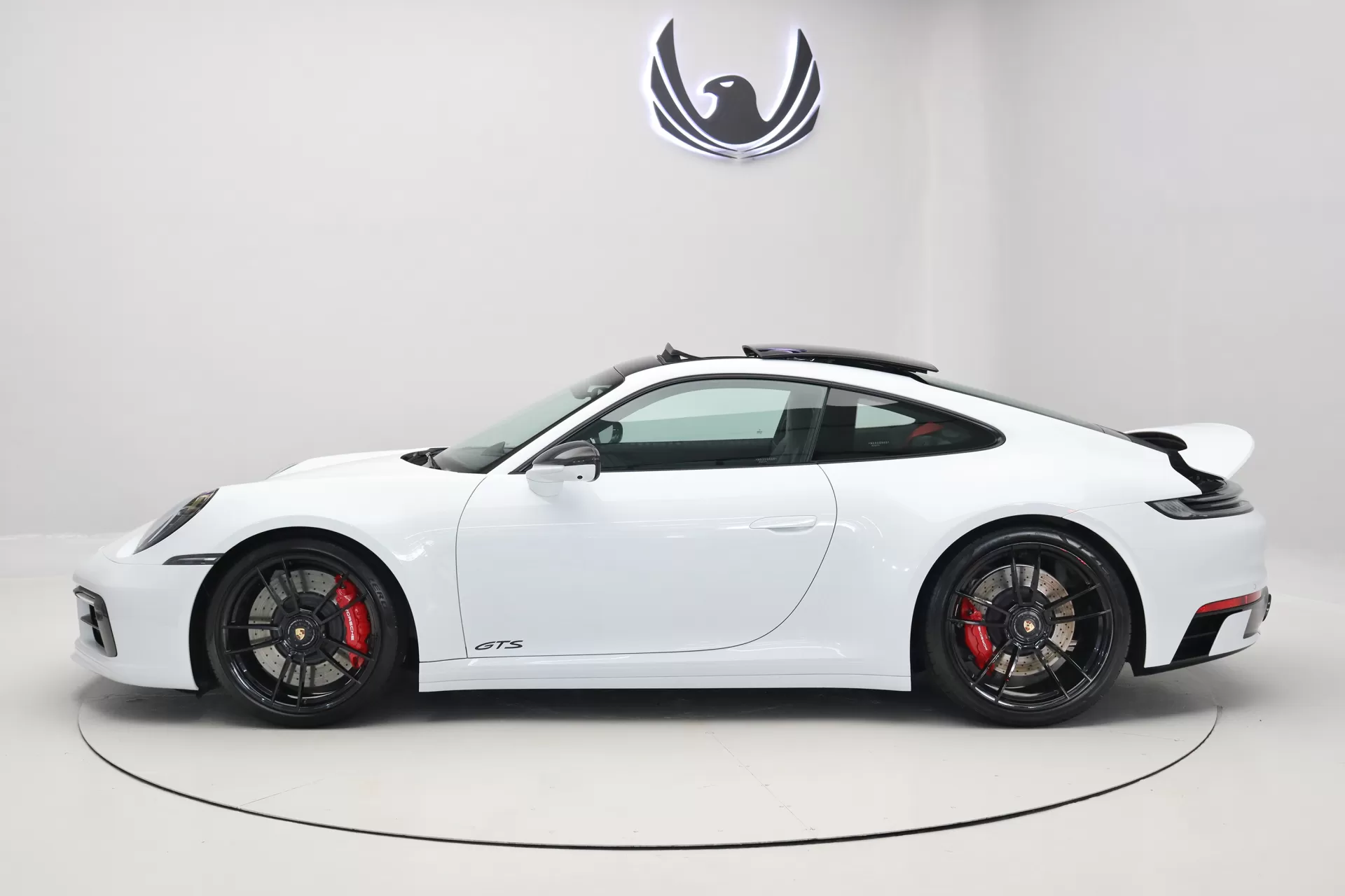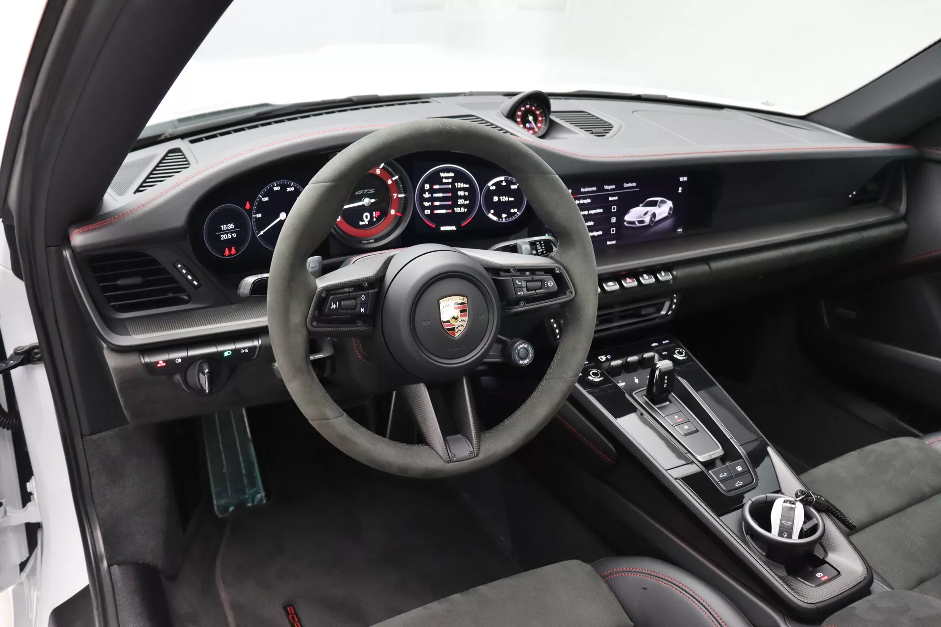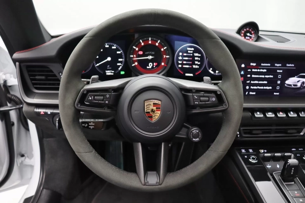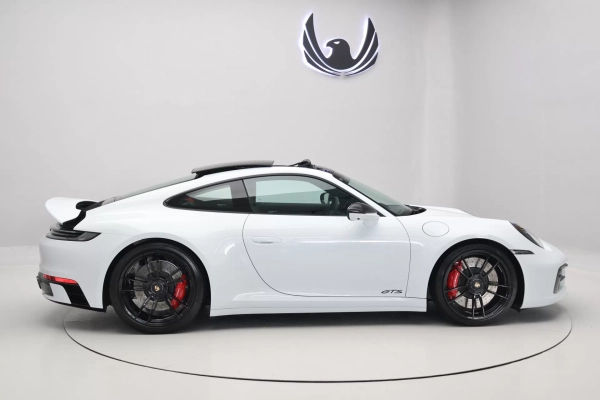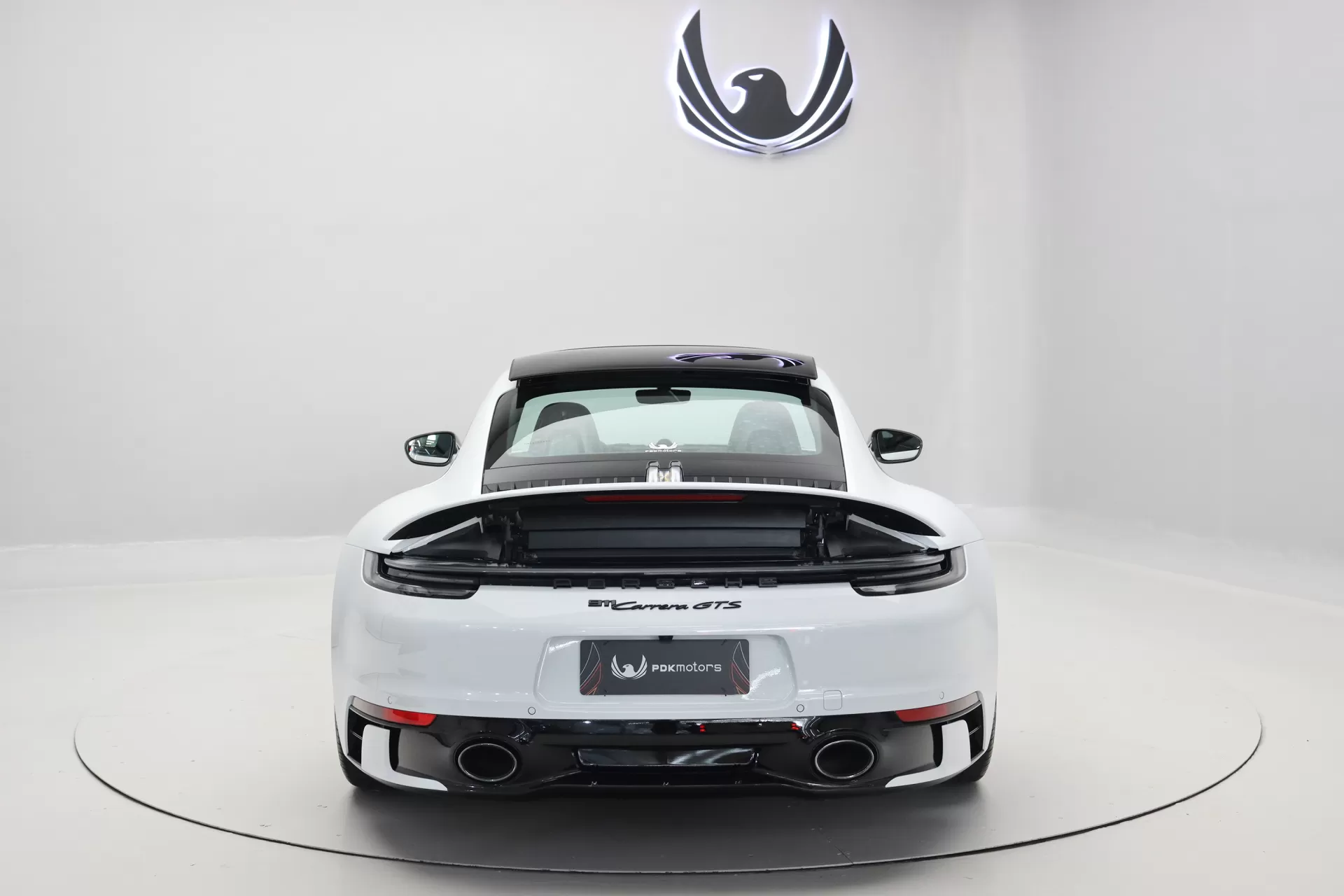 PPF Frontal, última revisão feito na Concessionária em Julho de 2025, configurado na cor Branco com interior em Couro e Race-Tex em Preto, costuras e cintos em Vermelho, bordado GTS nos encostos de cabeça, volante Sport GT em Race-Tex e carbono com função aquecimento, bancos de 18 vias com memória, teto solar em vidro, acabamento interno em carbono, câmera 360º, Sport Chrono Package, cronômetro e conta-giros em vermelho, soleira em carbono iluminado, escapamento esportivo com seletor, chave na cor do carro, sistema de som Bose, retrovisores em carbono, rodas Aro 20’/21’ de Cubo Rápido em Preto Brilhante, pinças de freio em Vermelho, em exposição no nosso showroom.
