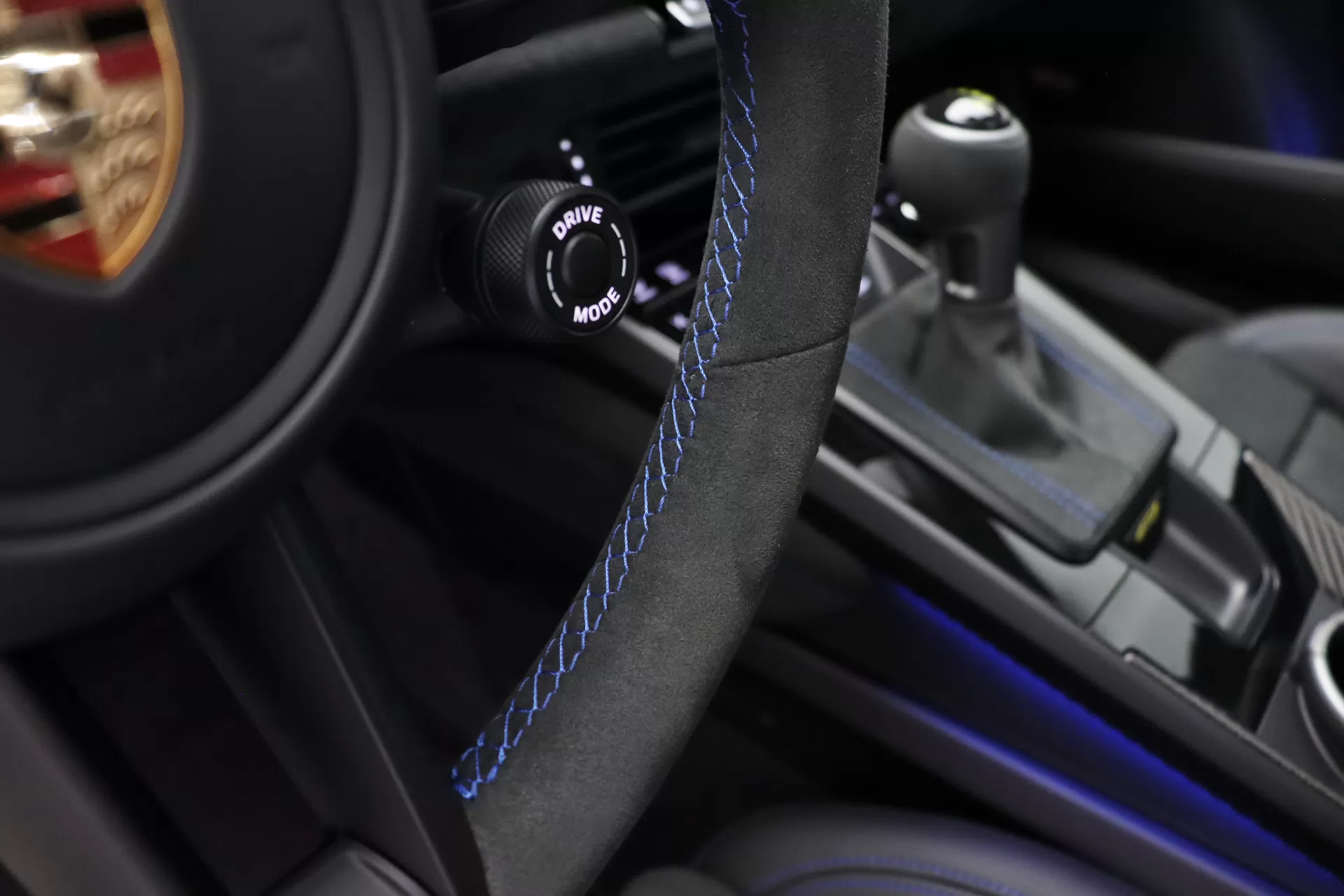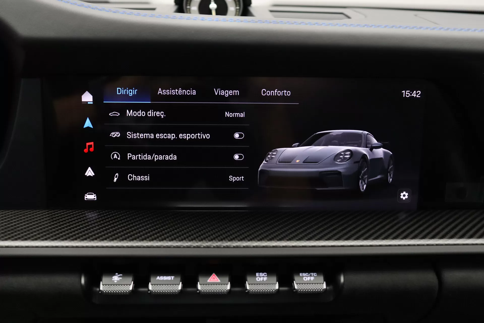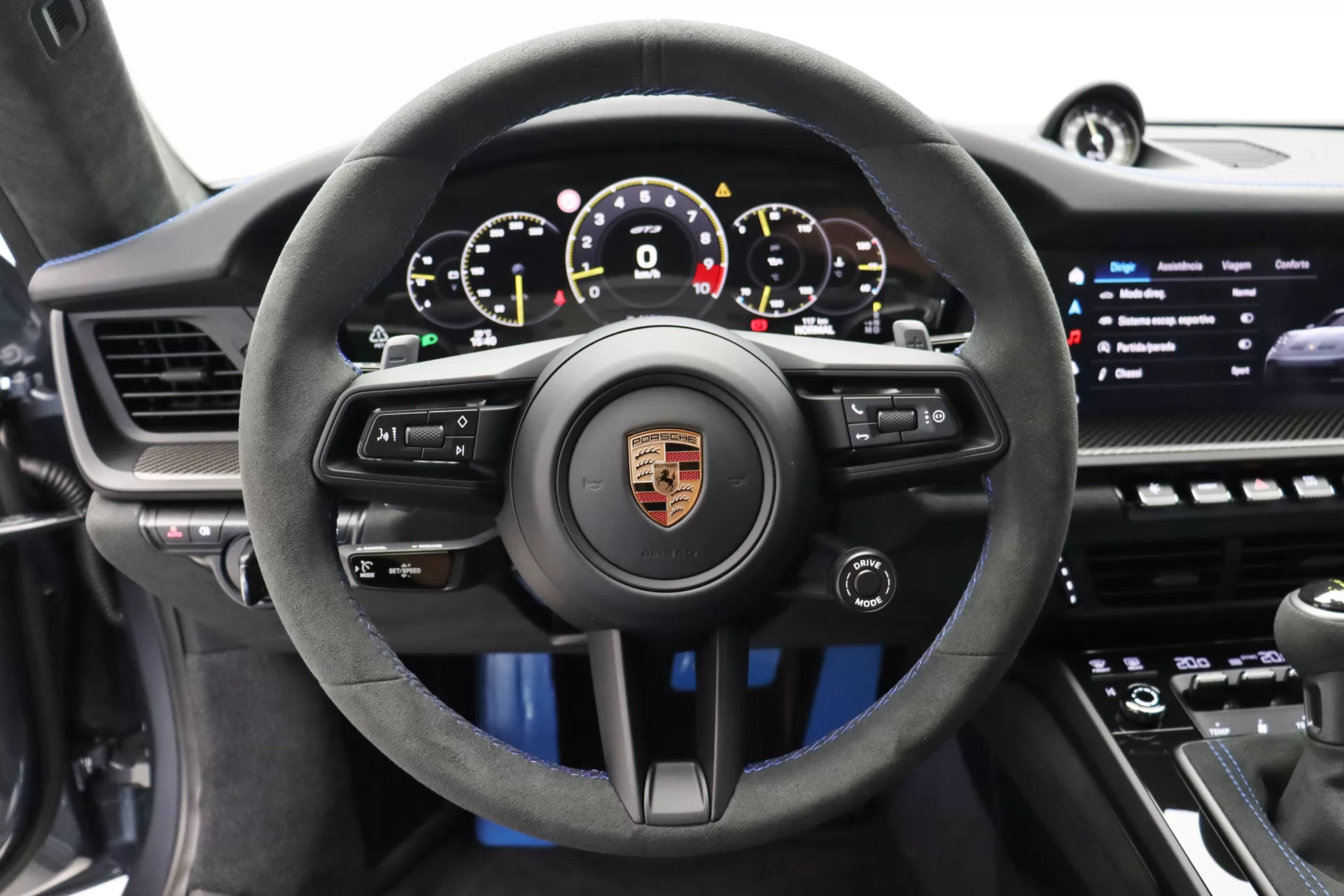 Apenas 117km, configurado na cor Vanadium Grey Metallic com interior em Couro e Race-Tex em Preto, costuras e cintos em Shark Blue, volante em Race-Tex, bancos de 18 vias, acabamento interno em carbono, projeção nas portas com logotipo “Born in Flatch”, retrovisores em carbono, faróis em LED HD Matrix, lanterna traseira exclusive, Sport Chrono Package, lift system, iluminação ambiente, sistema de som Bose, porta objetos em Race-Tex com escudo Porsche, bordado GT3 nos encostos de cabeça, pedaleiras em alumínio, soleira iluminada em carbono fosco, rodas Aro 20’/21’ forjadas pintadas de Dark Silver, freios de carbono cerâmica com pinças em amarelo, em exposição no nosso showroom.