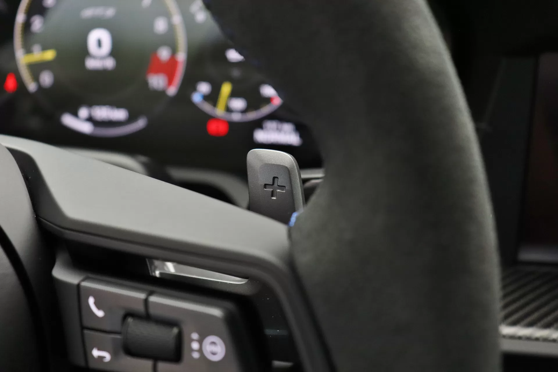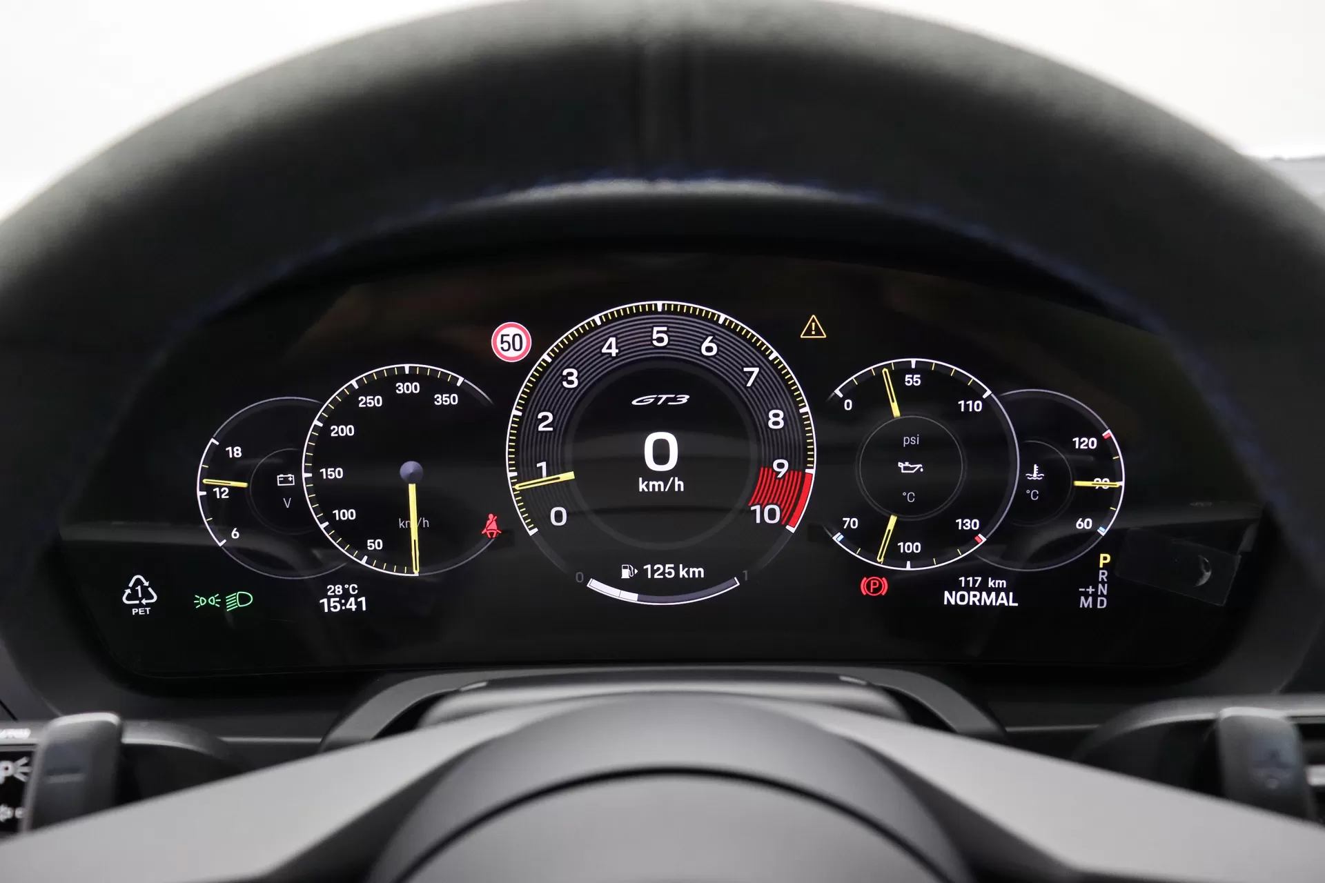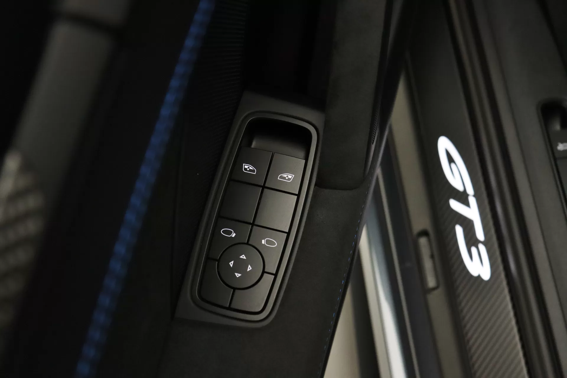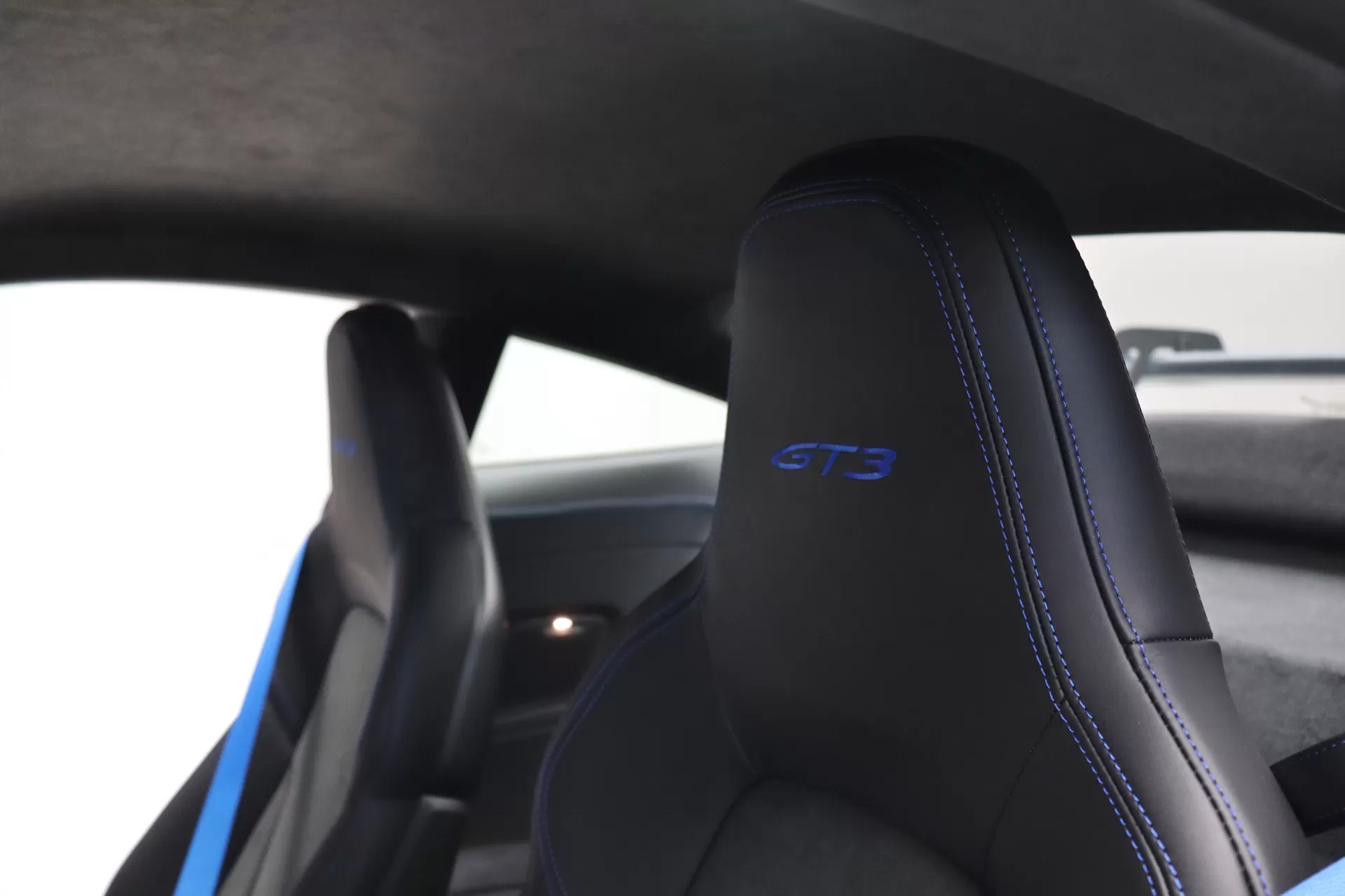 Apenas 117km, configurado na cor Vanadium Grey Metallic com interior em Couro e Race-Tex em Preto, costuras e cintos em Shark Blue, volante em Race-Tex, bancos de 18 vias, acabamento interno em carbono, projeção nas portas com logotipo “Born in Flatch”, retrovisores em carbono, faróis em LED HD Matrix, lanterna traseira exclusive, Sport Chrono Package, lift system, iluminação ambiente, sistema de som Bose, porta objetos em Race-Tex com escudo Porsche, bordado GT3 nos encostos de cabeça, pedaleiras em alumínio, soleira iluminada em carbono fosco, rodas Aro 20’/21’ forjadas pintadas de Dark Silver, freios de carbono cerâmica com pinças em amarelo, em exposição no nosso showroom.
