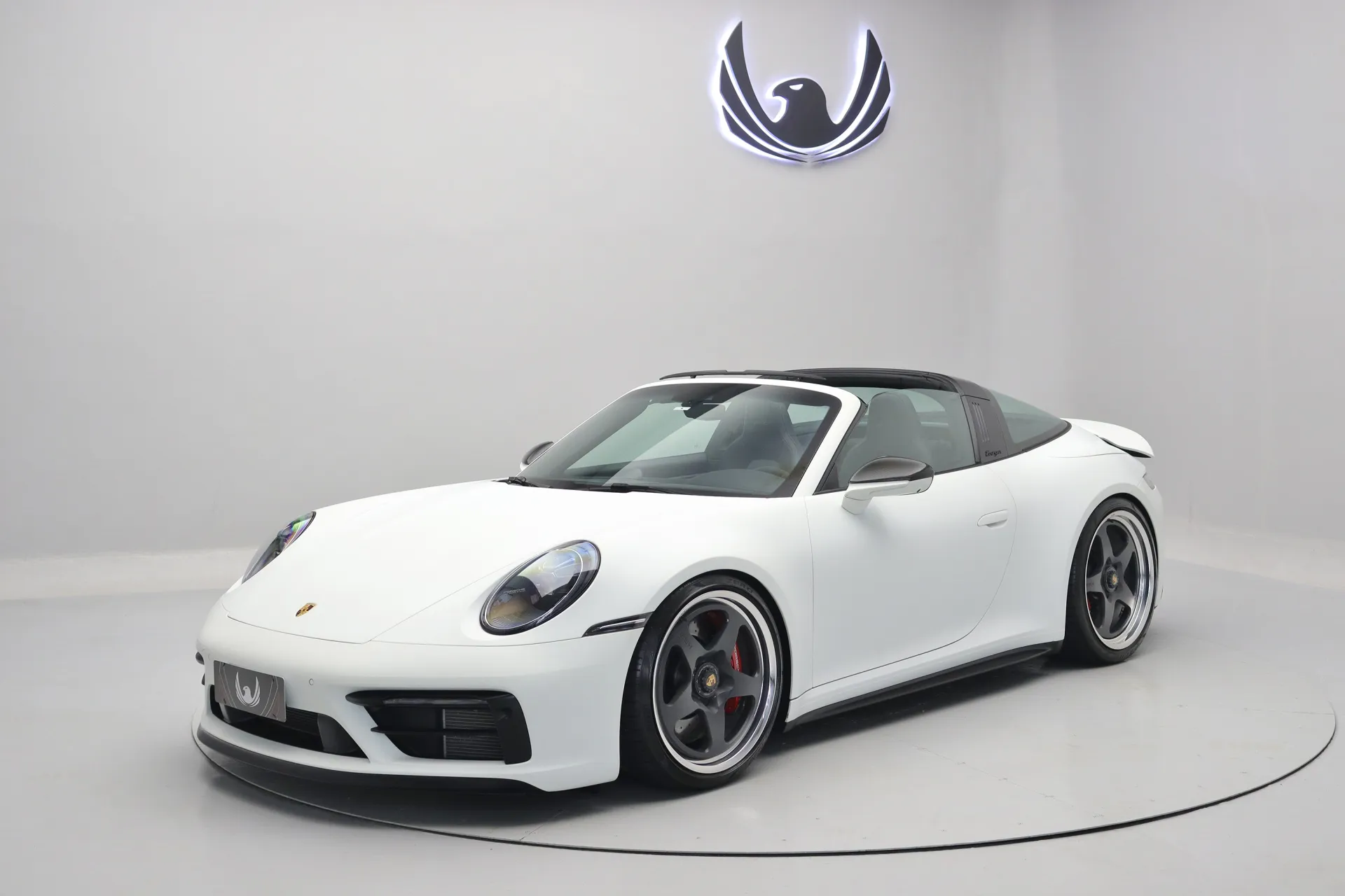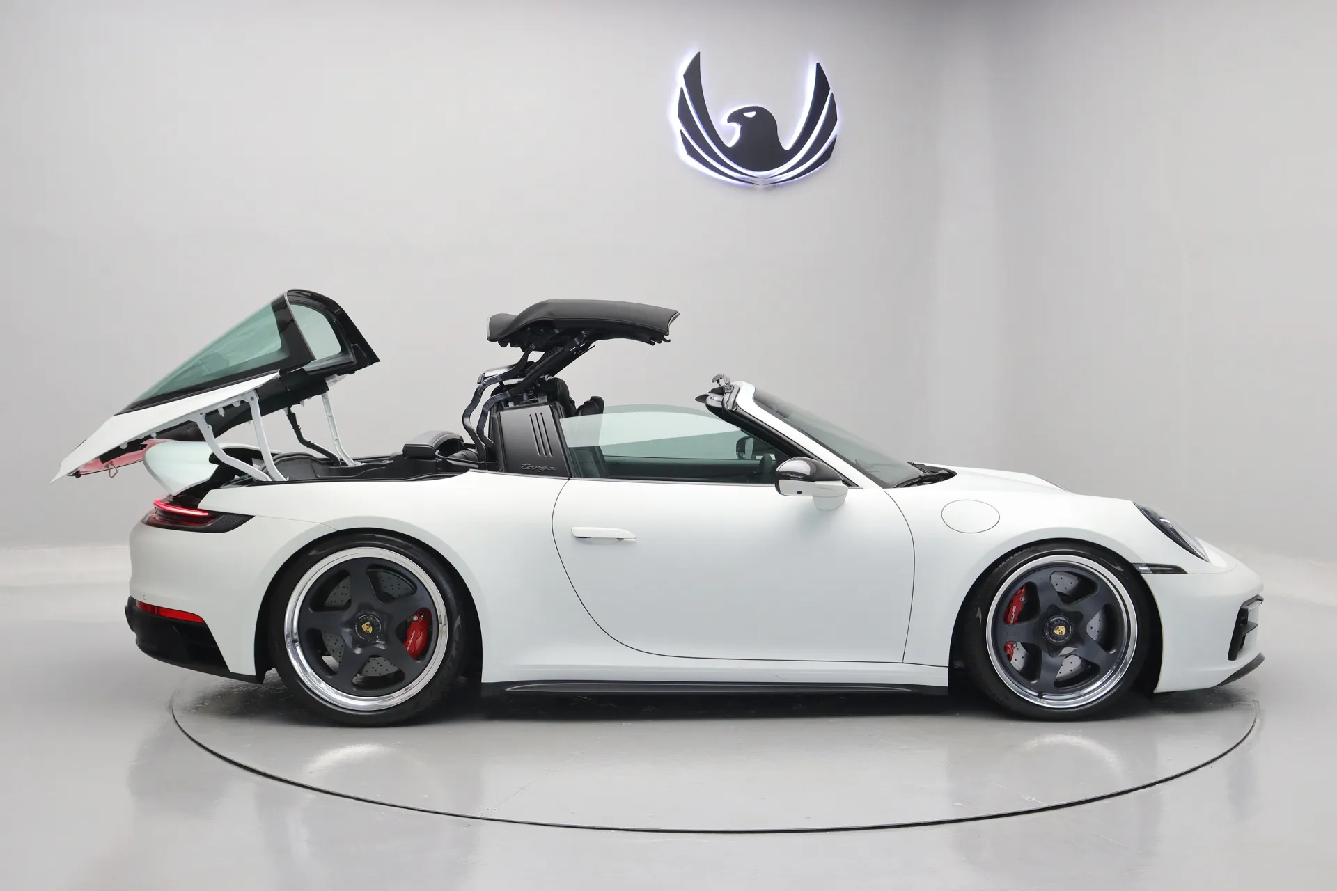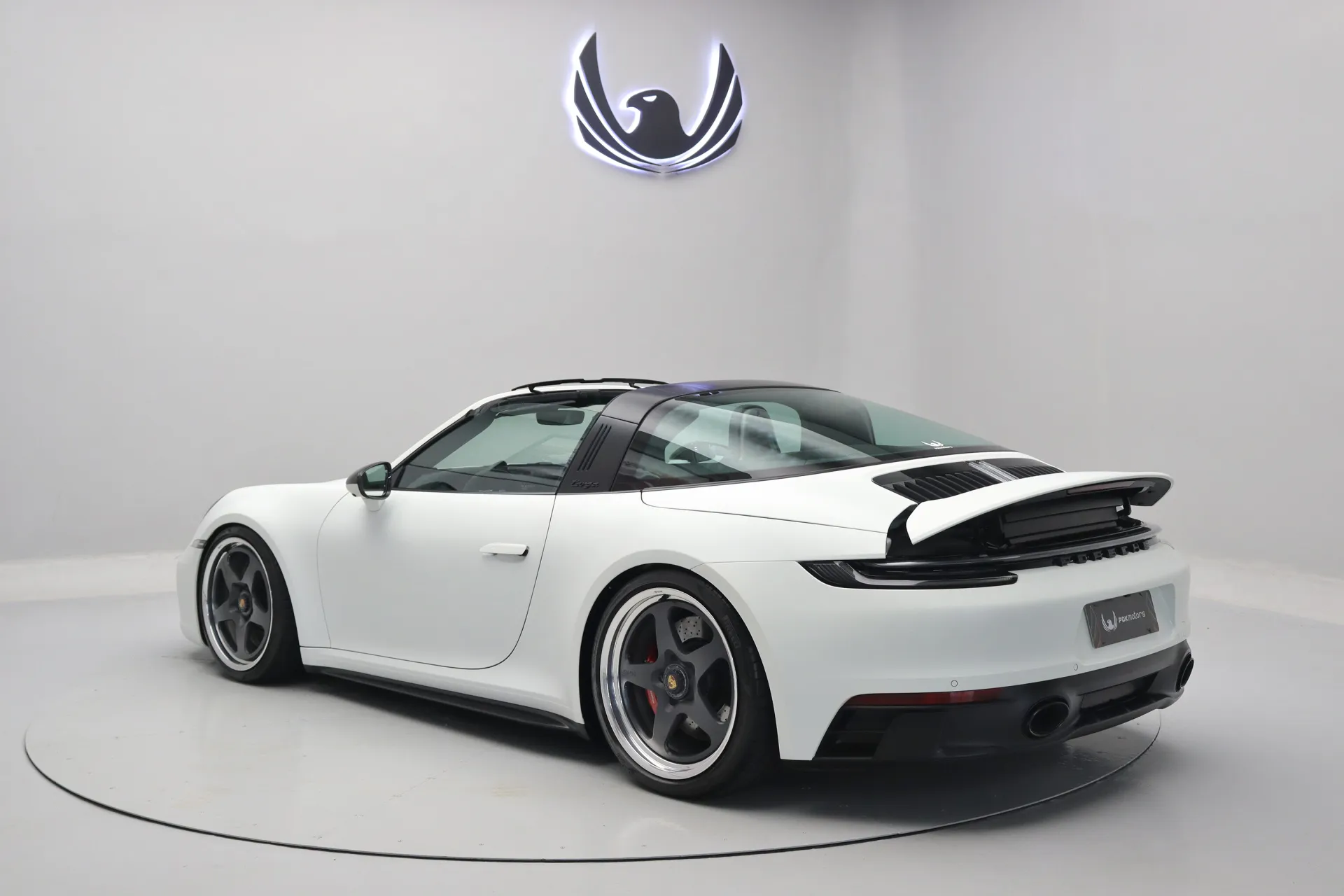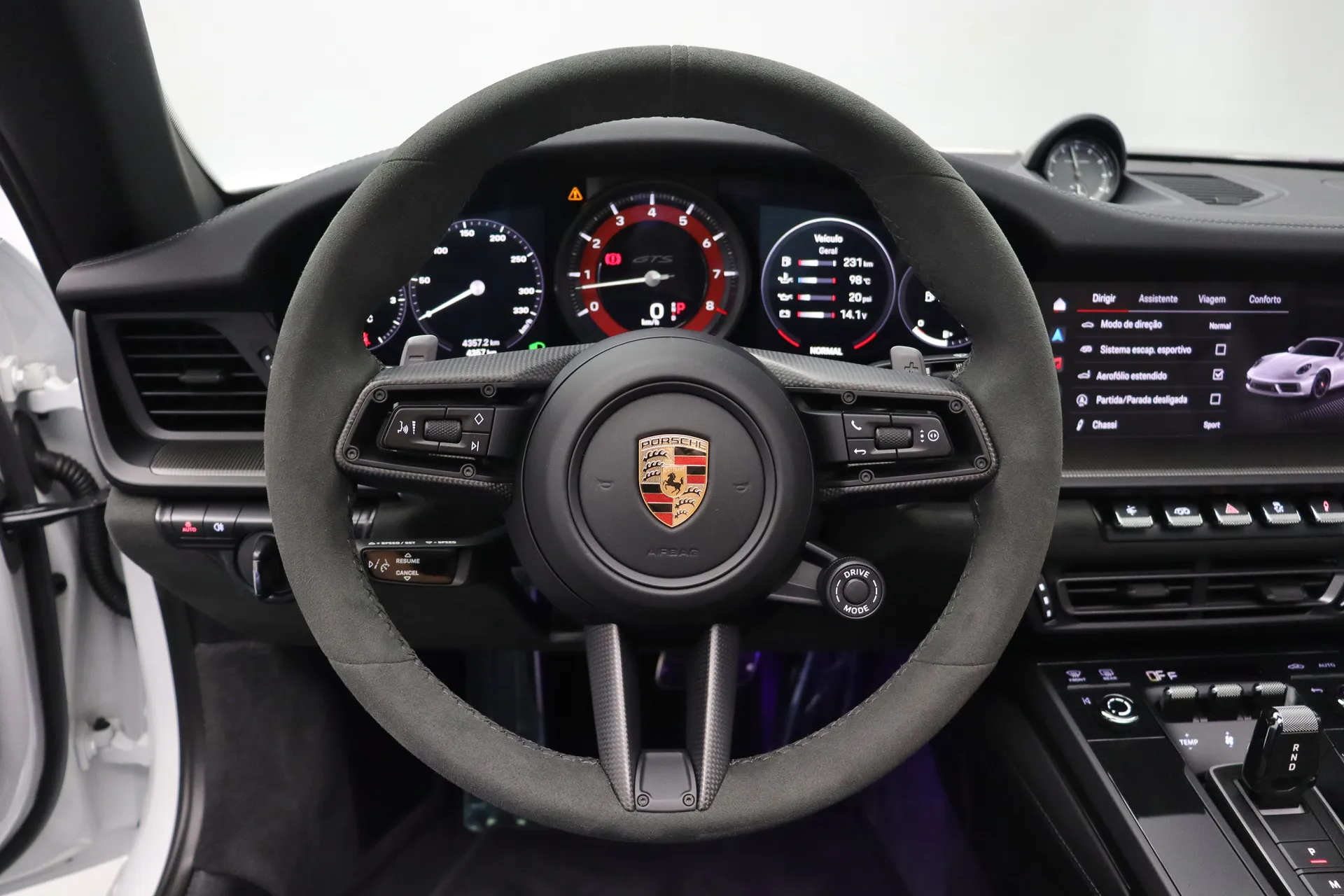 Apenas 4.460km, full PPF Fosco, molas Eibach, escapamento original com remap e downpipe, rodas aro 20’/21’ HRE 527 FMR de cubo rápido com pinças em vermelho, configurado na cor Branco com interior em Couro e Race-Tex em Preto, capota em Preto, volante Sport GT em Race-Tex e carbono com função aquecimento, bancos de 18 vias com memória, Sport Chrono Package, relógio Porsche Design no painel, conta-giros em vermelho, lift system, câmera 360º, soleira iluminada em carbono, retrovisores em carbono, sistema de som Bose, Android Auto e Apple CarPlay, iluminação ambiente, chave na cor do carro, faróis em LED Matrix, acabamento interno em carbono, abertura remota do teto targa, eixo traseiro esterçante, em exposição no nosso showroom.