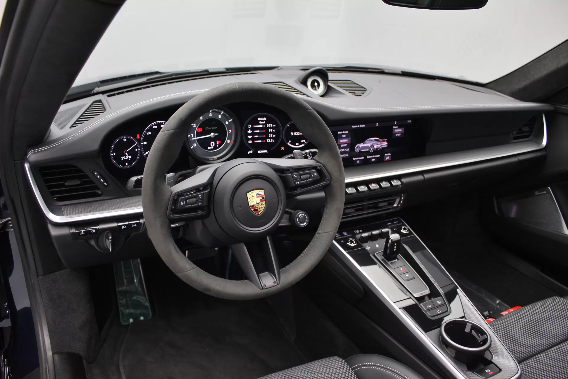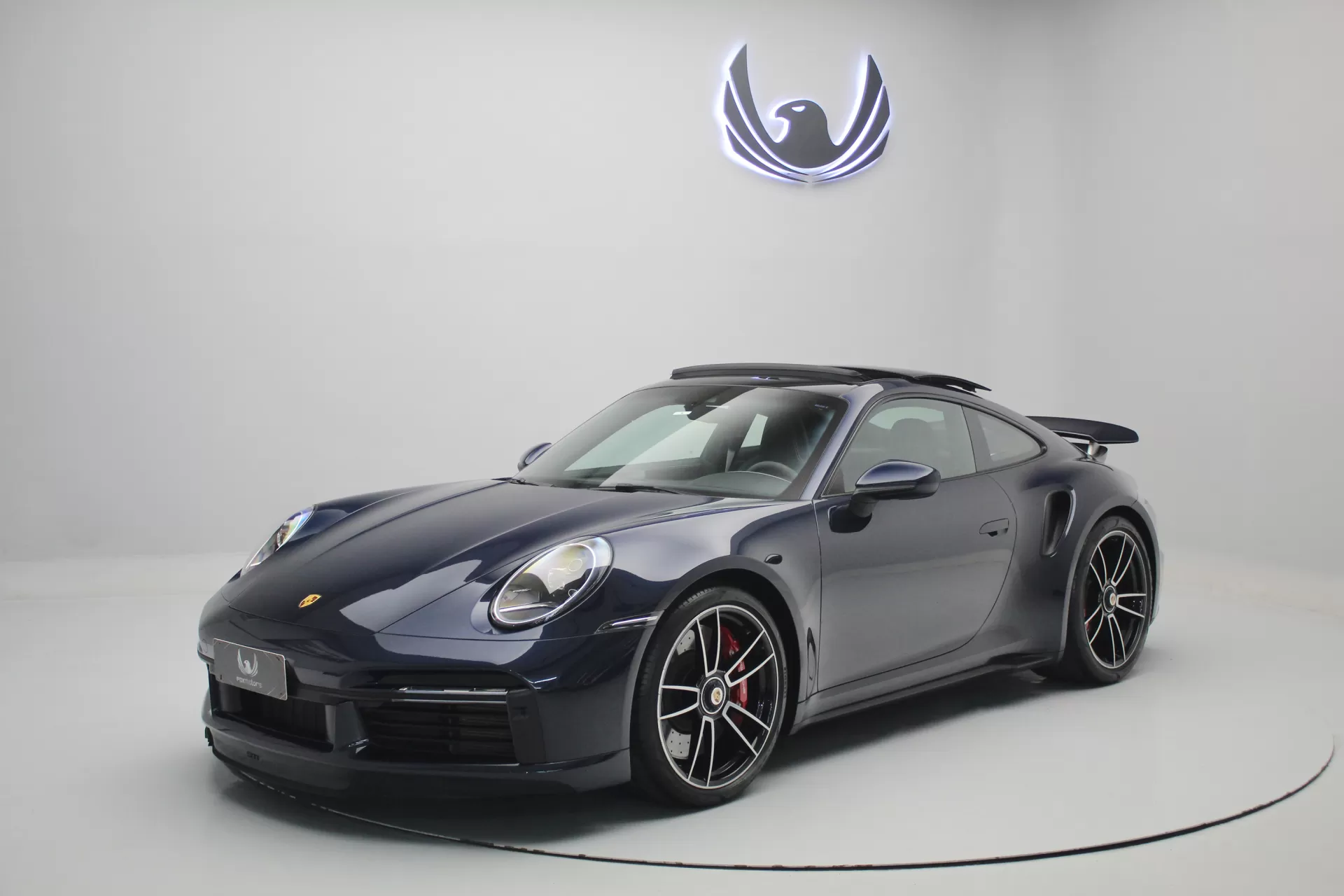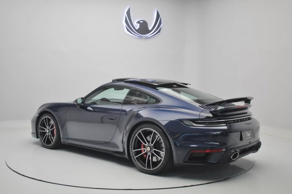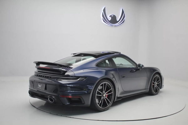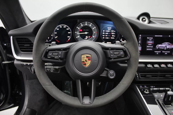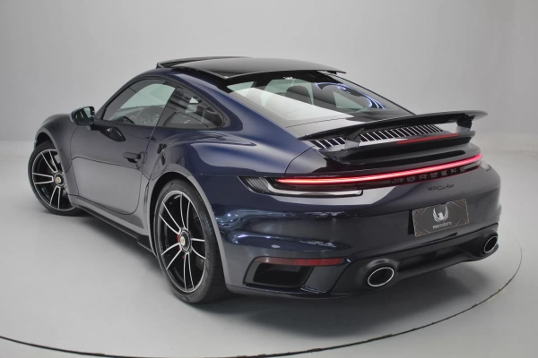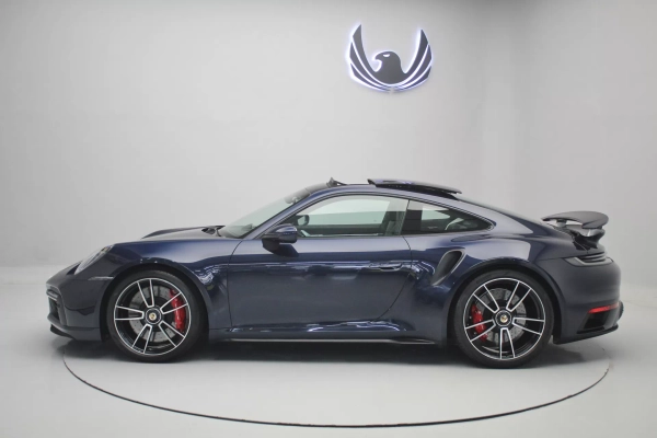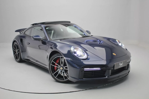 PPF Frontal + Clearplex no Para-brisa, configurado na cor Azul Noite Metálico com interior em Couro e Sport-Tex em Preto, cintos e costuras em Crayon, bancos de 18 vias com memória, teto solar em vidro, volante Sport GT em Race-Tex, sistema de som Burmester, Apple CarPlay, Sport Chrono Package, lift system, escapamento esportivo com seletor, ponteiras em cromado, escudo Porsche nos encostos de cabeça, logotipo Turbo no porta objetos, lanterna traseira Exclusive, direção assistida plus, suspensão Sport, rodas Aro 20’/21’ Turbo S, pinças de freio em Vermelho, em exposição no nosso showroom.