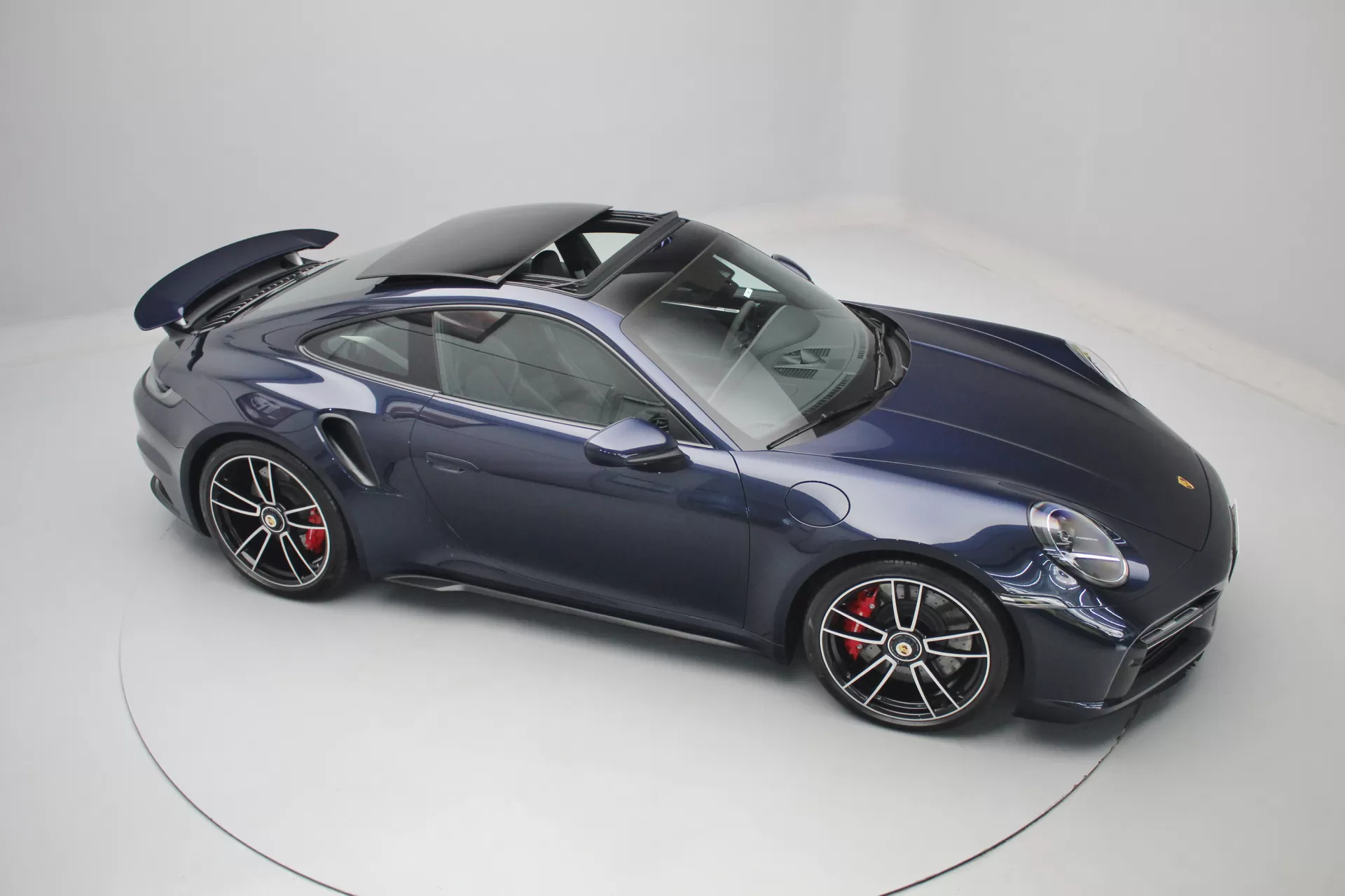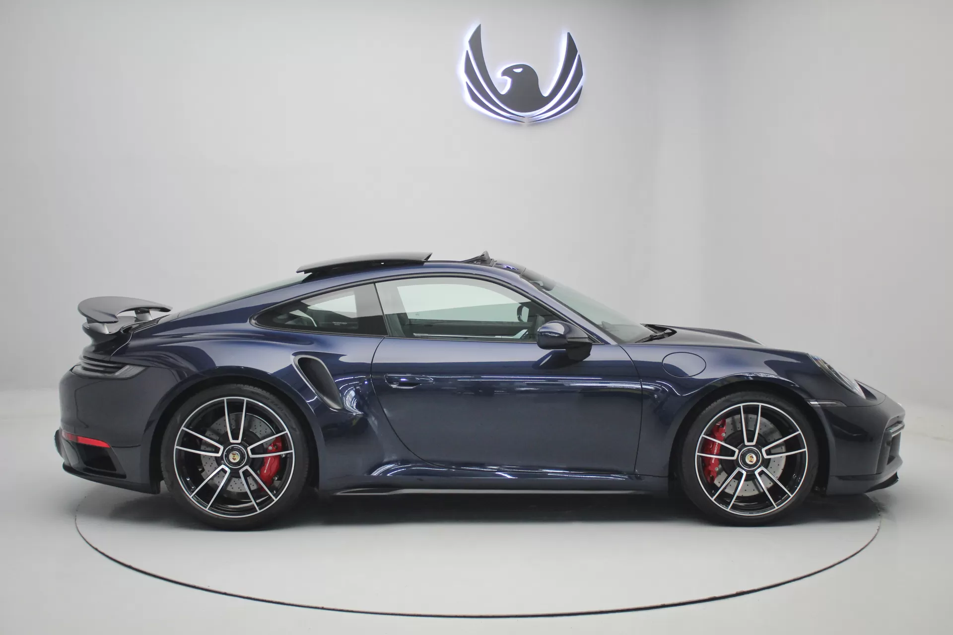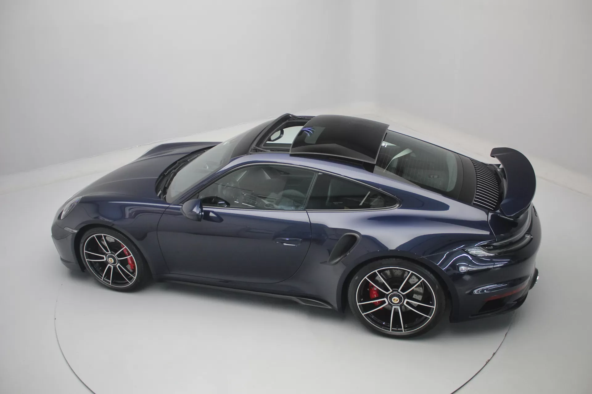 PPF Frontal + Clearplex no Para-brisa, configurado na cor Azul Noite Metálico com interior em Couro e Sport-Tex em Preto, cintos e costuras em Crayon, bancos de 18 vias com memória, teto solar em vidro, volante Sport GT em Race-Tex, sistema de som Burmester, Apple CarPlay, Sport Chrono Package, lift system, escapamento esportivo com seletor, ponteiras em cromado, escudo Porsche nos encostos de cabeça, logotipo Turbo no porta objetos, lanterna traseira Exclusive, direção assistida plus, suspensão Sport, rodas Aro 20’/21’ Turbo S, pinças de freio em Vermelho, em exposição no nosso showroom.