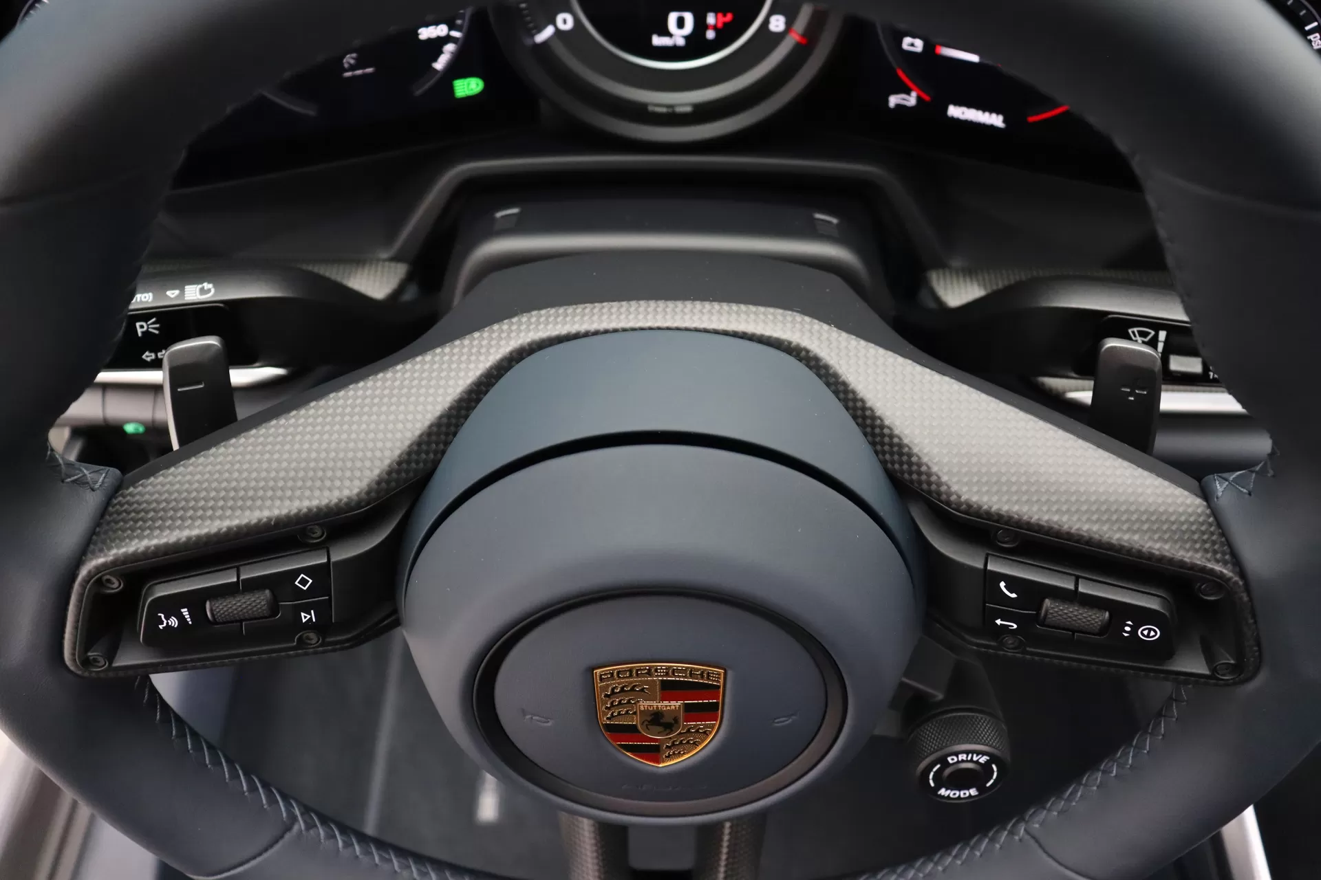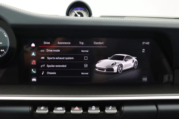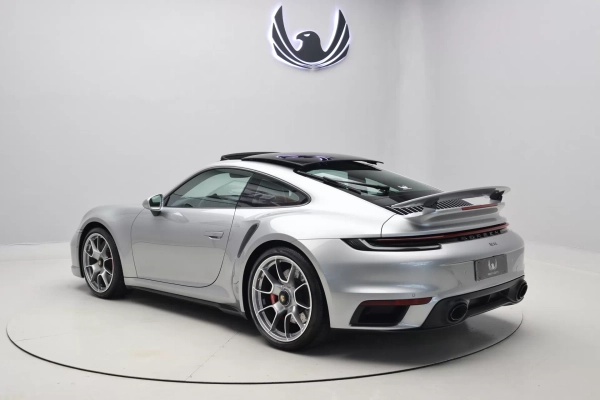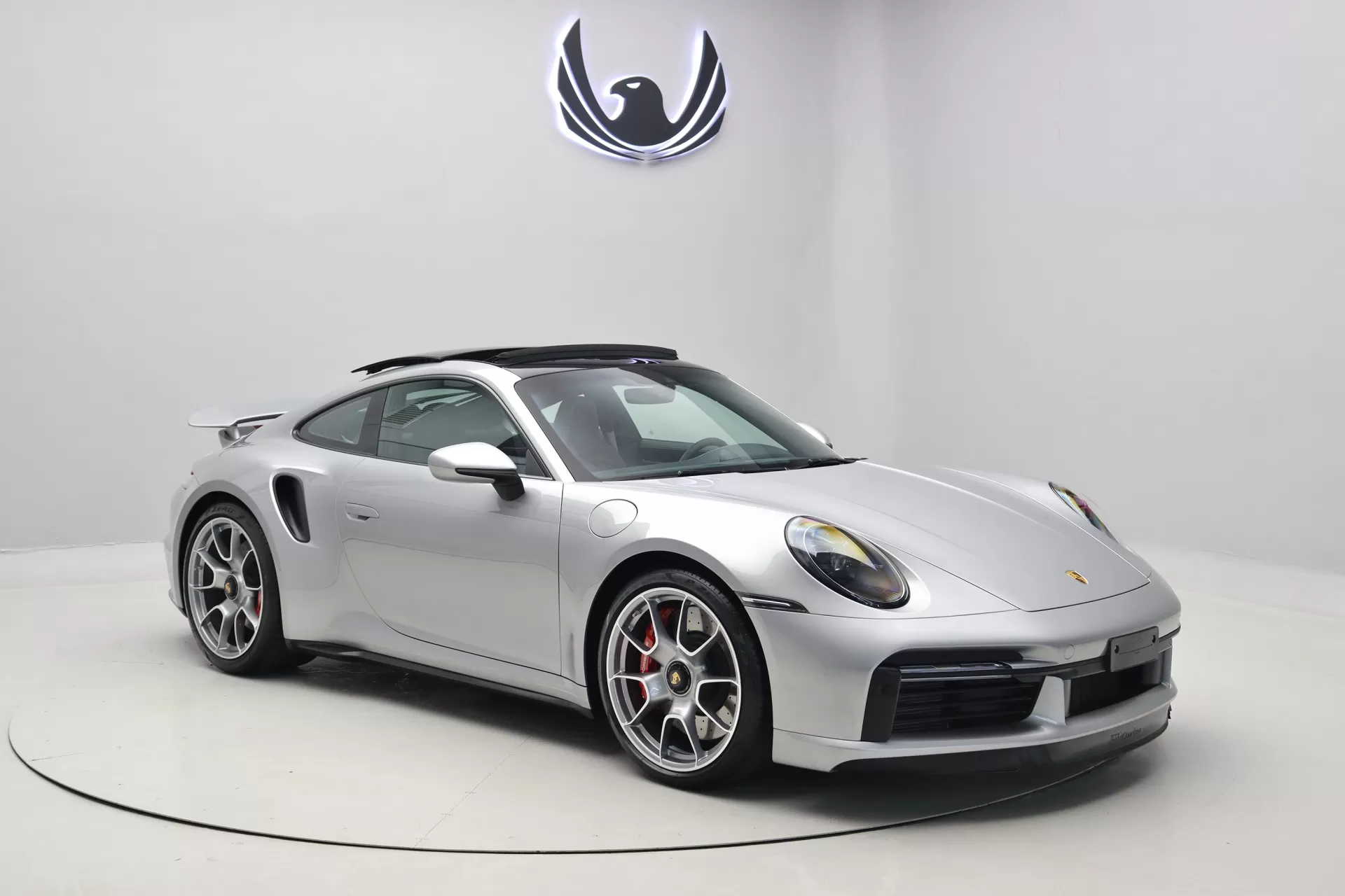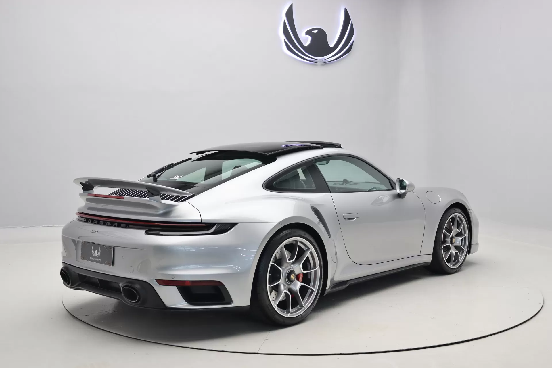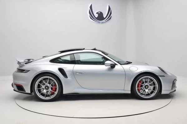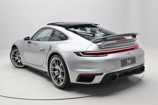 Apenas 1.300km, full PPF + Clearplex no para-brisa, configurado na cor Prata GT com interior em Couro Total Azul Grafite, teto solar em vidro, volante Sport GT aquecido em couro com base em fibra de carbono, cintos de segurança em Prata, escudo Porsche no porta objetos, logotipo Turbo nos encostos de cabeça, acabamento interno em fibra de carbono fosco, Sport Chrono Package, cronômetro e conta giros em Cinza, lift system, bancos de 18 vias com memória e aquecimento, faróis em LED Matrix com PDLS Plus, limpador traseiro, soleira iluminada em carbono fosco, Android Auto e Apple CarPlay, sistema de som Bose, revestimento do teto e colunas em Race-Tex, alerta de ponto cego, rodas aro 20’/21’ Turbo S Exclusive Design com pinças de freio em Vermelho, em exposição no nosso showroom.