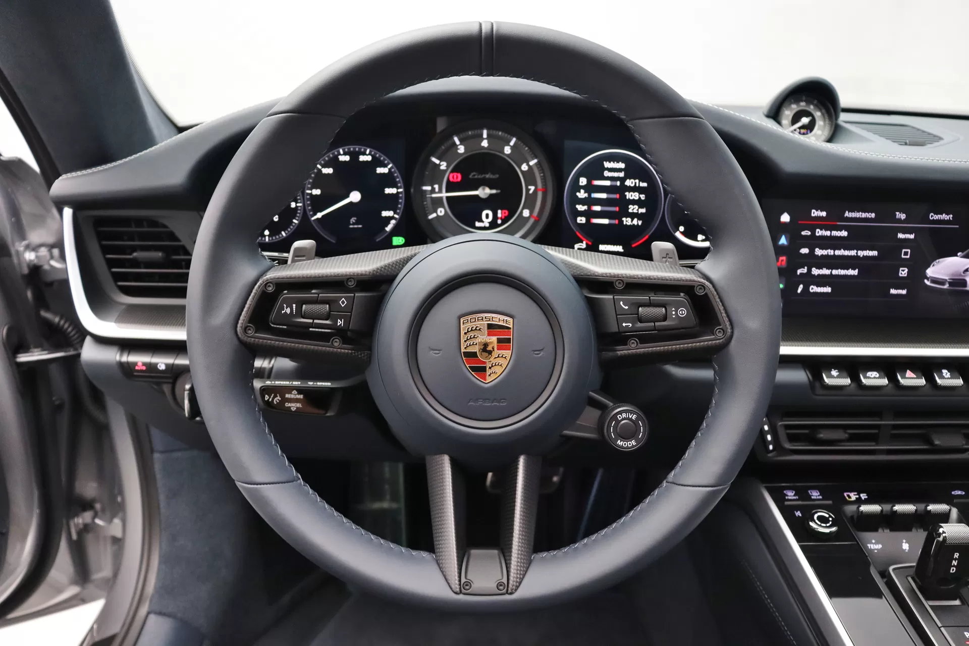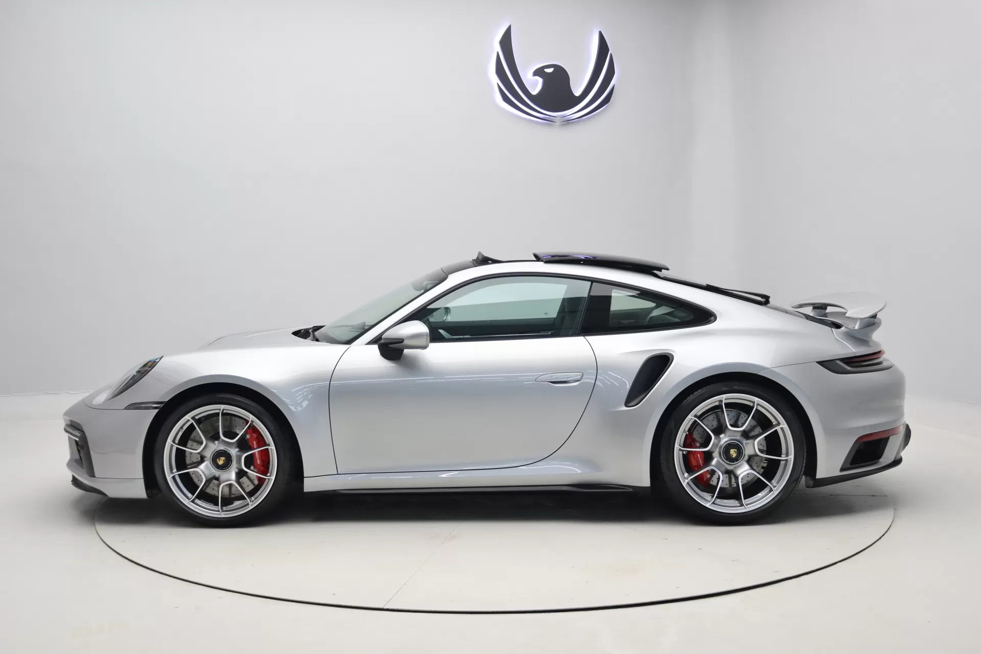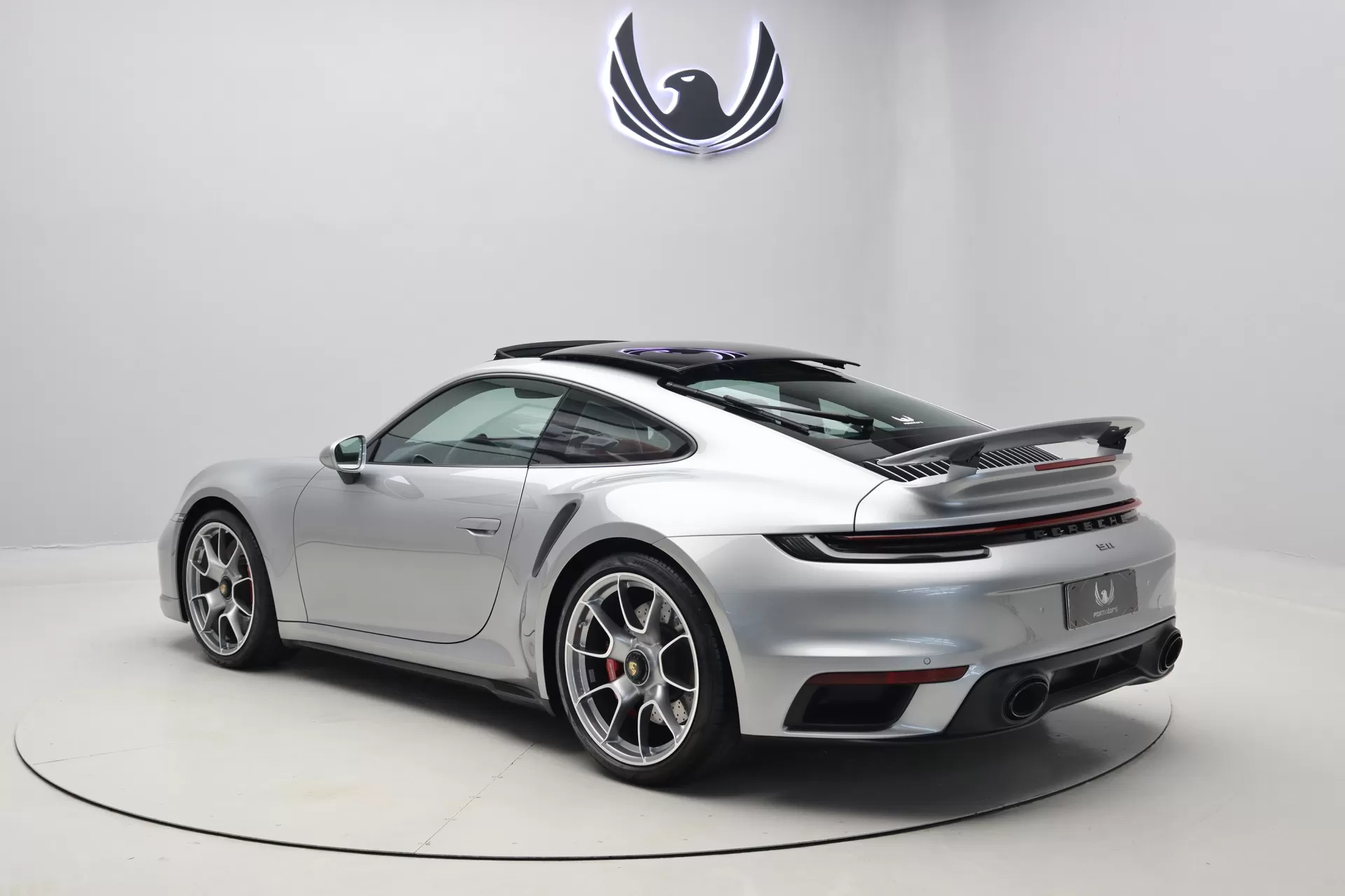 Apenas 1.300km, full PPF + Clearplex no para-brisa, configurado na cor Prata GT com interior em Couro Total Azul Grafite, teto solar em vidro, volante Sport GT aquecido em couro com base em fibra de carbono, cintos de segurança em Prata, escudo Porsche no porta objetos, logotipo Turbo nos encostos de cabeça, acabamento interno em fibra de carbono fosco, Sport Chrono Package, cronômetro e conta giros em Cinza, lift system, bancos de 18 vias com memória e aquecimento, faróis em LED Matrix com PDLS Plus, limpador traseiro, soleira iluminada em carbono fosco, Android Auto e Apple CarPlay, sistema de som Bose, revestimento do teto e colunas em Race-Tex, alerta de ponto cego, rodas aro 20’/21’ Turbo S Exclusive Design com pinças de freio em Vermelho, em exposição no nosso showroom.