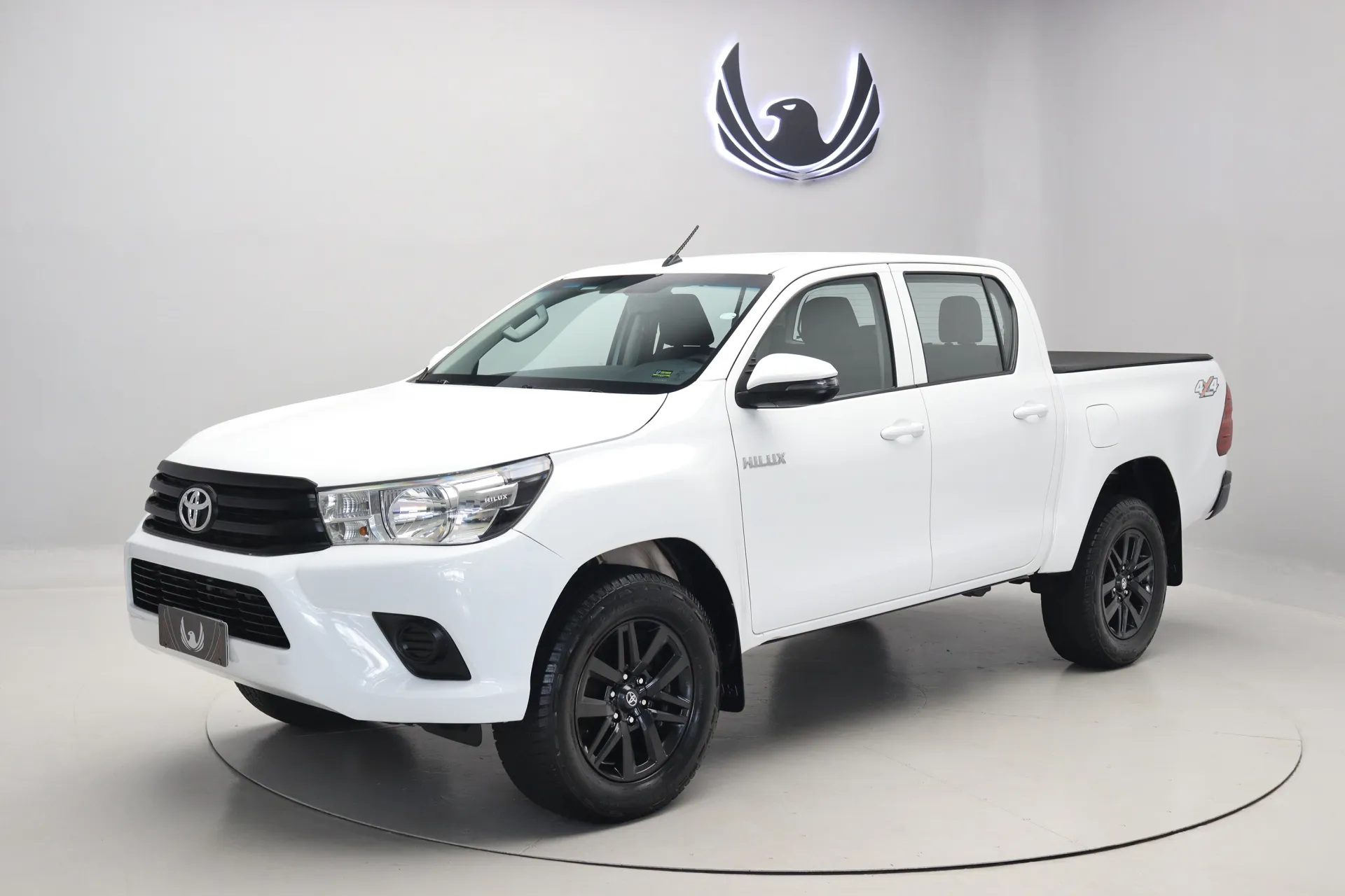 Câmbio manual de 6 marchas, revisada na Toyota, 4 pneus novos, configurado na cor Branco Polar com interior em Tecido Preto/Cinza, volante multifuncional com comando de voz, tapetes em borracha, lona marítima, engate traseiro, bloqueio do diferencial traseiro, duplo porta luvas, multimídia com AM/FM/AUX/USB/BT, relógio digital no painel, Eco e Power Mode, controle de tração, rodas aro 18’ em Preto Acetinado, em exposição no nosso showroom.