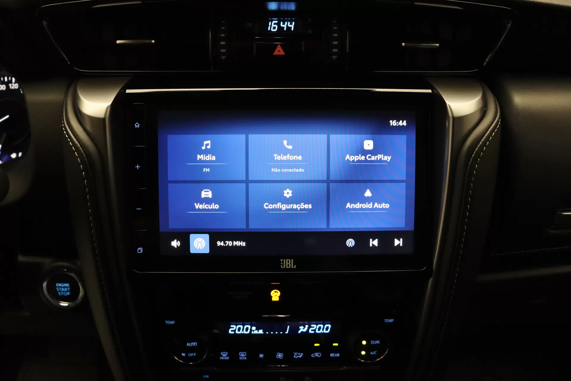 Veiculo 7 Lugares, blindagem Nível III-A MTB com vidros Crystalgard Safemax, configurado na cor Preto com interior em Couro Preto, volante multifuncional com paddle shifts, bancos de ajuste elétrico com ventilação, Android Auto e Apple CarPlay, sistema de som JBL, alerta de saída de faixa, alerta de ponto cego, alerta de colisão frontal, detecção de fadiga, controle de descida de rampa, modos Eco, Normal e Sport, tapetes de borracha, acionamento remoto do porta malas, rodas aro 18’ em Cinza, em exposição no nosso showroom.