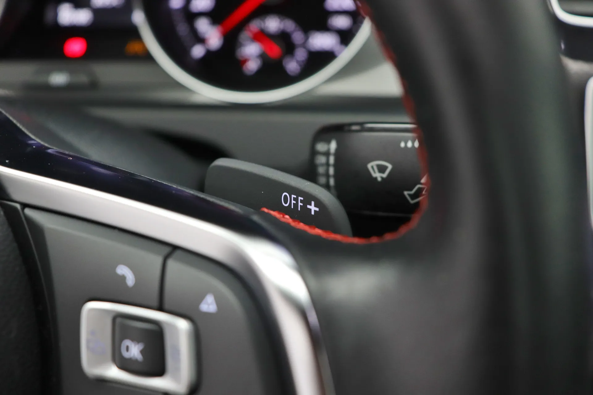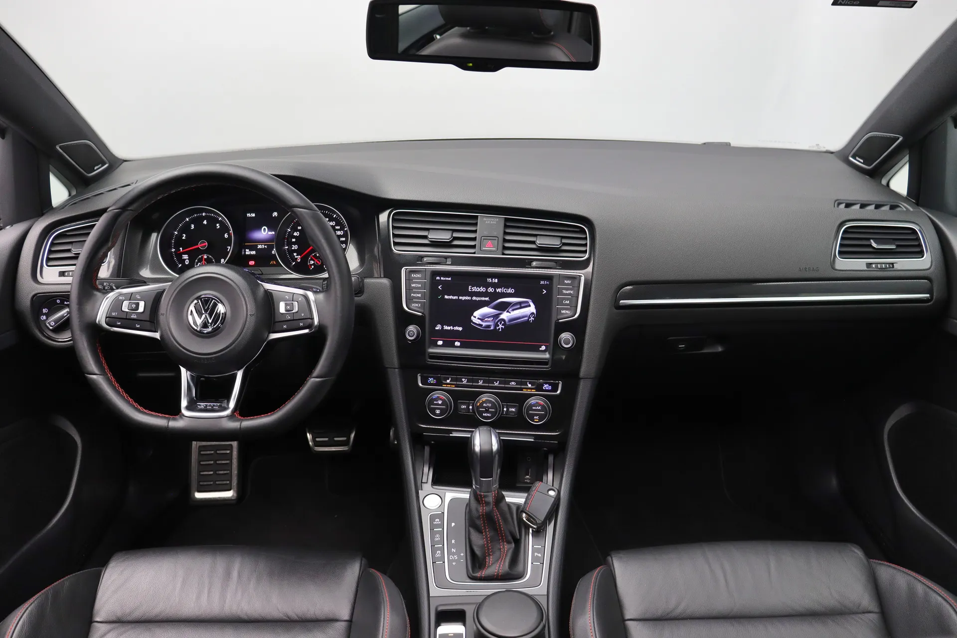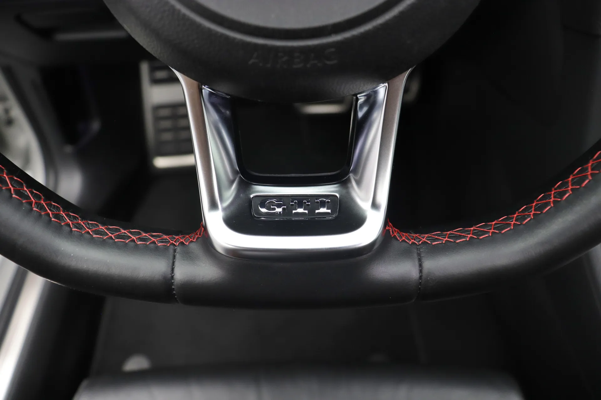 Última revisão feito na concessionária em Abril de 2026, configurado na cor Prata Tungstênio com interior em Couro Preto e costuras em Vermelho, teto solar em vidro, volante GTI em couro com paddle shifts, bancos dianteiros com aquecimento, pedaleiras em aluminio, sistema de som Dynaudio, ACC controle de distância, Front Assist, Lane Assist, identificação de sinais de trânsito, ar condicionado digital dual zone, retrovisores com desembaçador, partida por botão, Start & Stop, driving mode selection, Park Pilot, freio de estacionamento eletrônico, Auto Hold, rodas aro 18’ diamantadas, pinças de freio em vermelho, em exposição no nosso showroom.