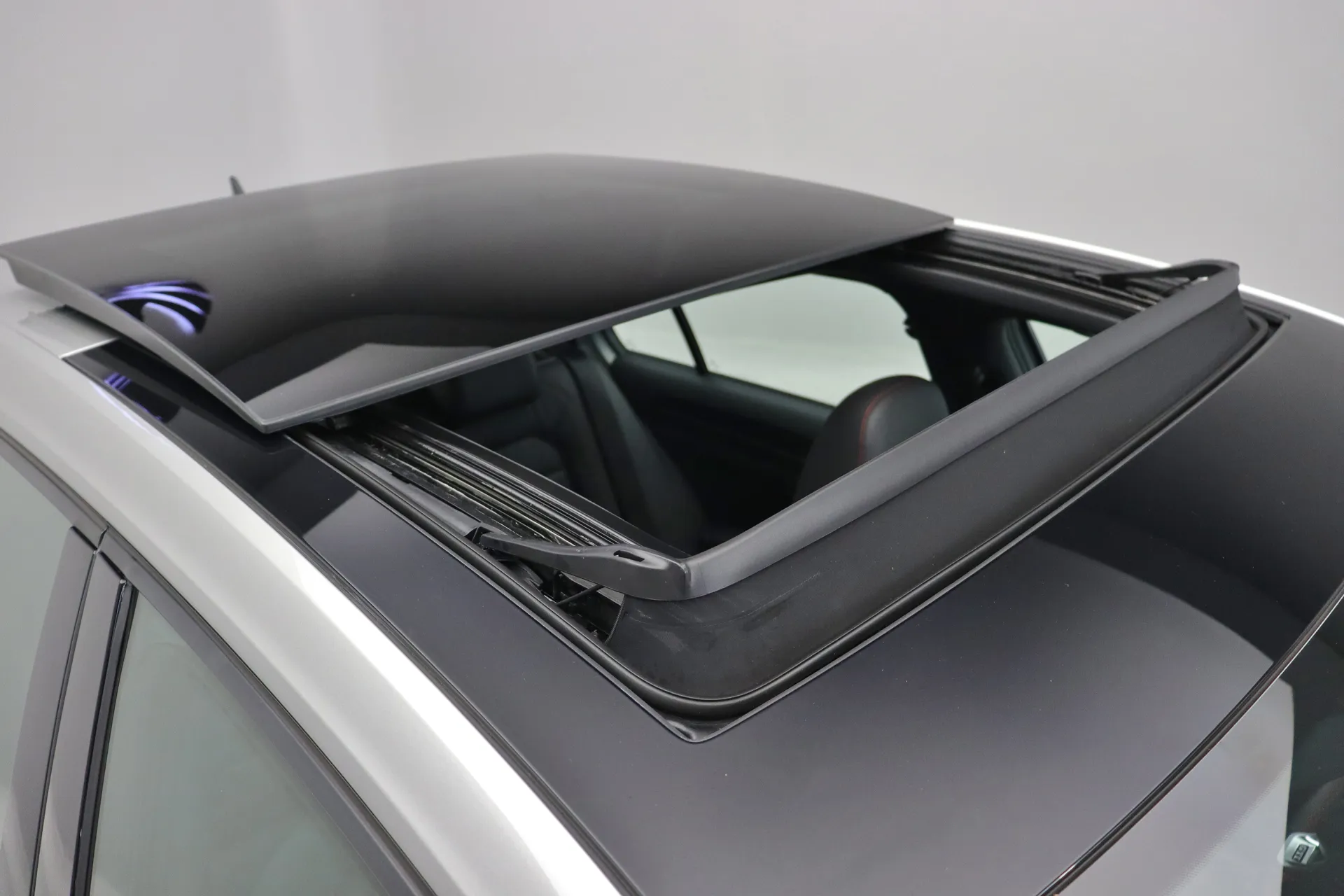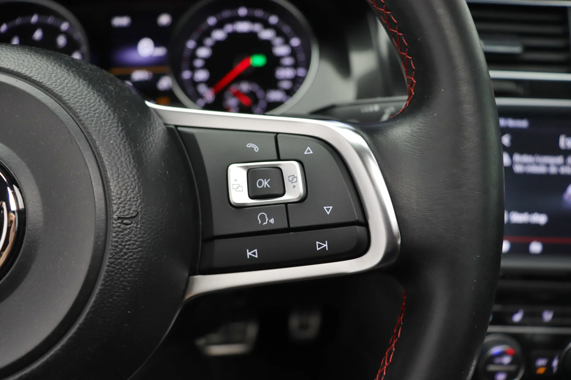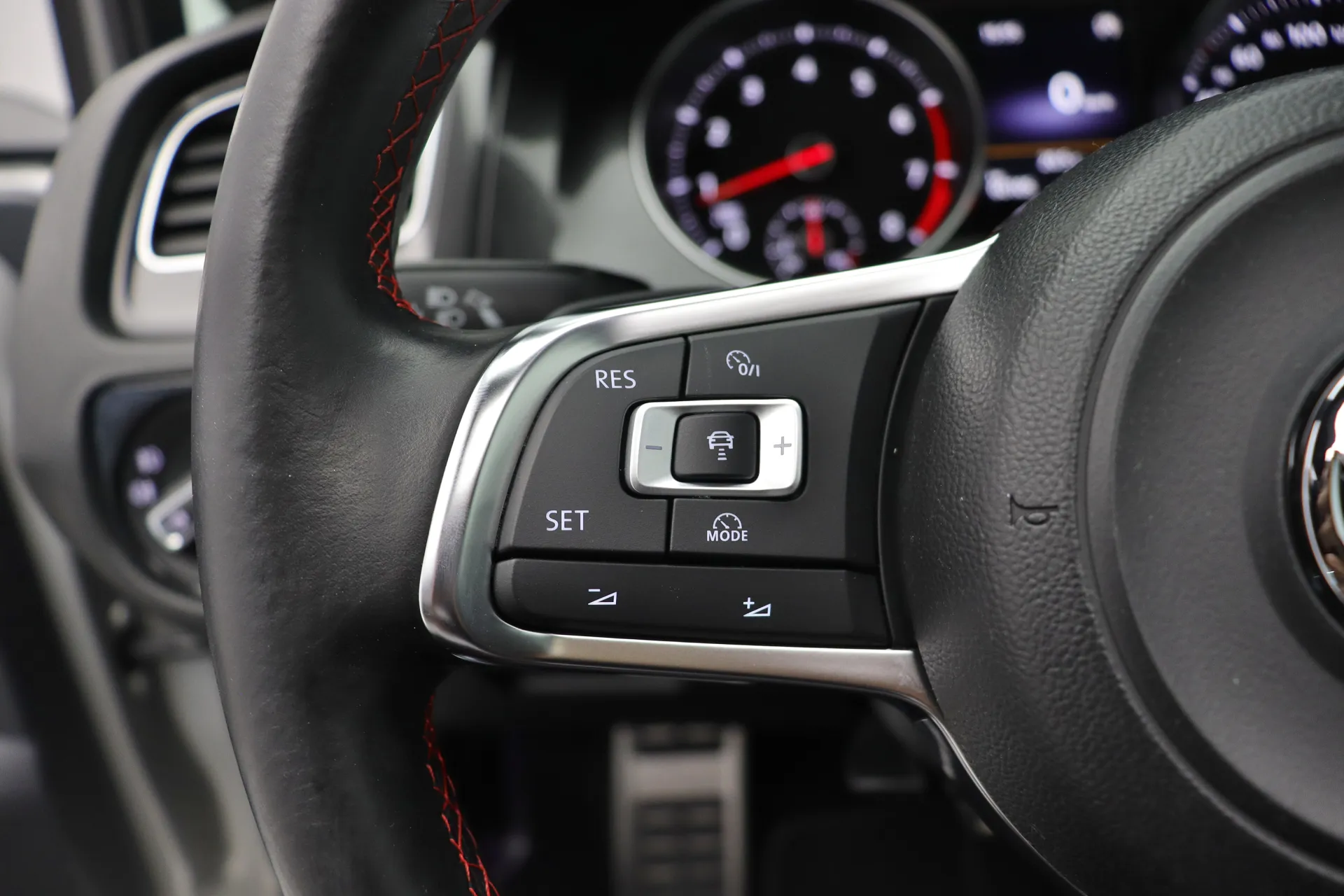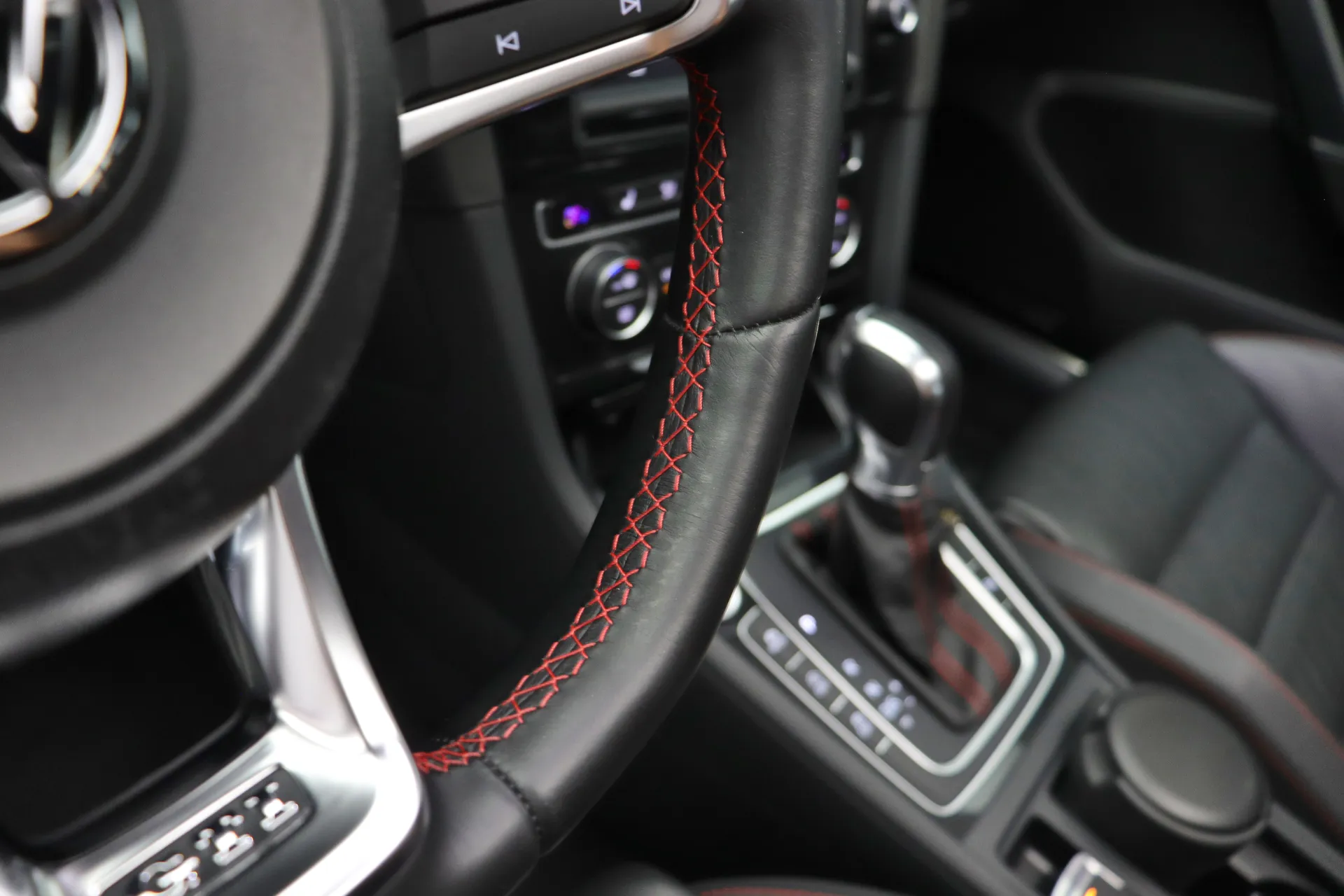 Última revisão feito na concessionária em Abril de 2026, configurado na cor Prata Tungstênio com interior em Couro Preto e costuras em Vermelho, teto solar em vidro, volante GTI em couro com paddle shifts, bancos dianteiros com aquecimento, pedaleiras em aluminio, sistema de som Dynaudio, ACC controle de distância, Front Assist, Lane Assist, identificação de sinais de trânsito, ar condicionado digital dual zone, retrovisores com desembaçador, partida por botão, Start & Stop, driving mode selection, Park Pilot, freio de estacionamento eletrônico, Auto Hold, rodas aro 18’ diamantadas, pinças de freio em vermelho, em exposição no nosso showroom.