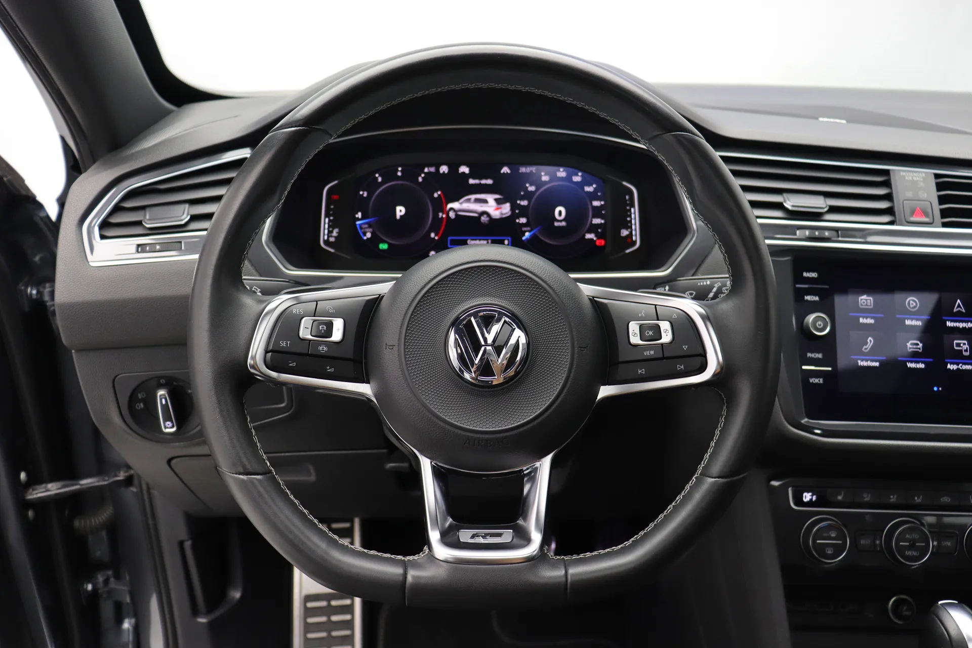 Veiculo 7 Lugares, blindagem nível III-A Tecno com vidros PG Super Slim, teto solar panorâmico transparente, última troca de óleo em Abril de 2026, configurado na cor Cinza com interior em Couro Preto, volante R-Line com paddle shifts, banco de ajuste elétrico para o motorista, bancos dianteiros com aquecimento, App Connect com Android Auto e Apple CarPlay, sistema de som Dynaudio, controle de cruzeiro adaptativo, ACC controle automático de distância, Tração 4Motion, assistente de permanência de faixa, ar condicionado digital de 3 zonas, Auto Hold, Park Assist com câmera de ré, abertura do porta malas com o movimento dos pés, rodas aro 19’ em Cinza, em exposição no nosso showroom.