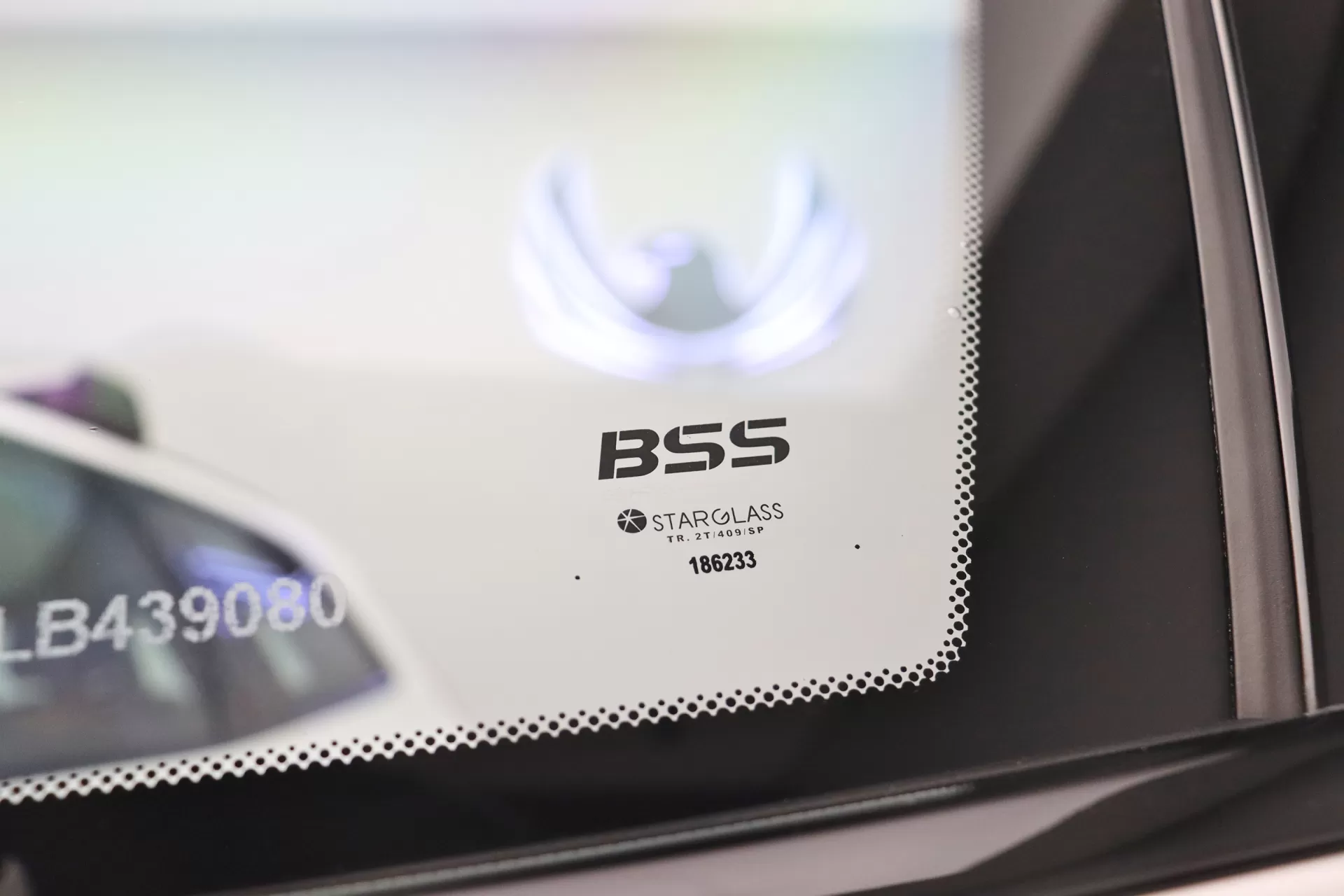 Blindagem nível iii-a bss com vidros starglass, teto solar opaco e funcional, configurado na cor branco com interior em couro e tecido preto